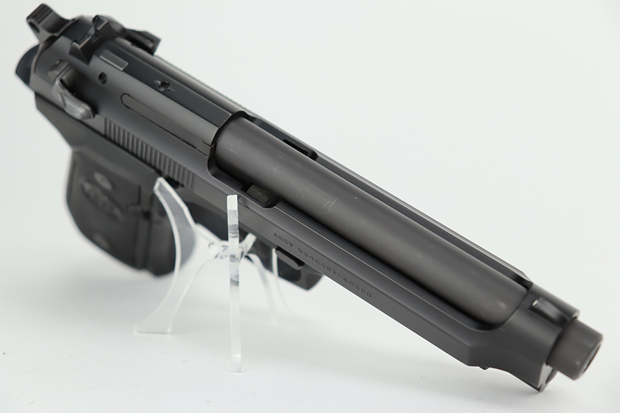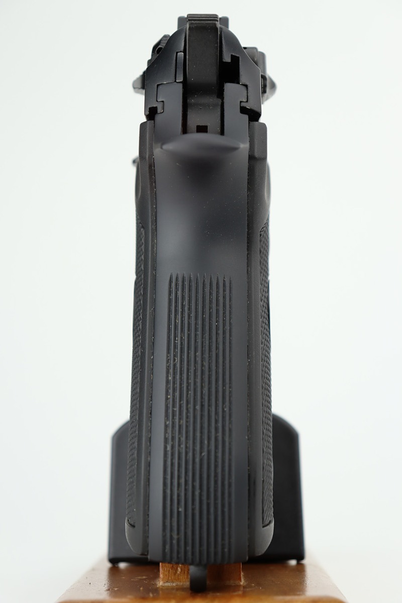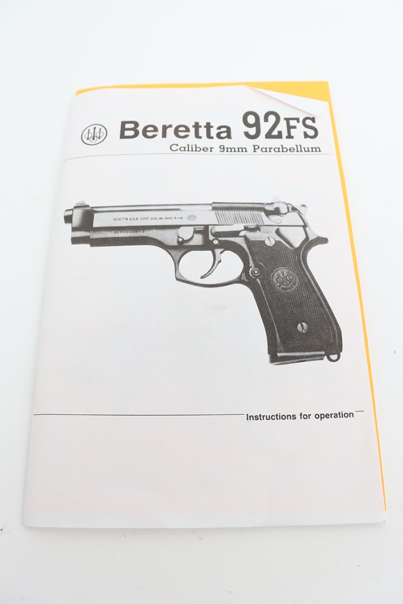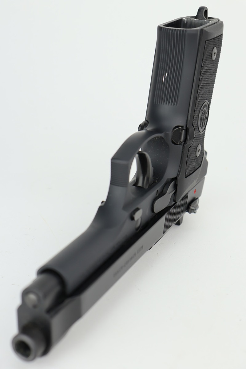 7/14/23 – This is a like-new example of a Beretta M9, chambered in 9mm Luger. It is all matching and comes with its original matching-numbered box, owners manual, gun lock, and two magazines. The gun shows almost no sign of wear or use, there is just one tiny handling mark on the front strap. Fitted with excellent black plastic grips. Mint bore.