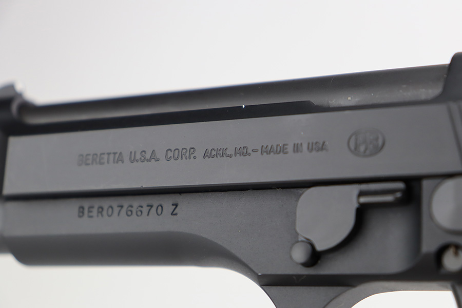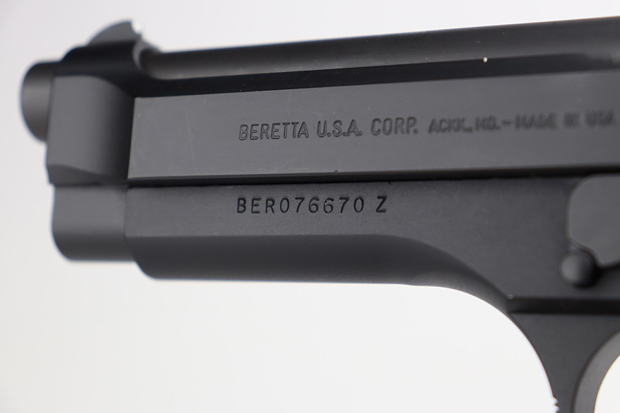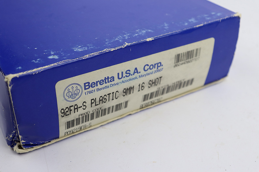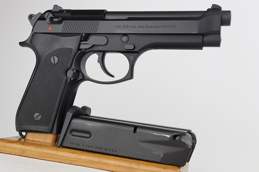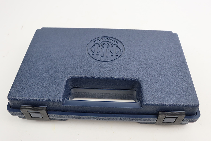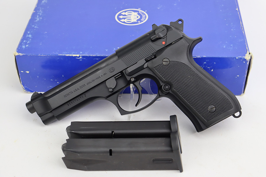 8/8/23 – This is a like-new example of a Beretta Model 92FS, chambered in 9mm. It comes with its original matching-numbered cardboard box, hard case, two magazines, and cleaning brushes. The gun itself is in like-new condition with no signs of wear or use. Fitted with excellent black rubber grips. The bore is factory-new.