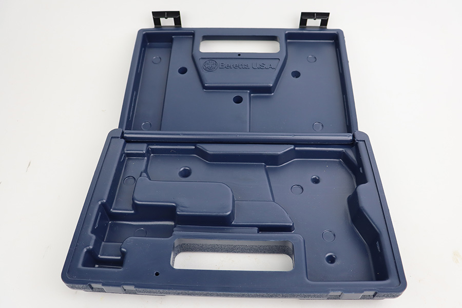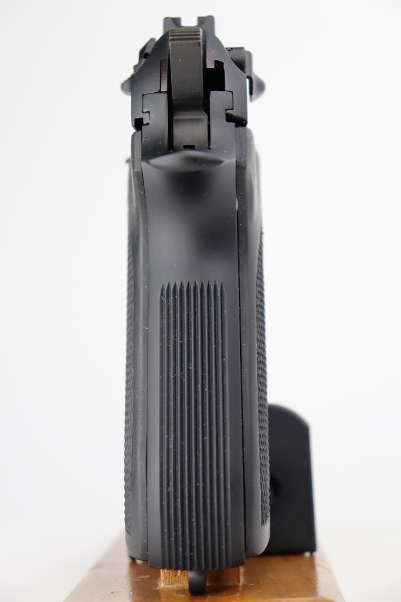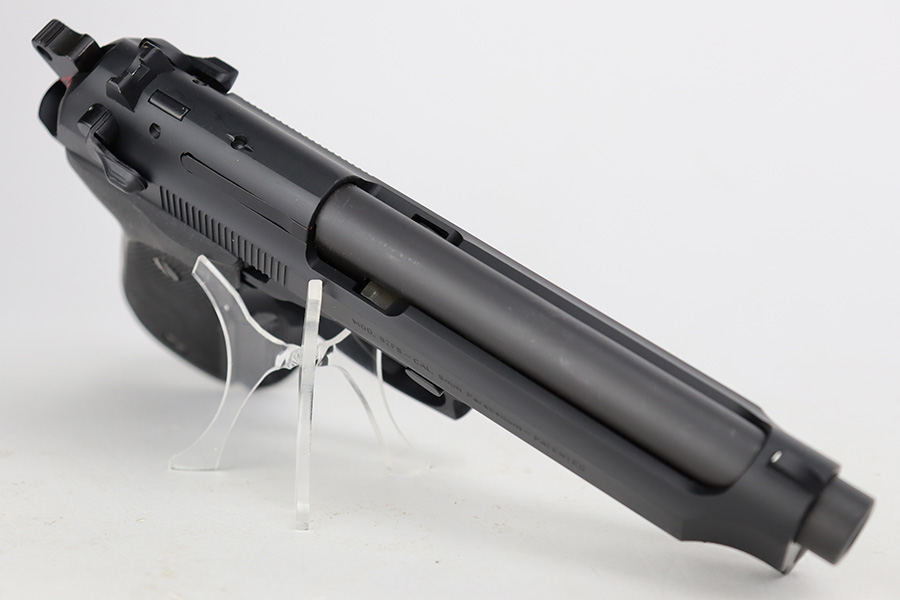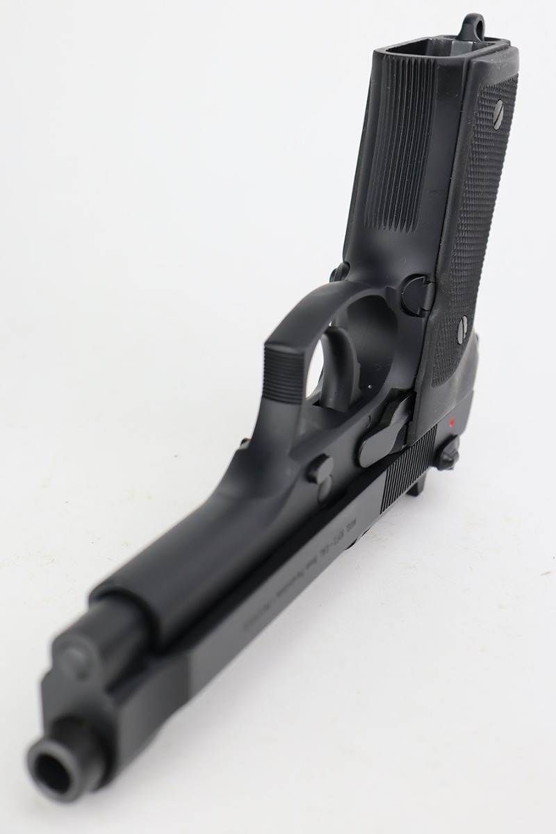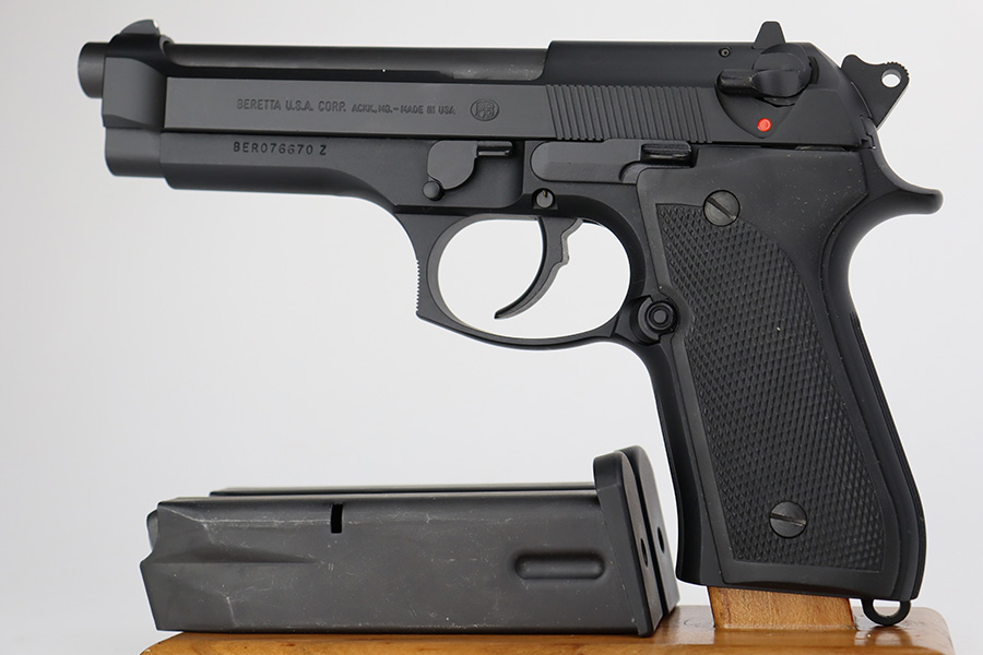 8/8/23 – This is a like-new example of a Beretta Model 92FS, chambered in 9mm. It comes with its original matching-numbered cardboard box, hard case, two magazines, and cleaning brushes. The gun itself is in like-new condition with no signs of wear or use. Fitted with excellent black rubber grips. The bore is factory-new.