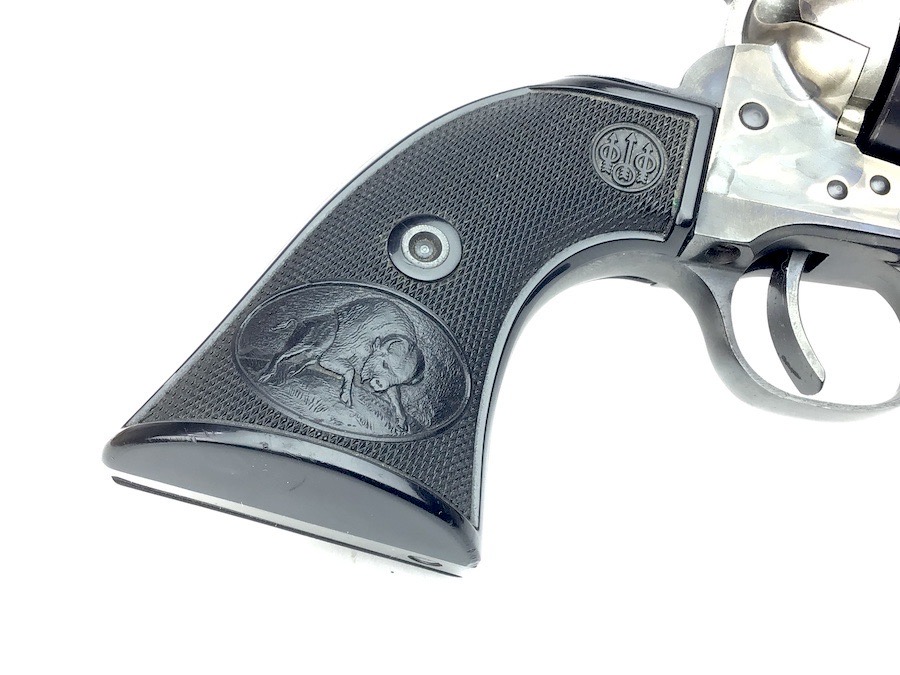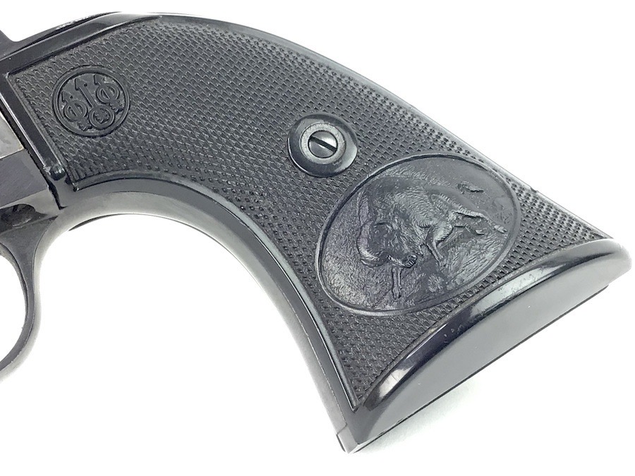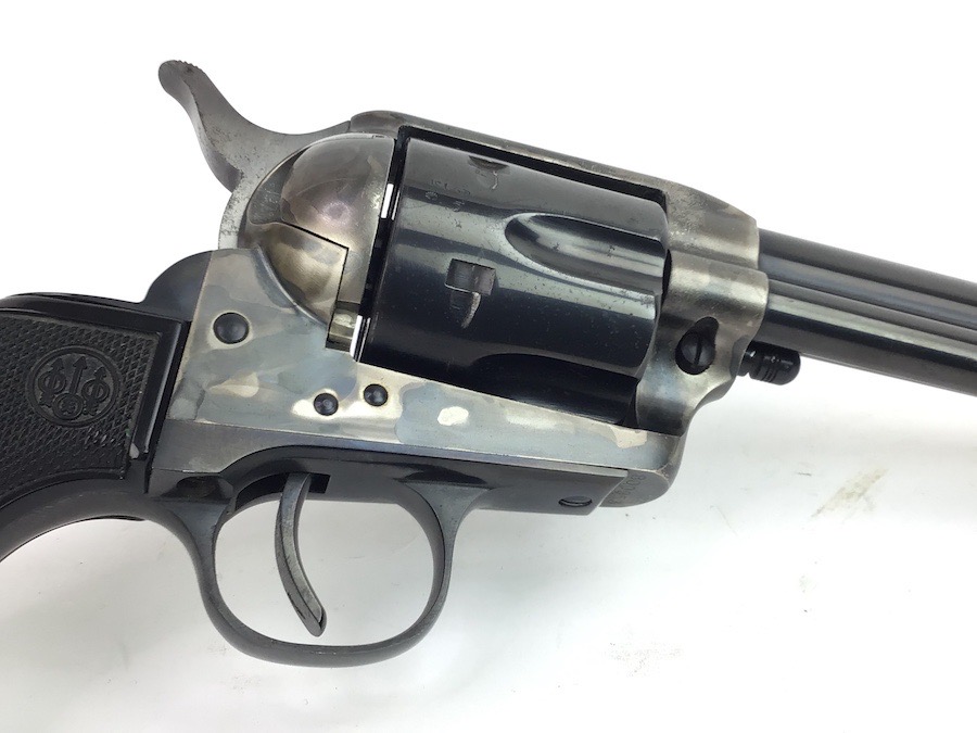 8/29/24 – Minty, ANIB – Beretta Stampede SA Revolver with Matching Box. Chambered for .45 caliber long colt. Matching numbers throughout. This beautiful piece has a 5-1/2″ blued barrel and features a unique color case frame. Slight roll marks on the cylinder, but hardly noticeable. Lock up and timing are perfect. Includes original owners manual and documents.