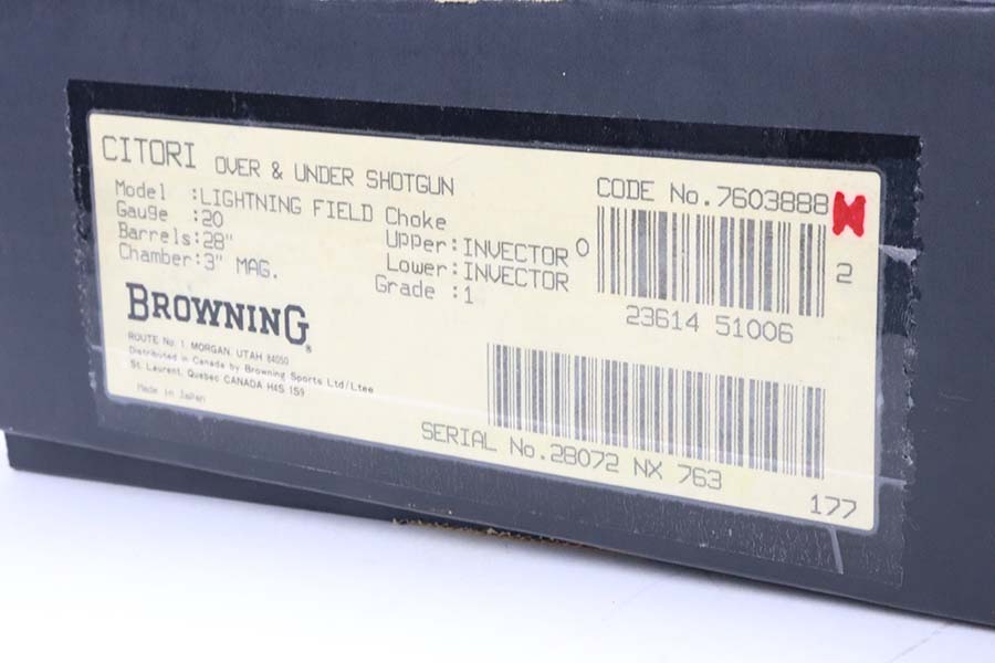 4/4/24 – This is a mint example of a Browning Citori Lightning Field Grade I over/under shotgun, chambered in 20 GA. Manufactured in 1993 with Invector choke tubes. 28 inch barrels. It comes with its original matching-numbered box and owners manual. The gun is mint with virtually no signs of wear or use. Mint bores.