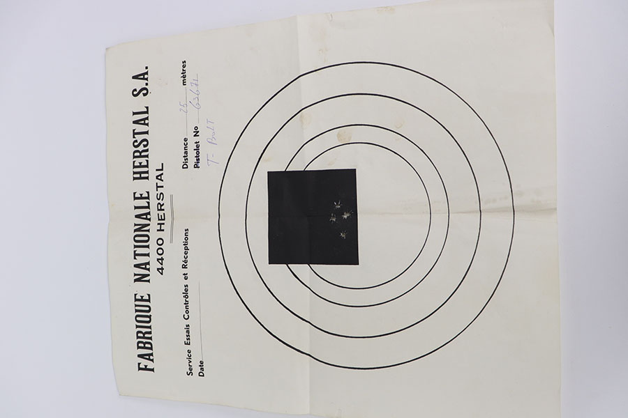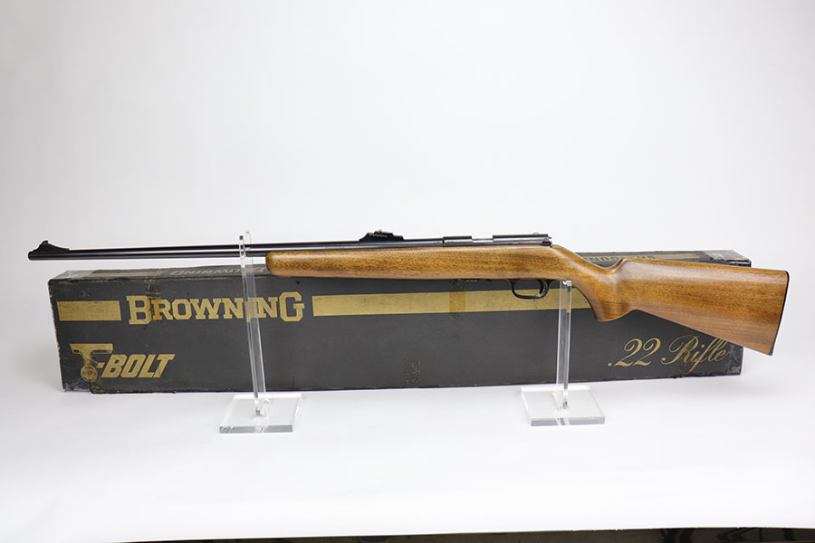 11/25/20 – This is an ANIB FN Browning T-Bolt. Made in ~1972 with post salt wood stock. No wear to the original blue and a mint bore. Box includes the original Browning manual and the matching test target. Box is numbered and matching to the gun. Chambered for .22LR.