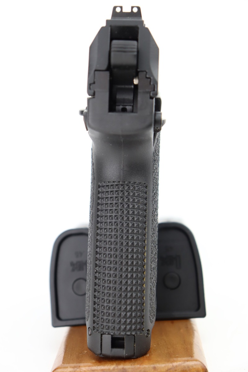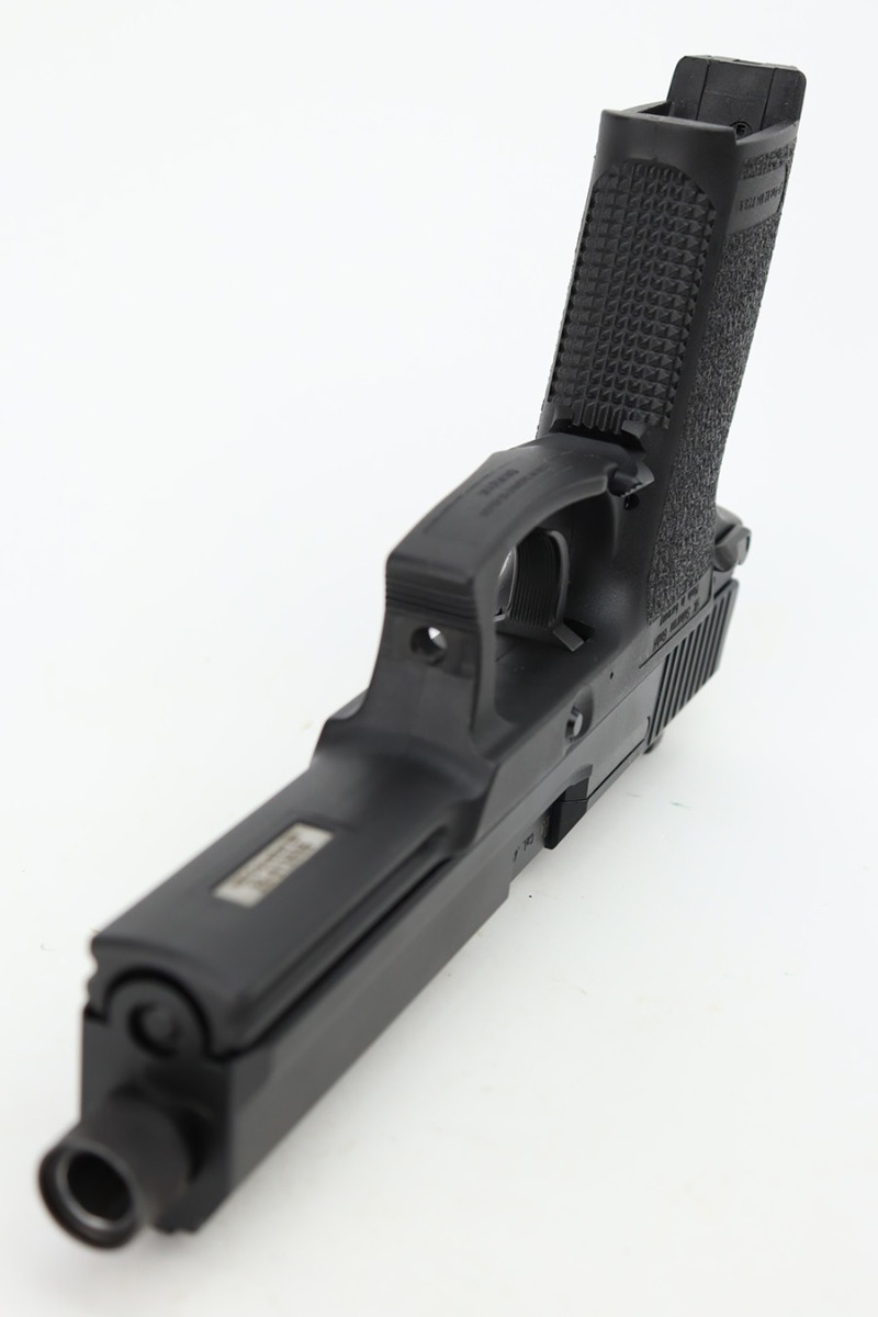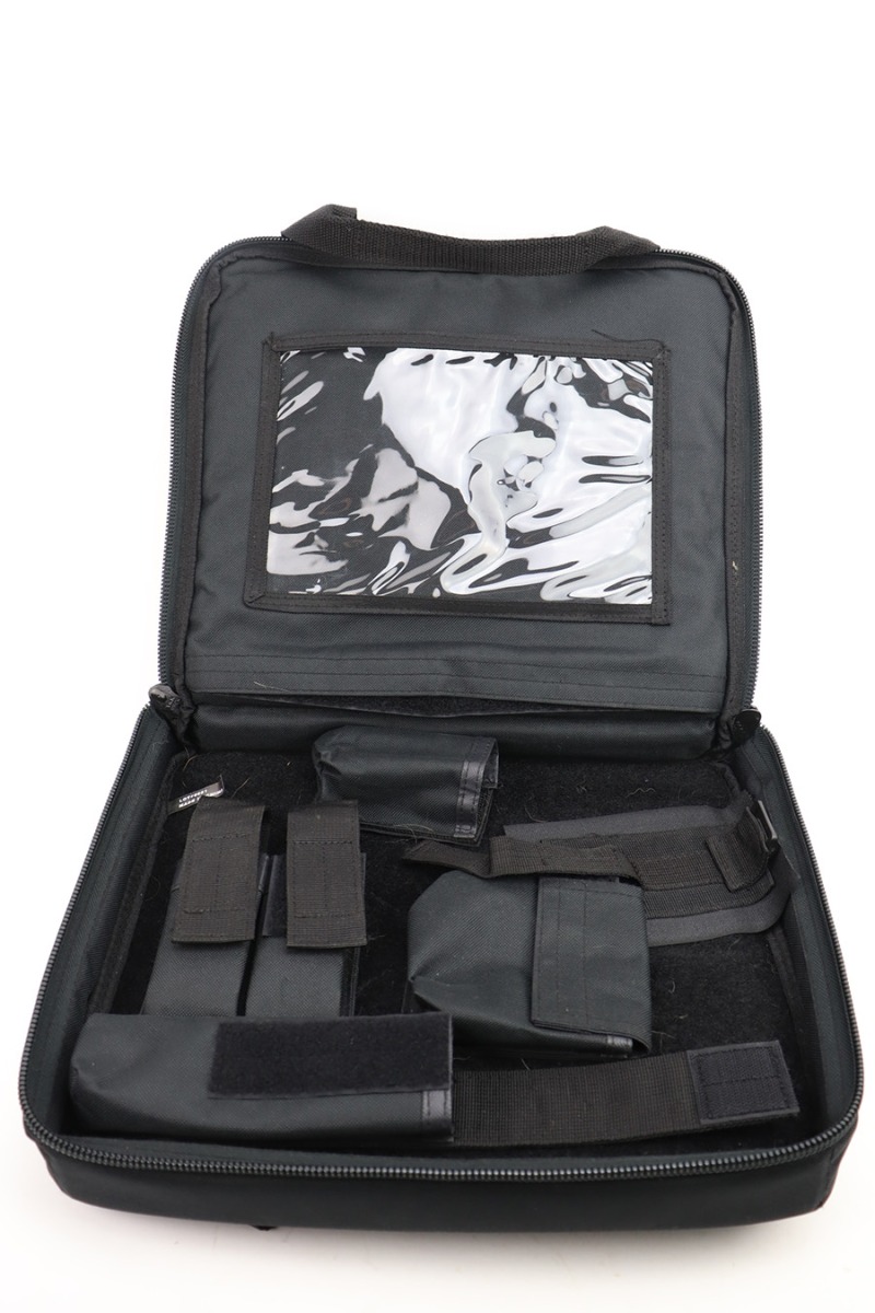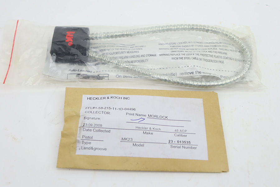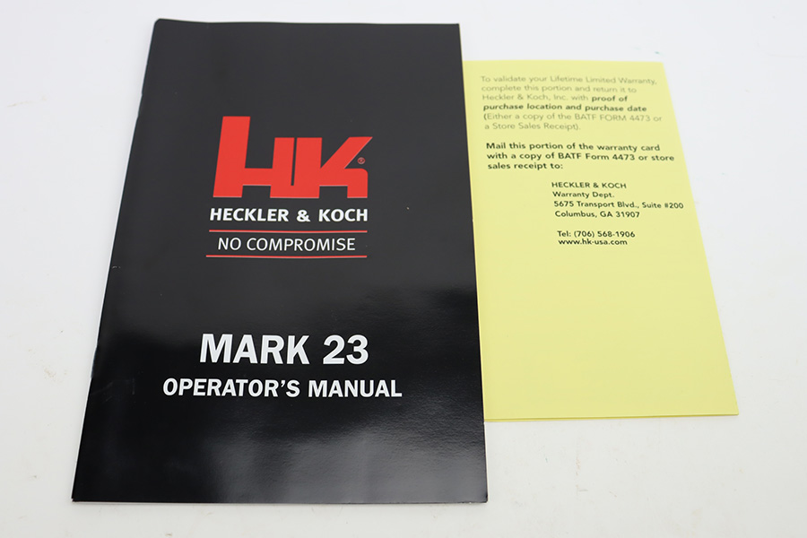 12/6/23 – This is a like-new H&K Mark 23 semi auto pistol with a threaded barrel. Chambered in .45 ACP. It comes with its original soft case, three magazines, gun lock, owners manual, and test fire casing. The gun is like-new with no signs of wear or use. Mint bore.