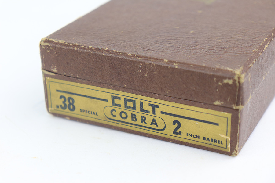 4/1/22 – This is a mint, early Colt Cobra in its original box. Virtually no wear or signs of use on the gun, with mint bore and grips. Made in 1952, only the third year of production. Two inch barrel, smooth mechanics. Comes in the original, early Colt box with matching serial hand-written on the bottom. Box includes some of the original paperwork.