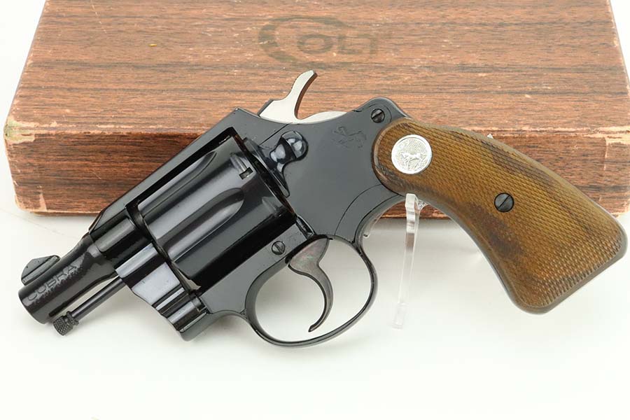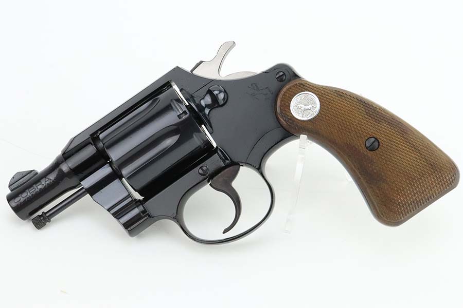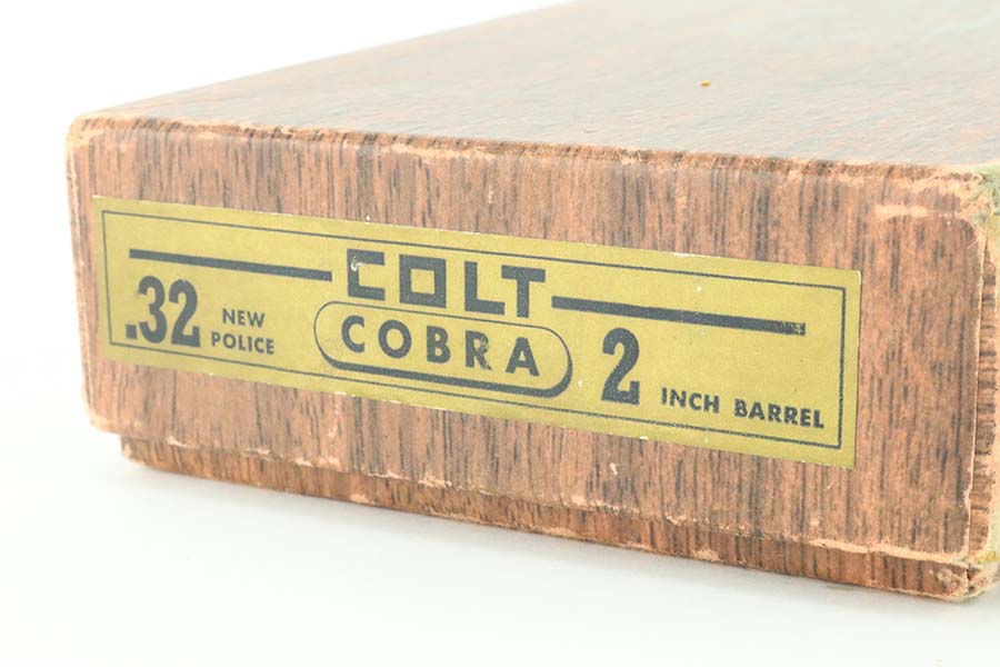 3/12/24 – This is a mint example of a 2″ Colt Cobra revolver manufactured in 1957 and chambered in the scarce .32 Colt. It is all matching and comes with its original matching-numbered box and owners manual. The gun is in like-new condition with no signs of wear or use – not even a roll mark on the cylinder. Comes with mint Walnut grips. The bore is stone-mint. The cylinder is tight, and the action is very smooth.