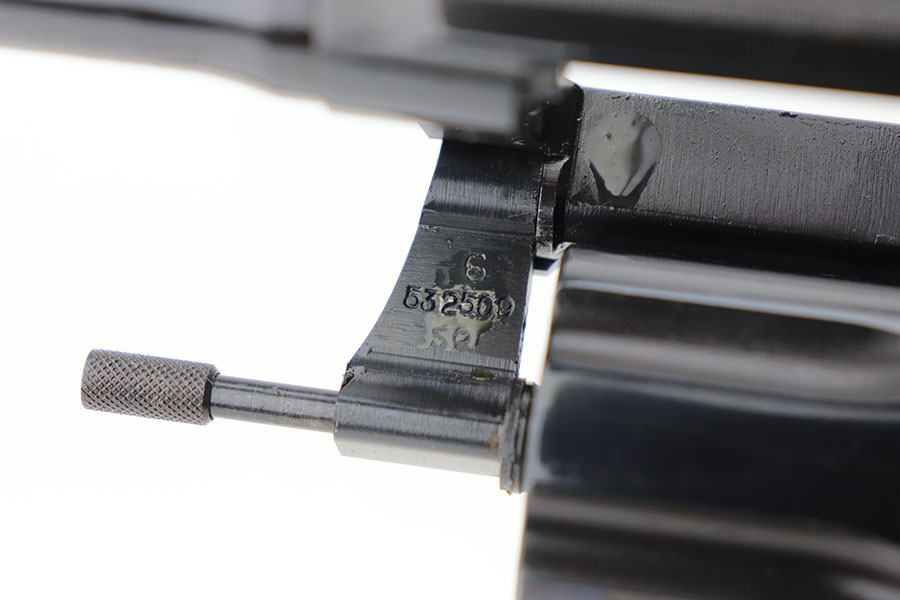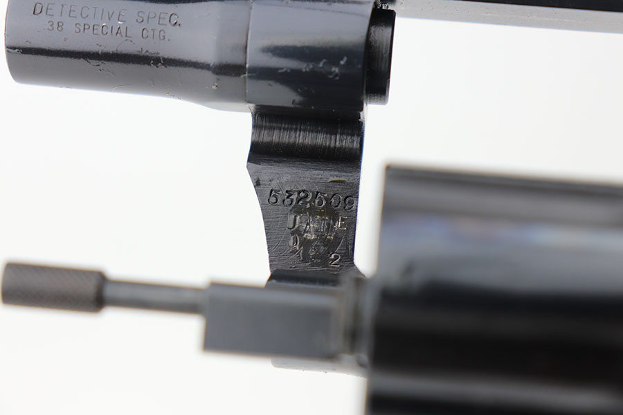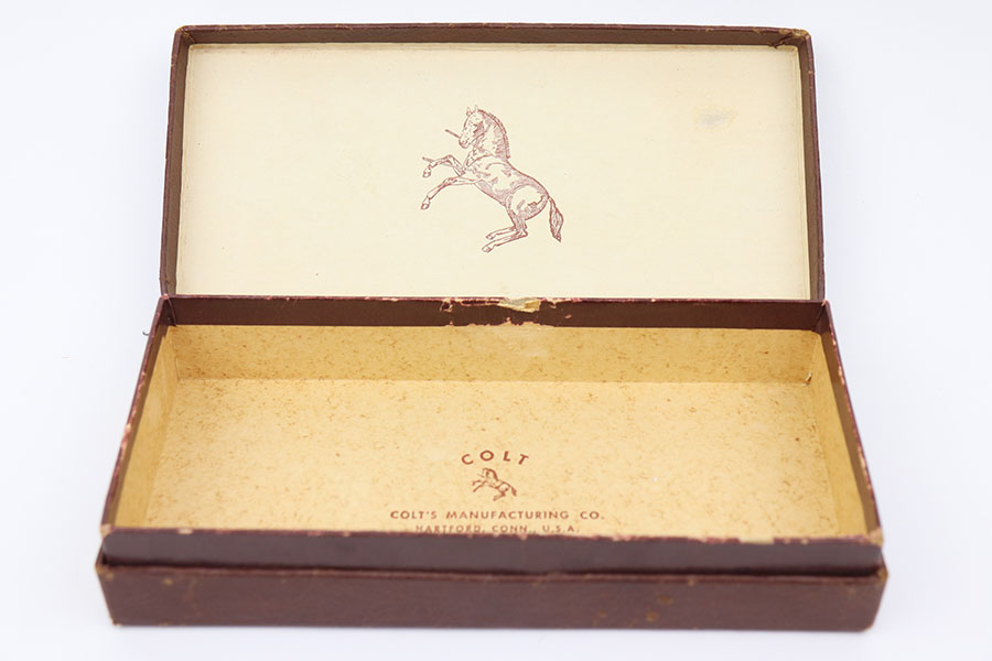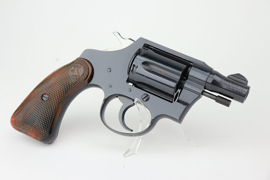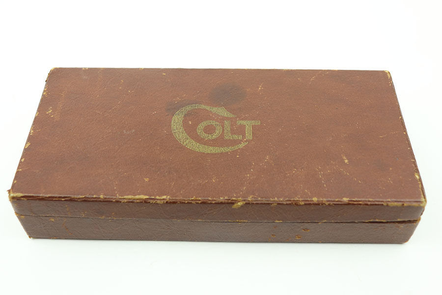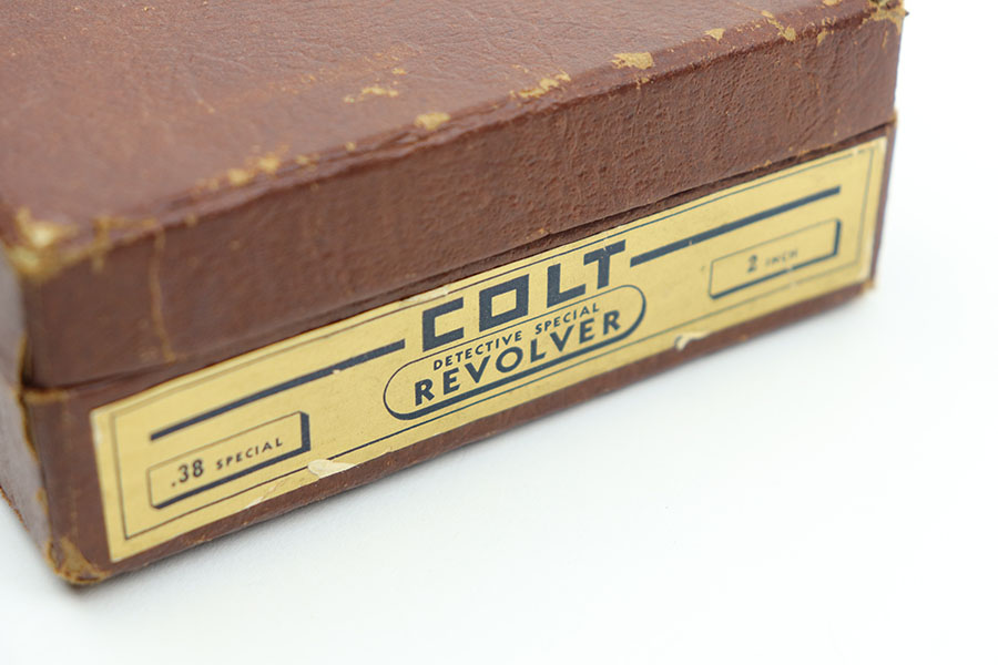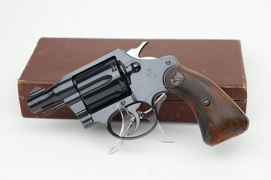 4/27/21 – This is a mint Colt Detective Special in the original, matching box. Made in 1949 so it’s C&R eligible. The gun has just a minor roll mark on the cylinder, and is in otherwise beautiful condition. Gorgeous reddish grips. Minty bore. Box comes with the original manual and is numbered and matching to the gun on the bottom. Hischier collection.