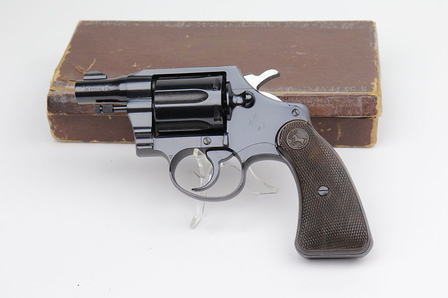 1/6/21 – This is a minty Colt Detective Special in the original box. It’s hand numbered and matching on the bottom. Original blue rates at 99+% with just a very minor roll mark on cylinder. Two inch barrel and chambered for .38 Special. Minty bore and grips.