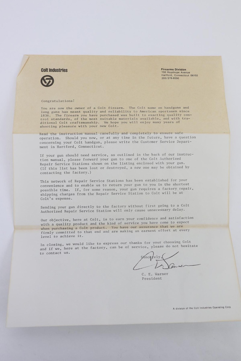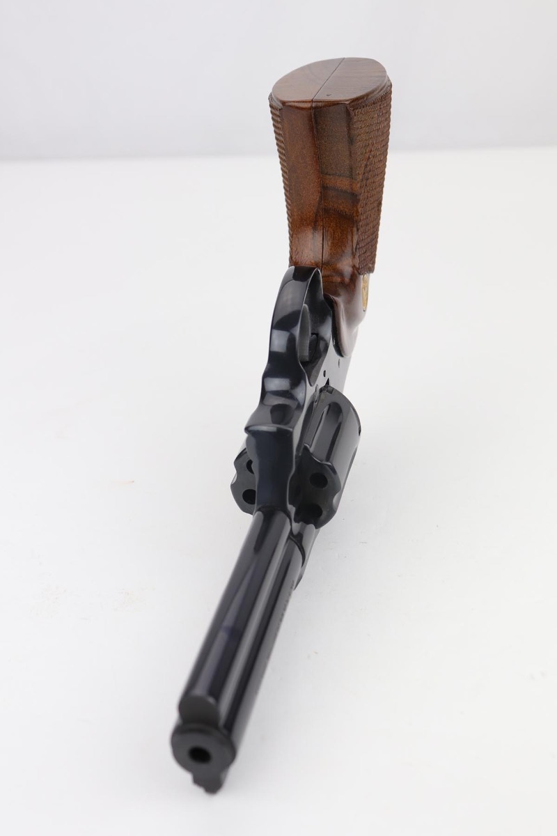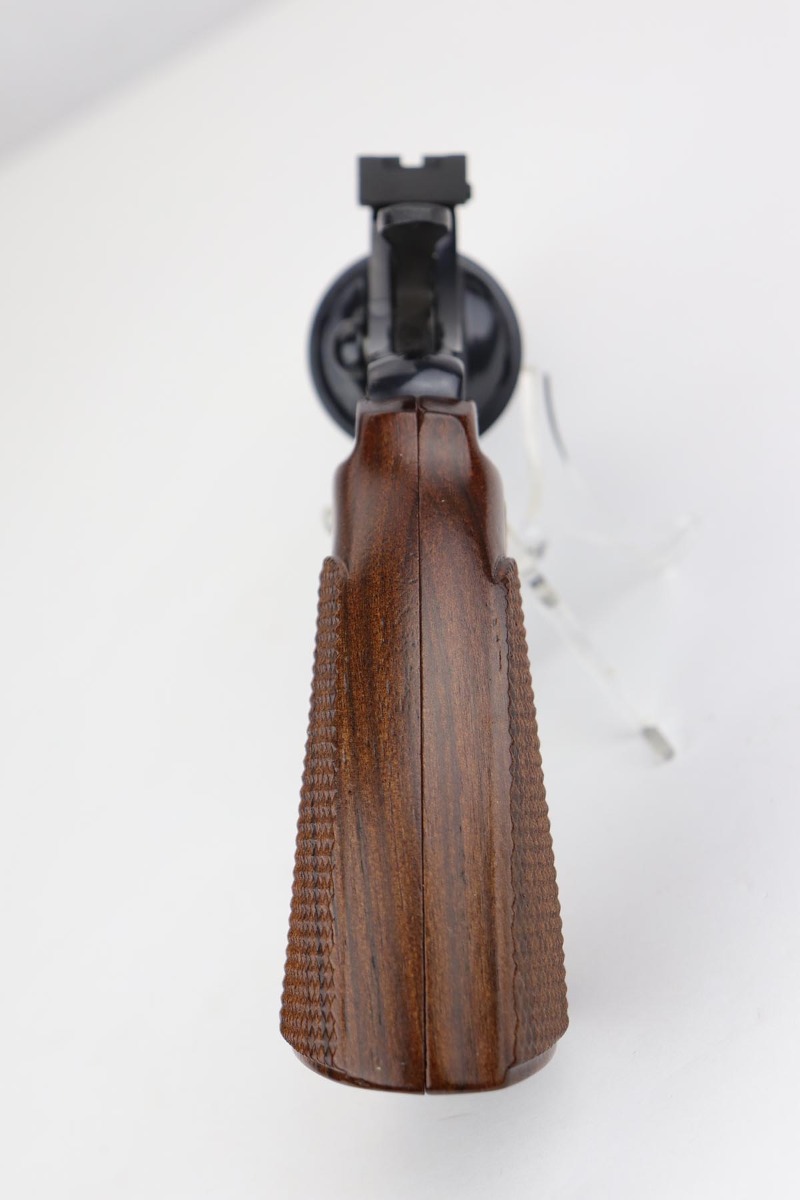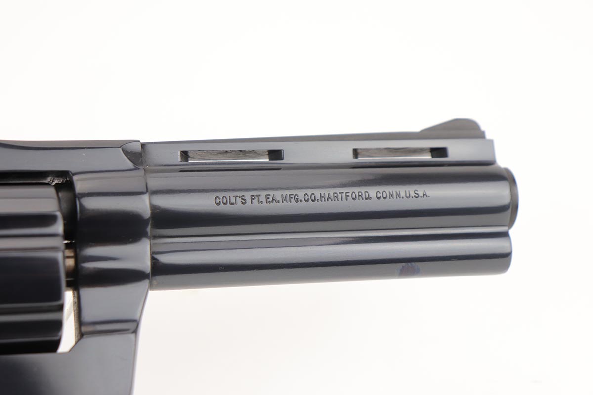 9/24/19 – Inspired by the success of the Colt Python, the Diamondback was manufactured and released beginning in 1966, and resembles a scaled-down version of the Python. This particular revolver was made in 1978, and is chambered in the less common .22LR with four inch barrel. The gun is in mint, original condition with only a faint roll mark on the cylinder. The gun is accompanied by the original, matching box, complete with Styrofoam sleeve and original manual.