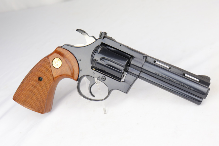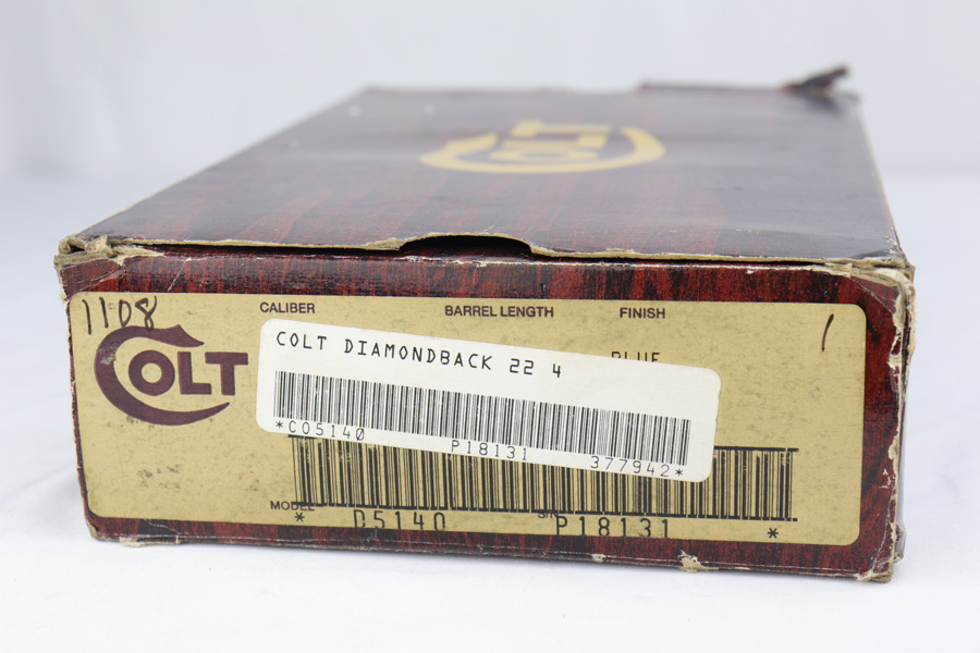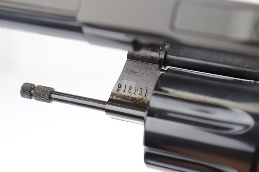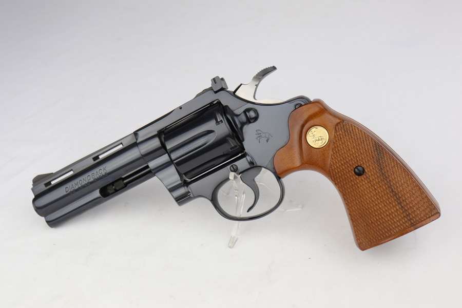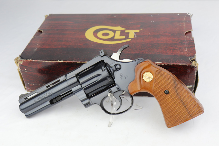 3/1/19 – Inspired by the success of the Colt Python, the Diamondback was manufactured and released beginning in 1966, and resembles a scaled-down version of the Python. This particular revolver was made in 1981, and is chambered in the less common .22LR with four inch barrel. The gun is in mint, original condition with only a faint roll mark on the cylinder. The gun is accompanied by the original, matching box, complete with Styrofoam sleeve and original manual.