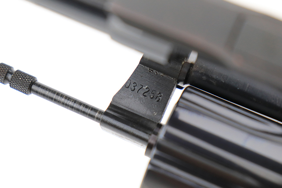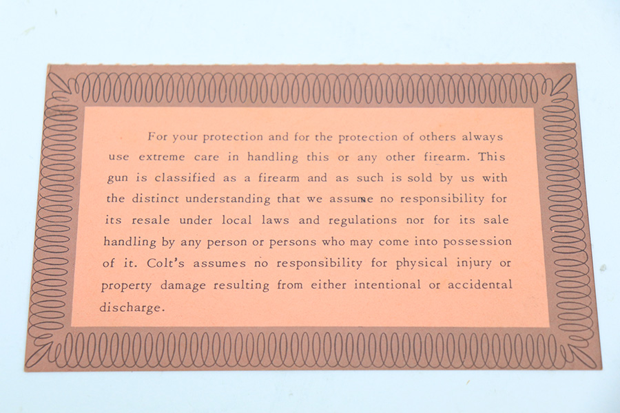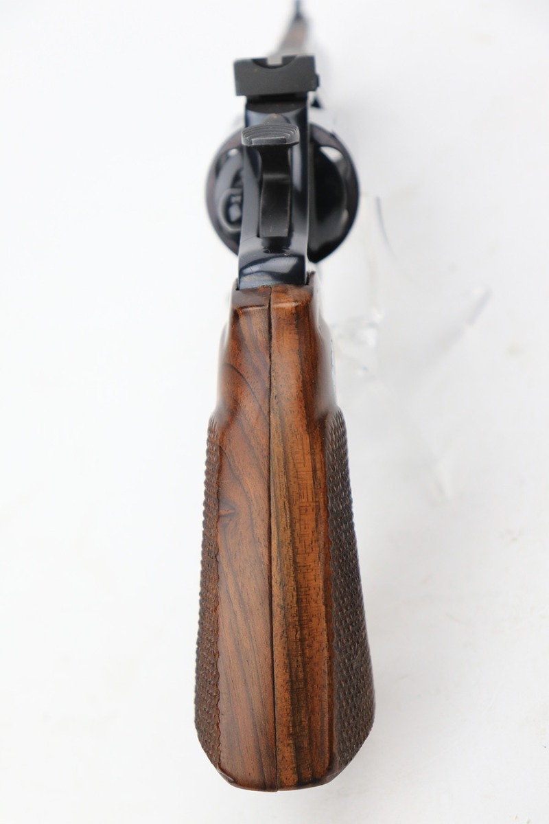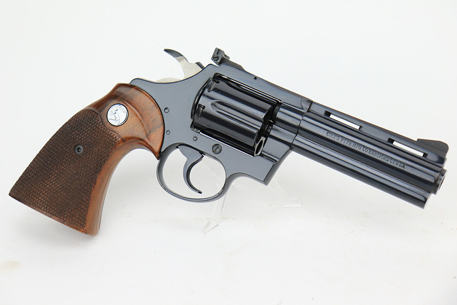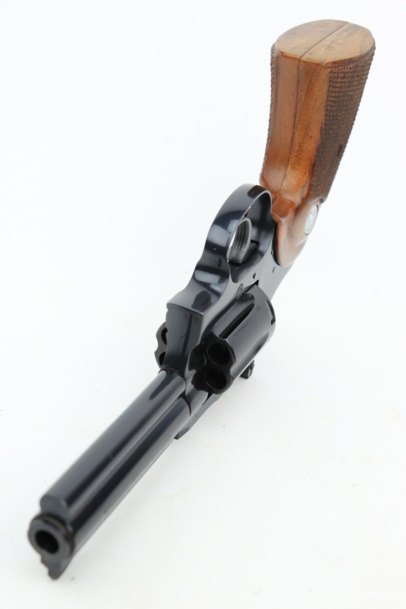 5/18/23 – This is a mint example of a Colt Diamondback revolver, manufactured in 1969 and chambered in .38 Special. 4″ barrel. It comes with its original matching-numbered box, matching-numbered test target, and owners manual. The gun has retained essentially all of its original high polish finish with just an extremely light roll mark on the cylinder. Fitted with beautiful checkered wood grips. The bore is like-new.