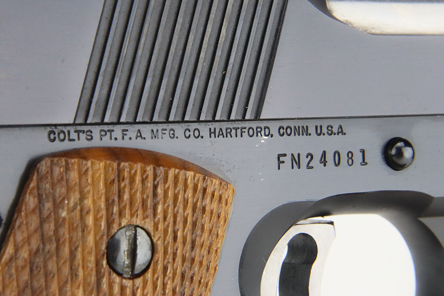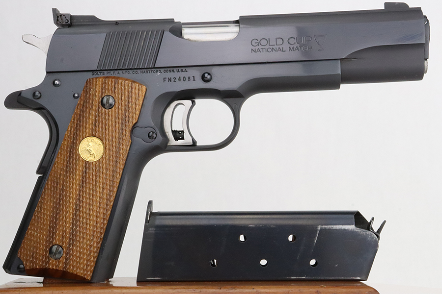 3/7/24 – This is a like-new example of a Colt Gold Cup National Match MK IV Series 80, manufactured in 1987 and chambered in .45 ACP. It is in mint condition with no signs of wear or use. Mint bore. Fitted with mint wood grips. It comes with its original matching-numbered box, owners manual, sales papers, and one magazine.