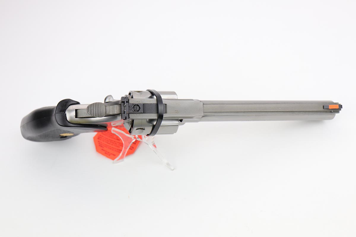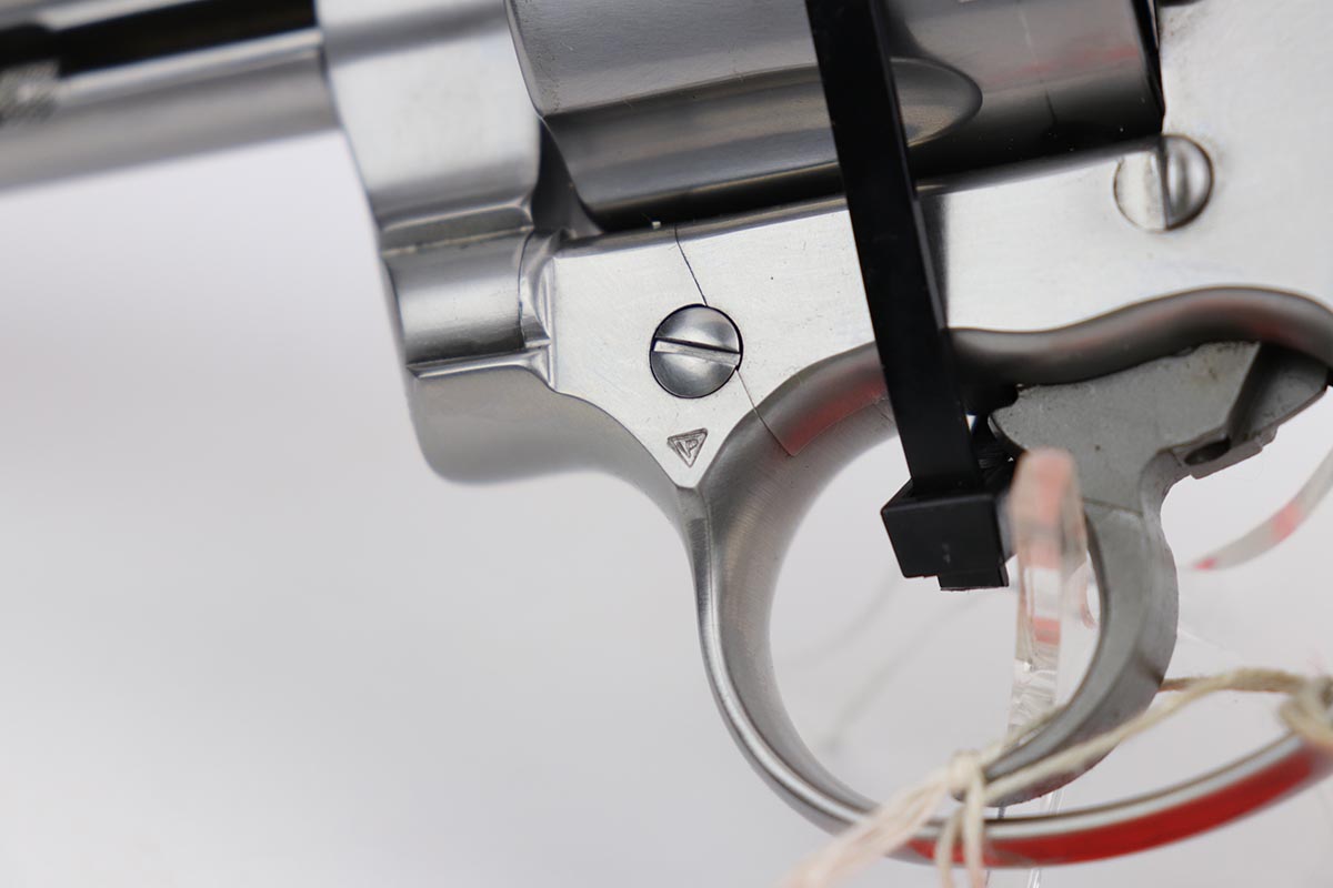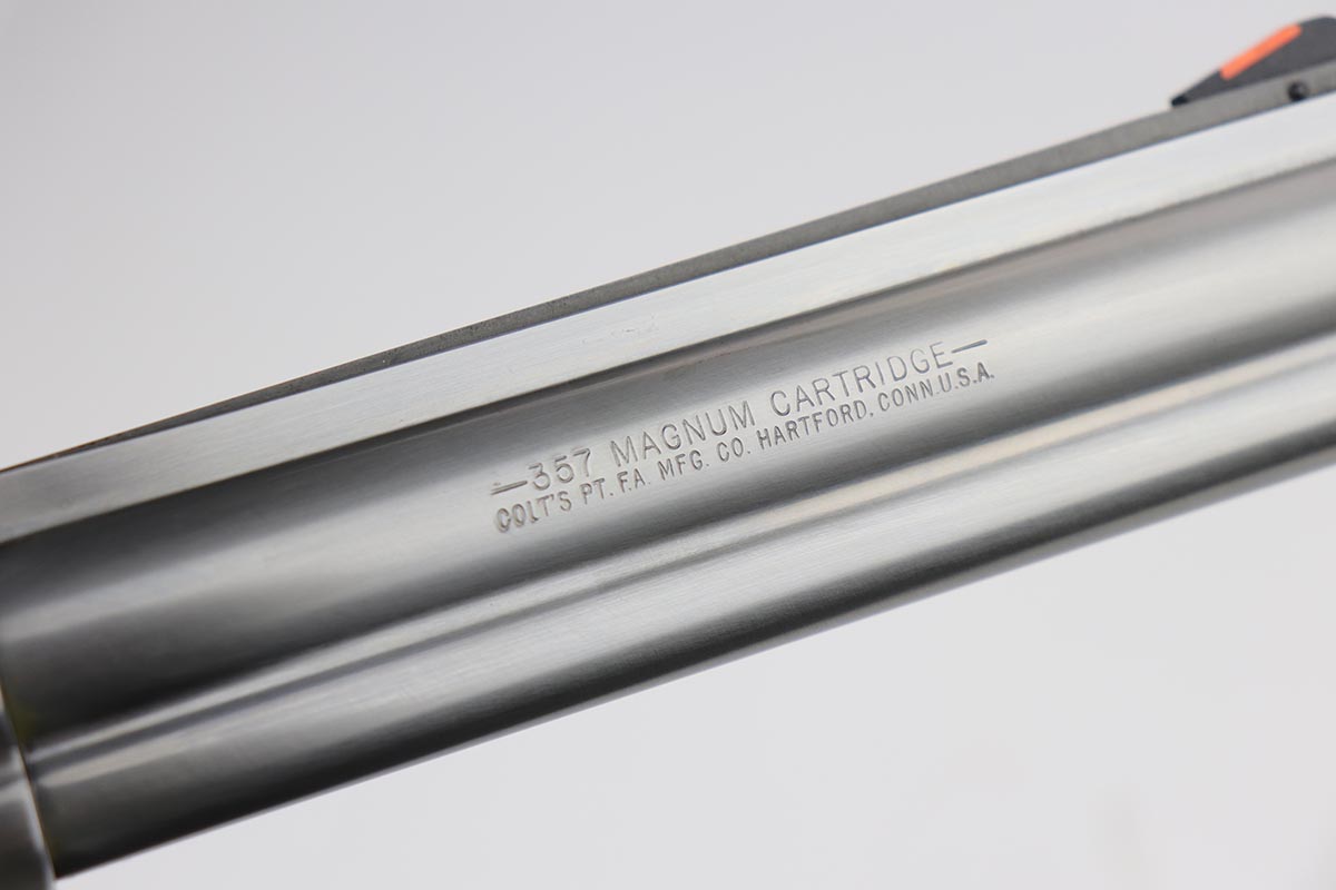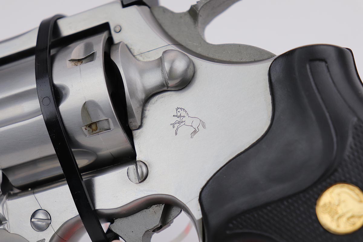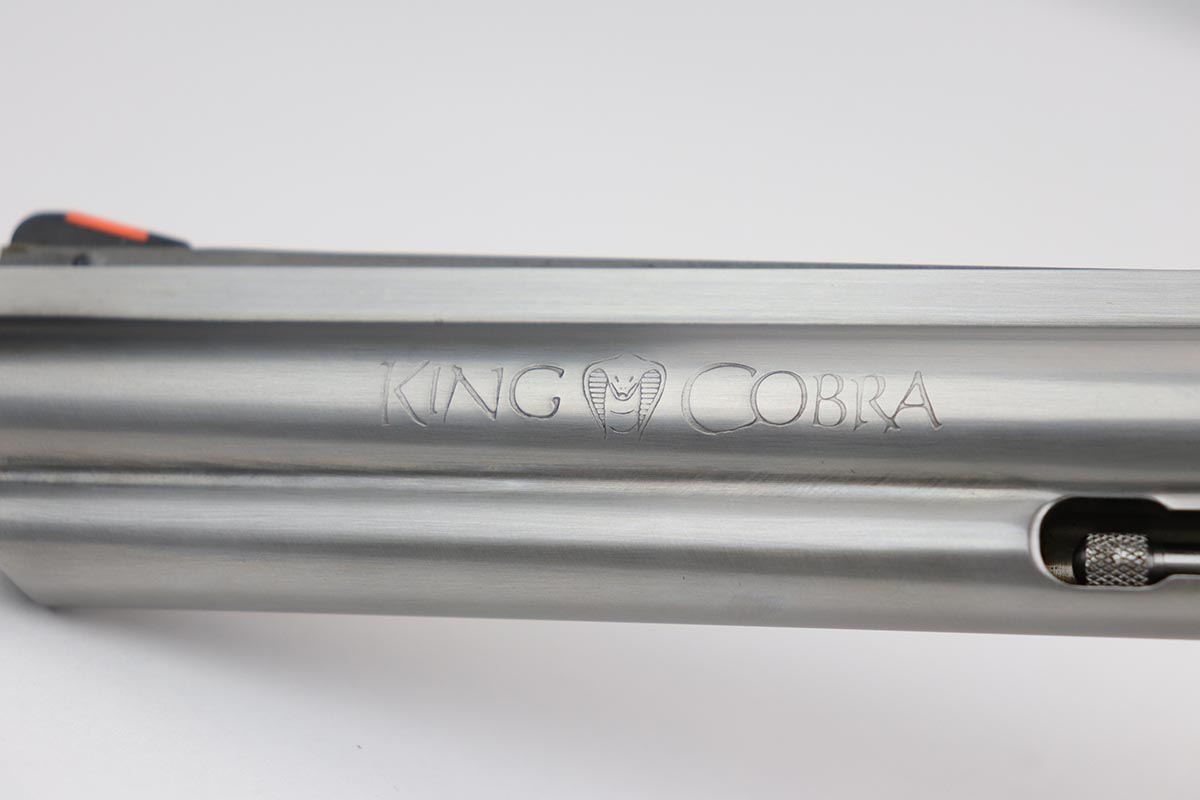 10/15/19 – This is a near-mint Colt King Cobra in its original, matching box. Made in 1987, the gun has just a very minor roll mark, and a couple tiny spots of wear on the right side of the frame. Six inch barrel with a minty bore. Rubber Colt grips with Colt medallion. Box includes original Colt manual and basic paperwork. It’s labeled and numbered with matching serial to the firearm.