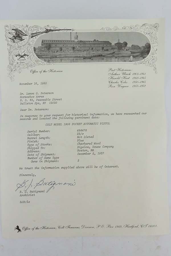 SOLD – ANIB Colt M1903 Pocket Hammerless – With Factory Letter
