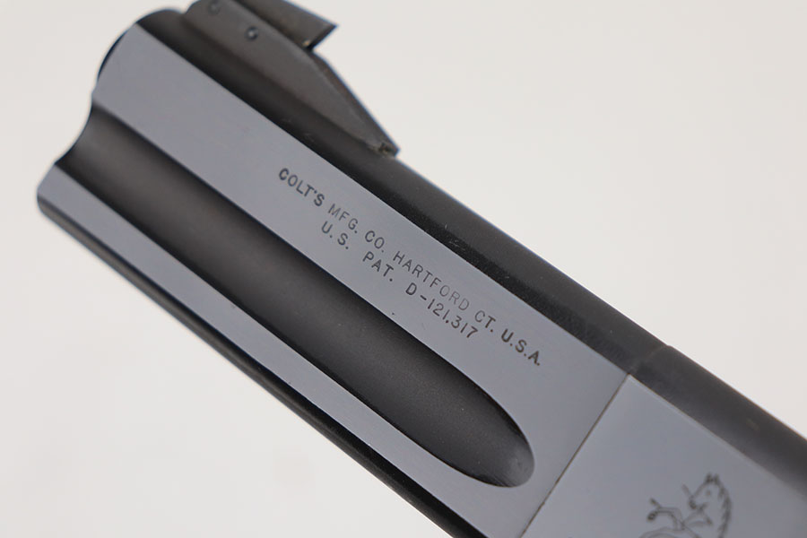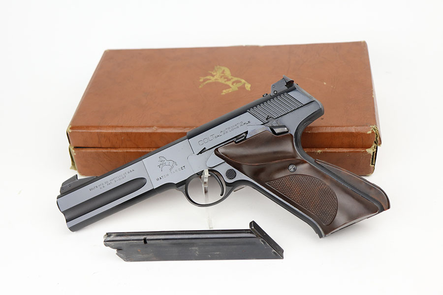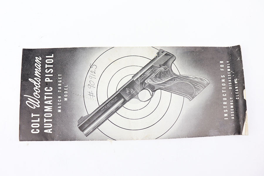 4/7/21 – This is an ANIB Colt Match Target from 1951. Early second series example with 4.5in barrel. No signs of wear/use. Correct box but box is missing label. Comes with manual dated to September of 1950. Push button magazine release and correct “tombstone” button magazine. Grip adapter attached. Factory Coltmaster rear sight. C&R eligible.