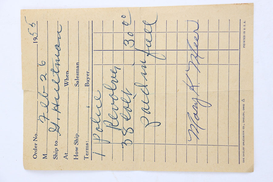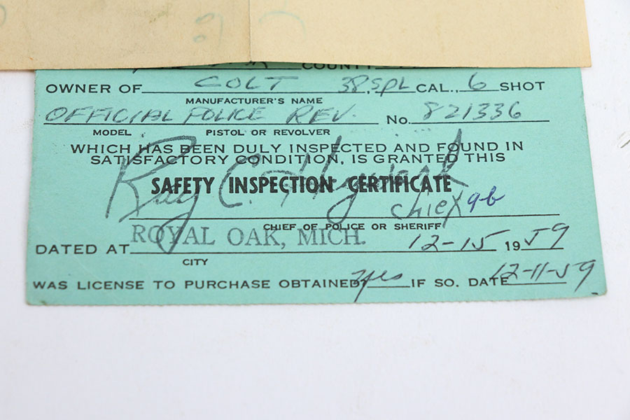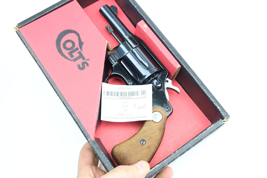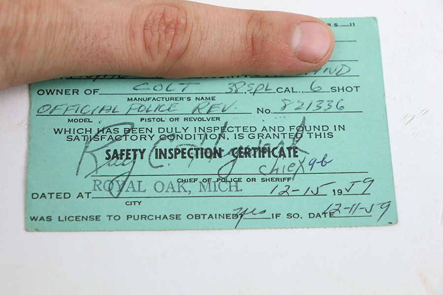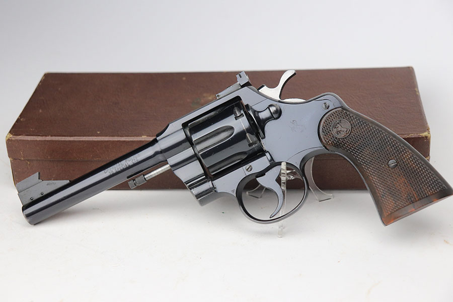 2/8/21 – This is a mint example of a Colt Official Police Revolver manufactured in 1952 and chambered in .38 Special. It comes with the original box (serialized to the gun), original pamphlet, and original receipt. The gun is in mint condition. There is just one spot of wear around the muzzle, one very light scratch on the front strap, and a light roll mark on the cylinder. The cylinder is tight and the action is smooth. The grips are mint. The bore is near-mint.