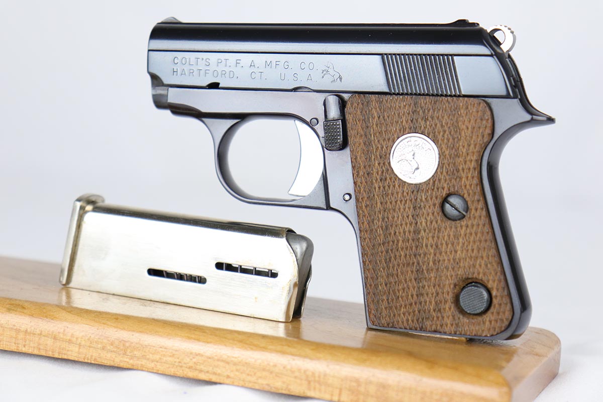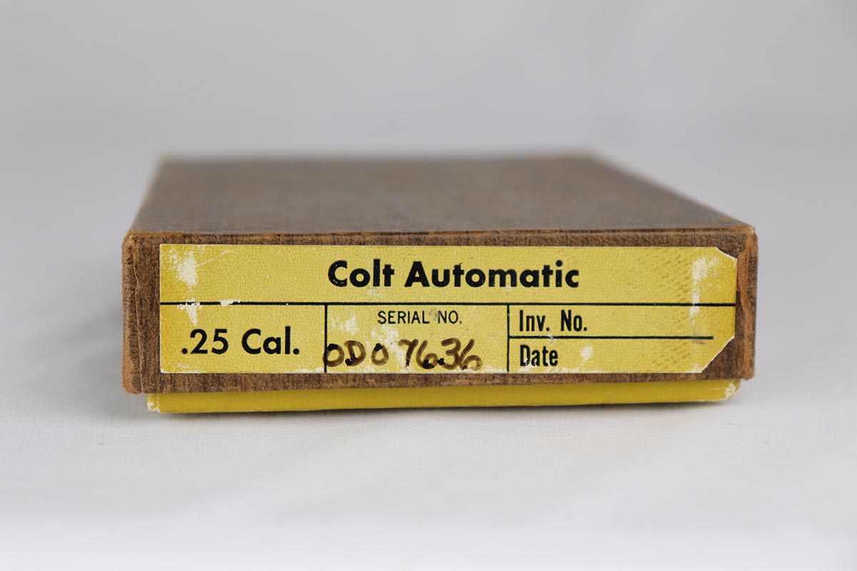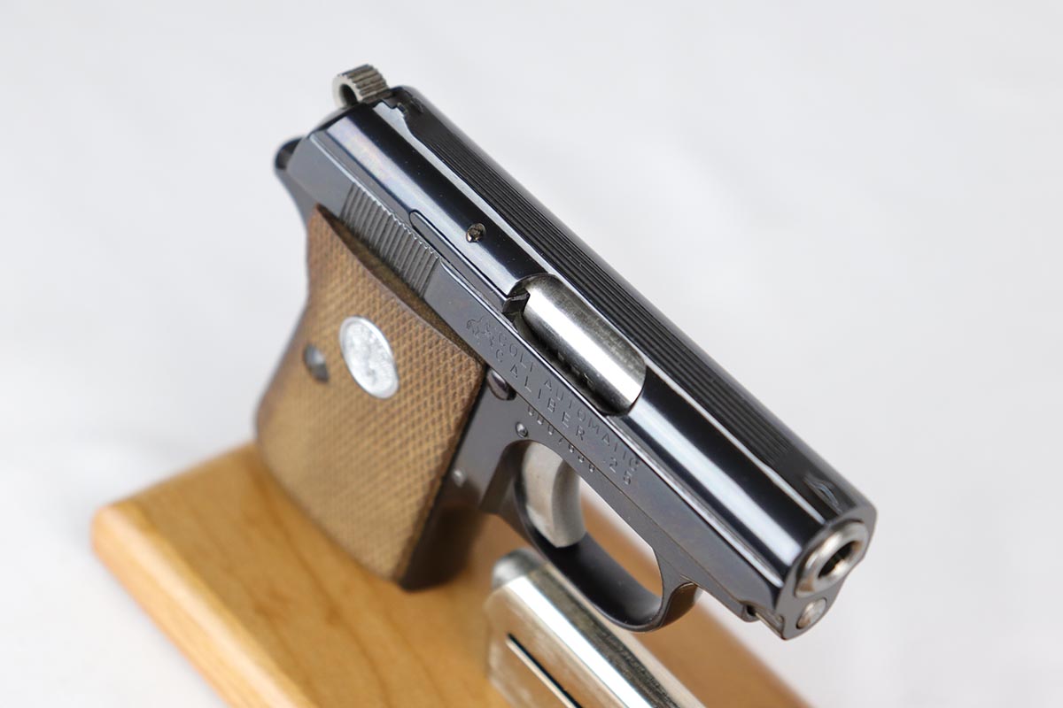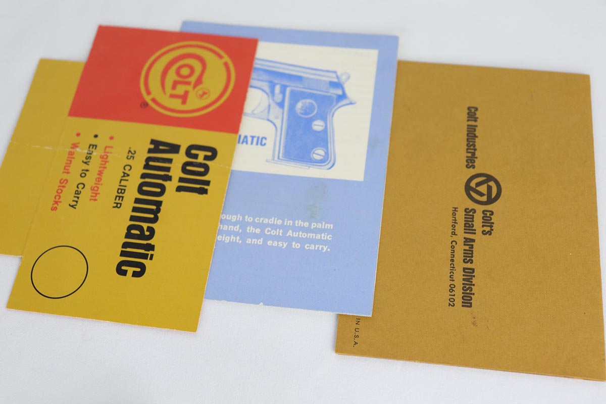 6/26/18 – This is an ANIB Colt pocket, made for Colt by Astra in 1971.  The pistol is chambered in .25 caliber and shows the originally, nearly unused condition.  The box is numbered to the pistol and includes some of the original papers.  Comes with an excellent leather holster.