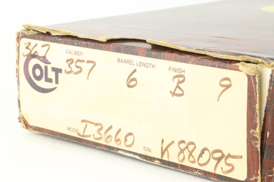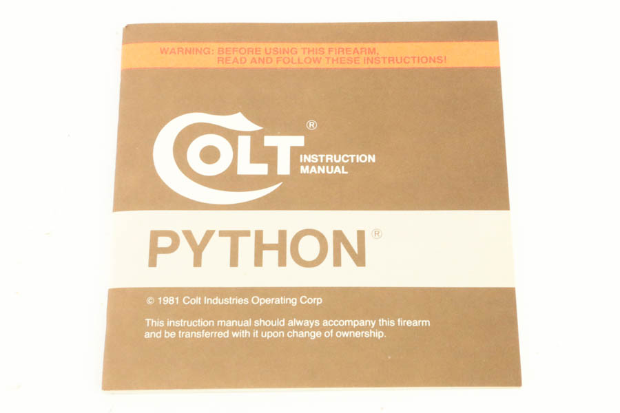 08/07/2024 – For sale is an excellent, new in box Colt Python made in 1982. This example is in minty condition with a gorgeous high-polished finish without any signs of wear. The wood grips are exceptional with a bright Colt medallion. The bore is very bright with great rifling. The revolver comes with its original matching factory box.