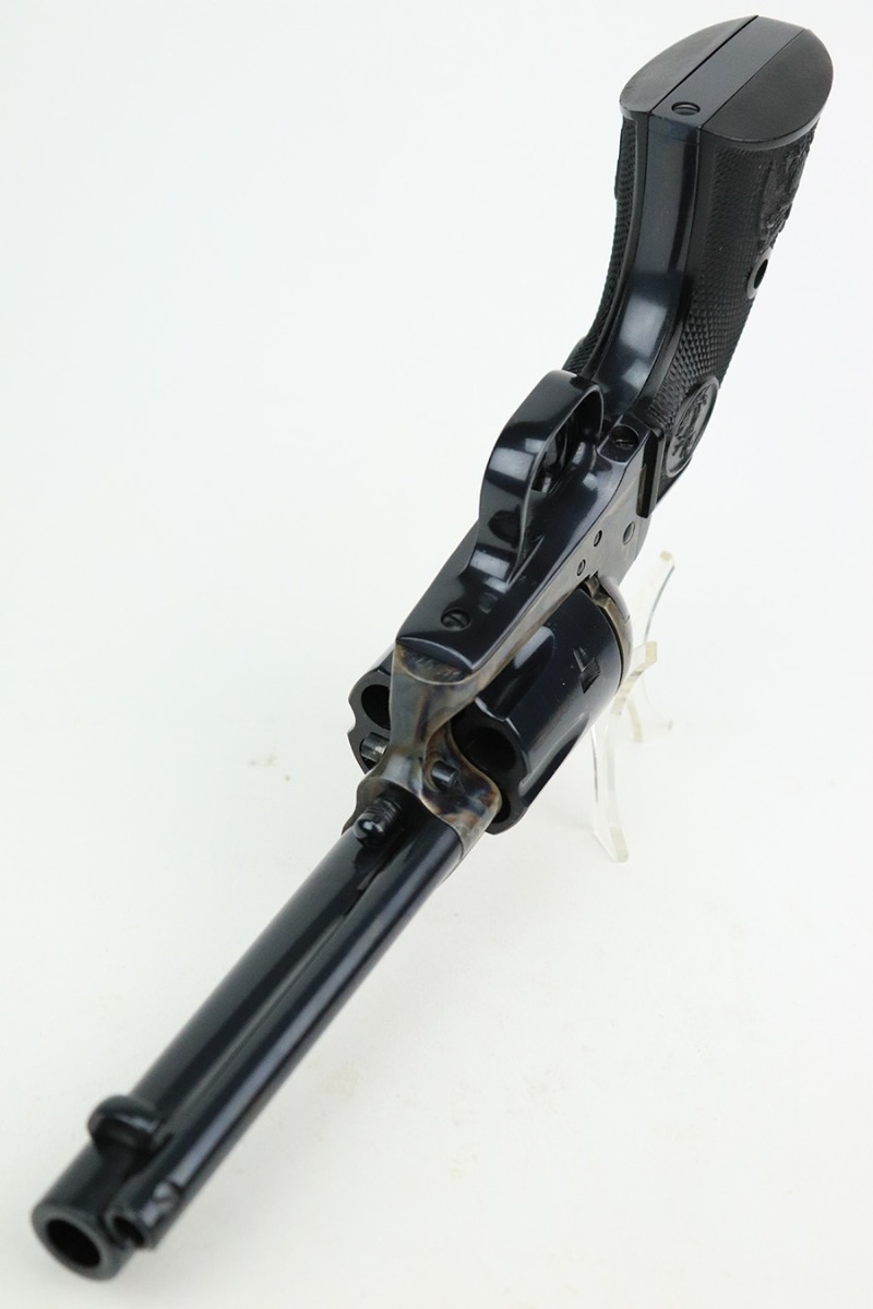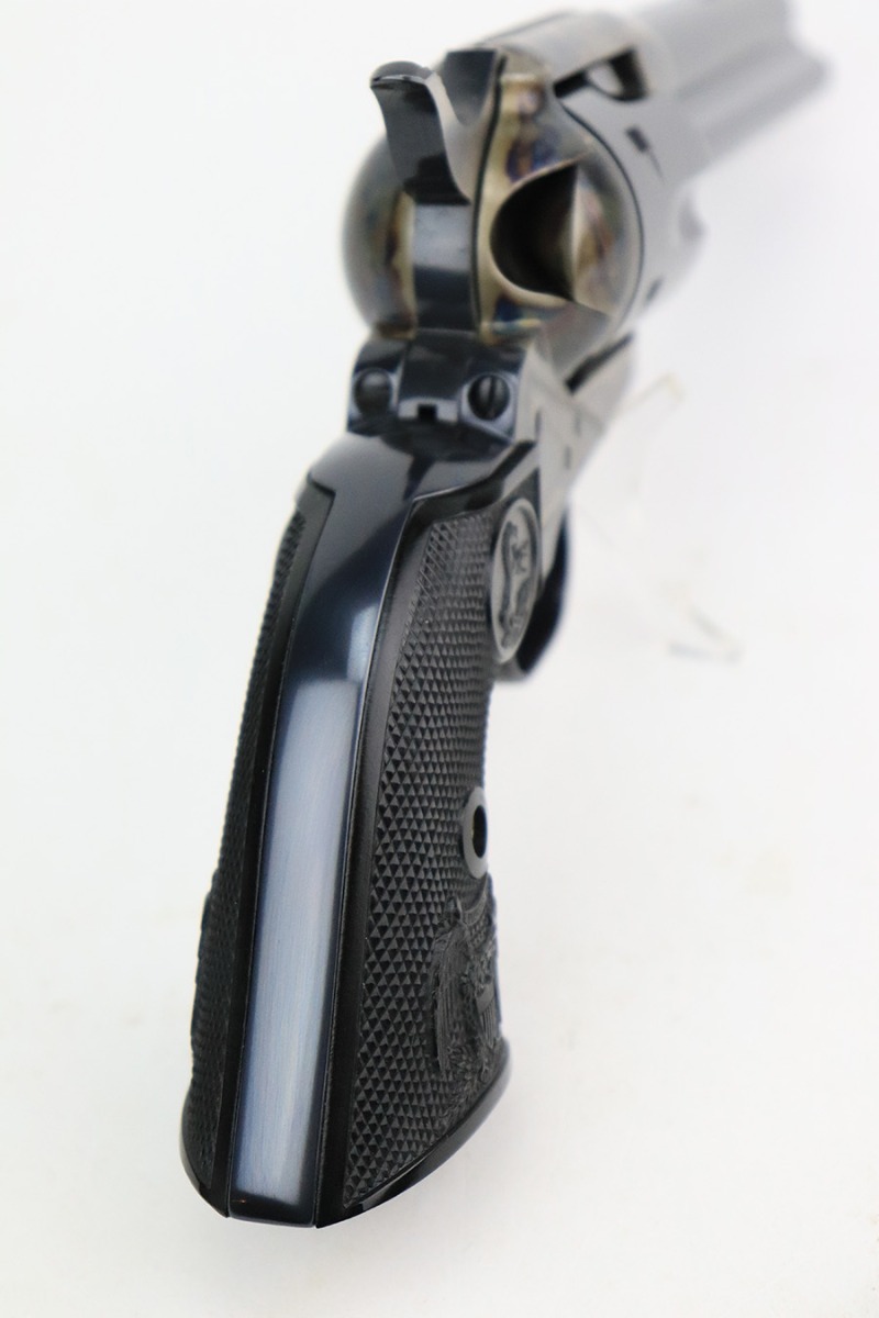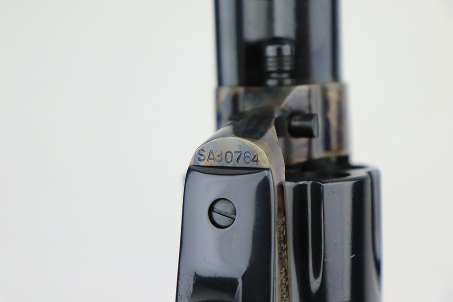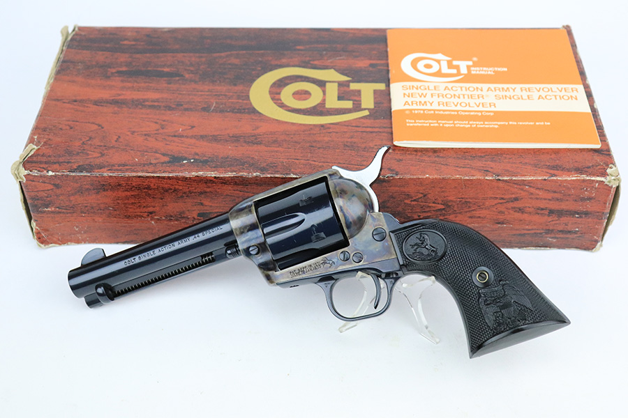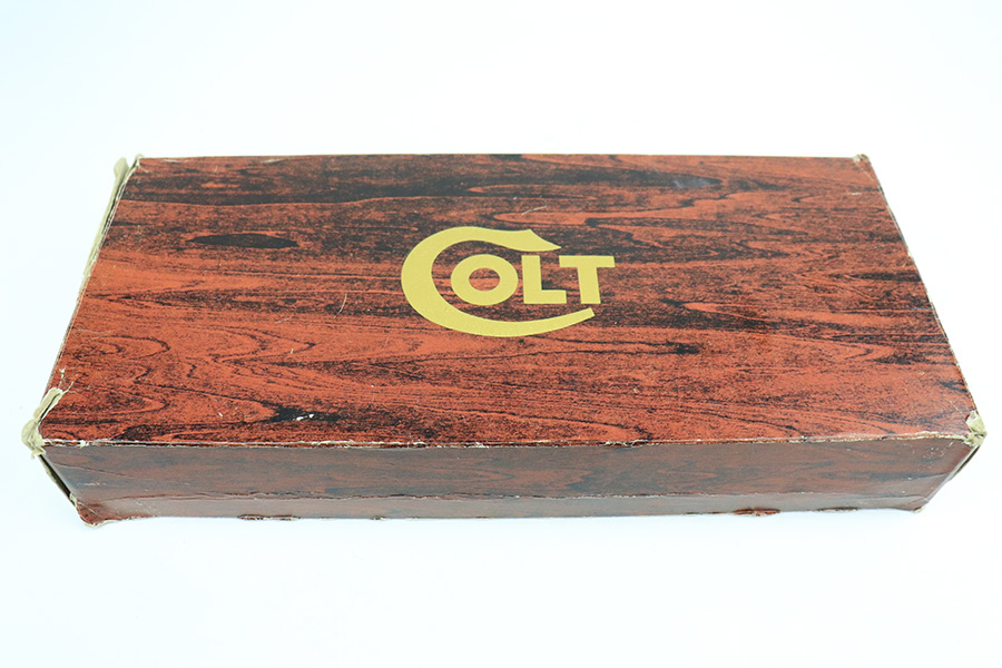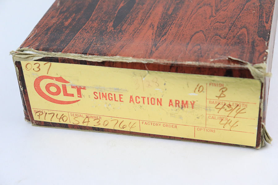 7/19/22 – This is a minty Colt Single Action Army revolver in its original, matching box. It’s a 3rd gen example that was made in 1980. Barrel is 4.75in with a mint bore. The revolver appears unfired or nearly unfired, with hardly even a turn line on the cylinder. There are a couple of minuscule surface scratches on the cylinder but the gun is otherwise mint. Box has the original Styrofoam insert and the matching serial number of the revolver on the flap. FFL required.