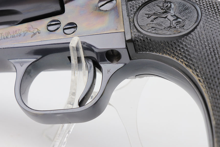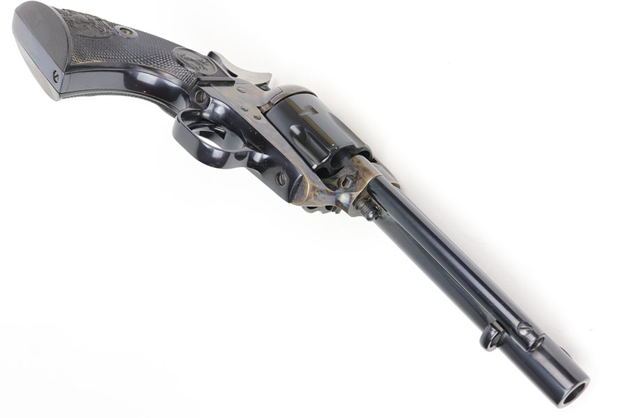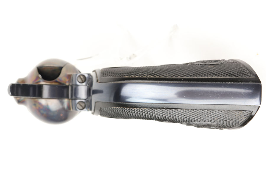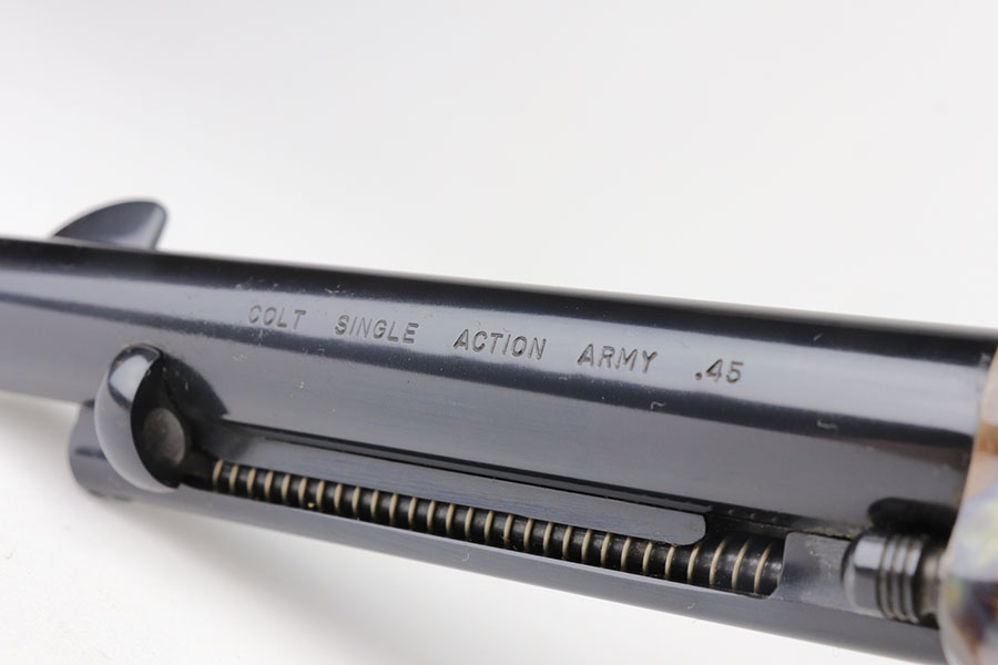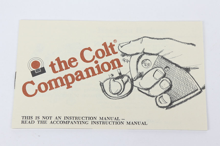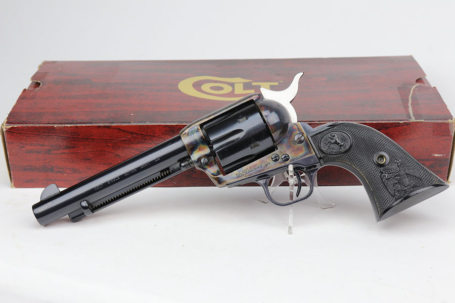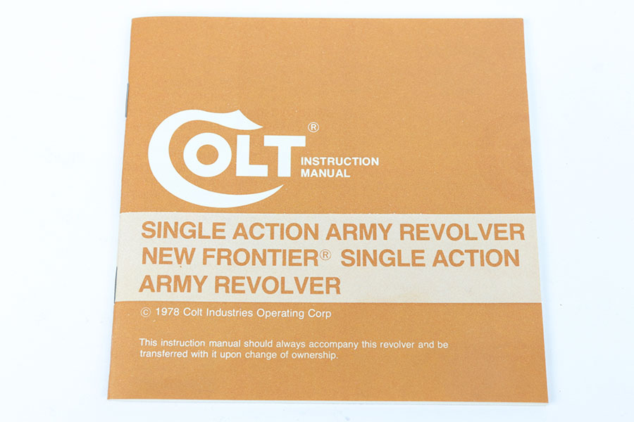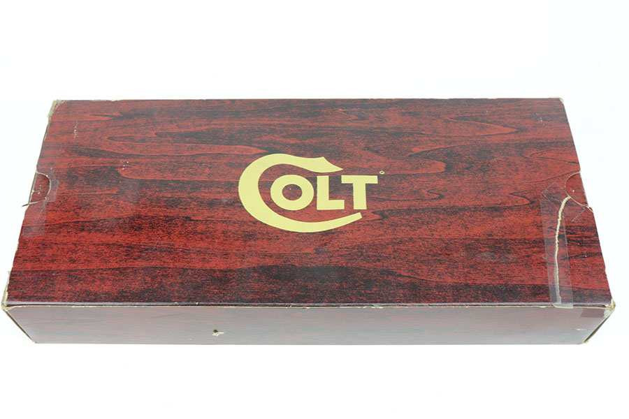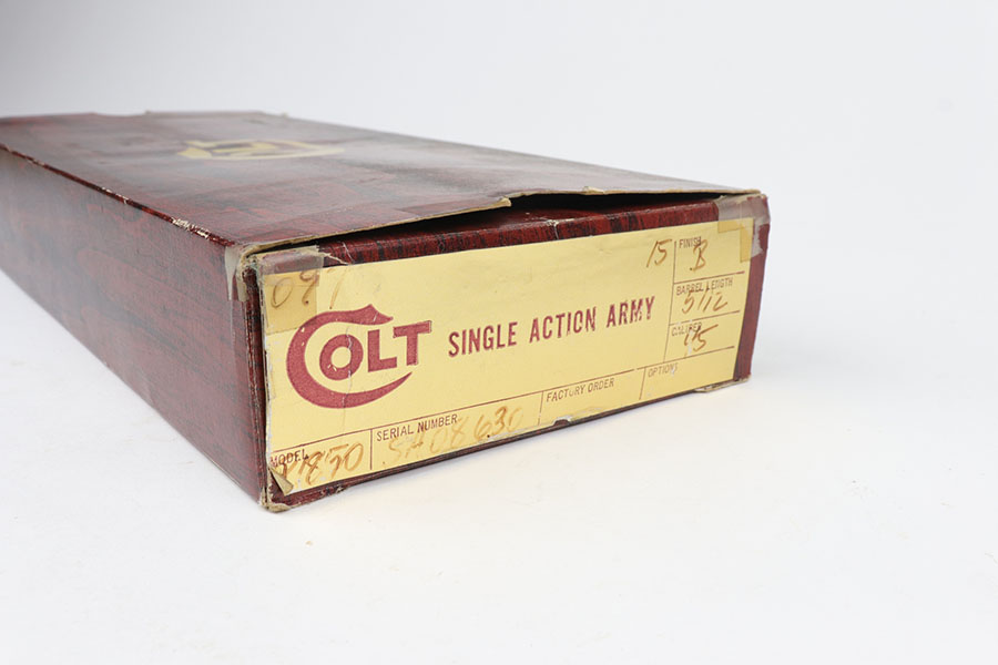 1/19/21 – This is a mint Colt Single Action Army revolver in the original, matching box. It’s a third generation example from 1979. Barrel is 5.5 inches long with a minty bore. The gun shows hardly any signs of use or handling, not even a roll mark on the cylinder. Excellent grips. Box still has the Styrofoam insert. Comes with Colt manual. FFL required.