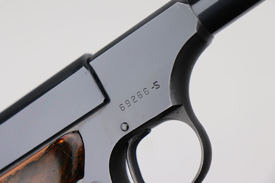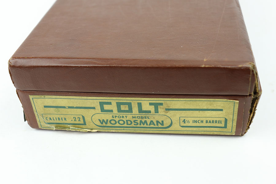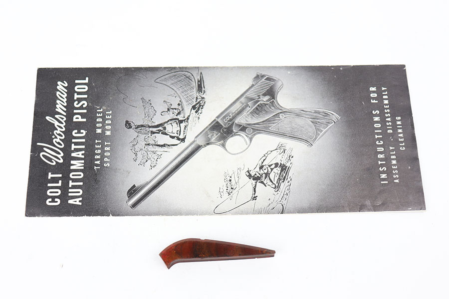 4/7/21 – This is an excellent Colt Woodsman Sport from 1950 in the original box. It’s a second series example with 4.5 inch barrel. About 98% blue with most of the finish loss around the muzzle. Both grip adapters are included. Mint bore and excellent grips. Comes with a 1951 dated manual.