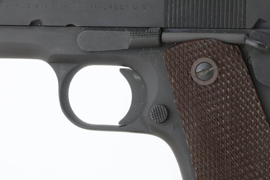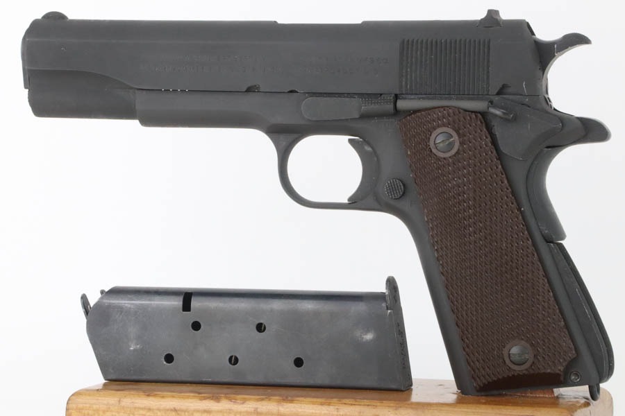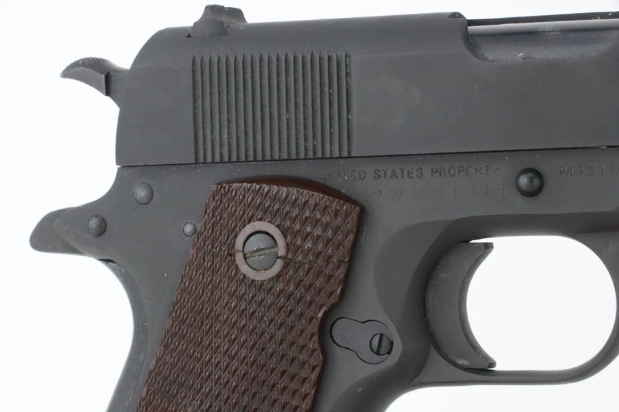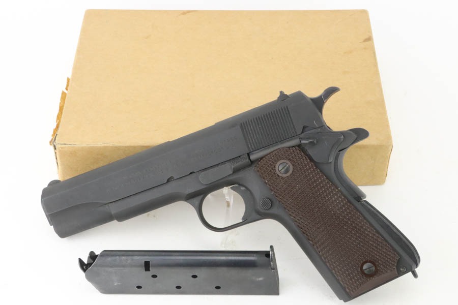 10/15/24 – This is a commemorative remake of the original WW2 Colt 1911A1. It is identical in every way to the original gun. It has all the same features and markings. This one is in mint, virtually unused condition. It comes with a box that is identical to the WW2-vintage craft box and even has the same wax paper! The number on the box does not match the gun. Does not include the larger blue box that keeps all of it together. Comes with one magazine. This gun was manufactured in 2002. Mint bore.