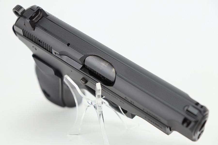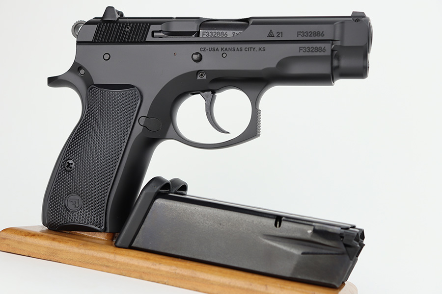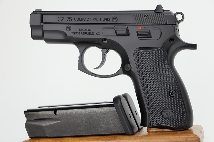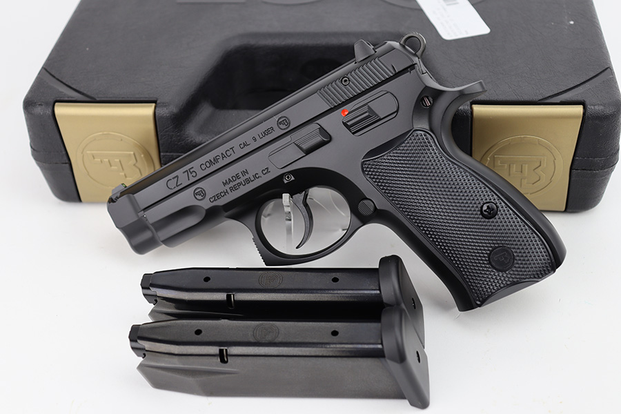 12/15/23 – This is a like-new CZ 75 Compact, chambered in 9mm. It has a really nice matte black finish and is fitted with black plastic grips. No sign of wear or use. Mint bore. It comes with its original matching-numbered hard case, owners manual, two magazines, gun lock, cleaning rod, and cleaning brush.