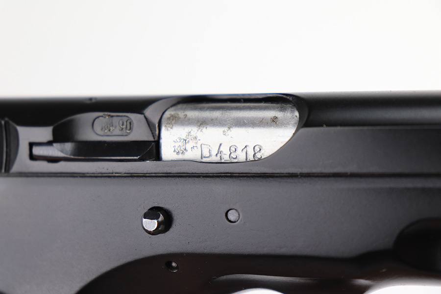 3/30/22 – This a scarce CZ Model 75 Pre-B with no import marks. It’s in mint condition with just a hint of “box wear”, and comes with the original factory box, test target, manual, cleaning rod and spare magazine. The gun has a mint bore and appears unfired or nearly unfired. Test target and original inspection card with matching serial numbers are present. Total of two magazines included. FFL required.