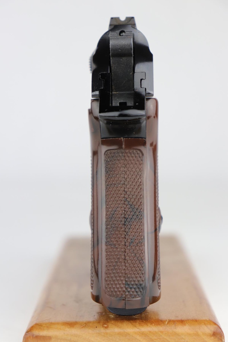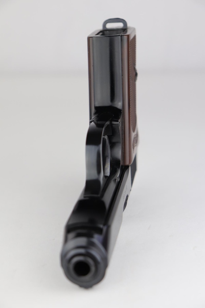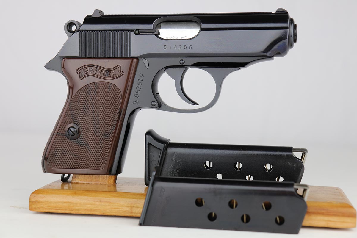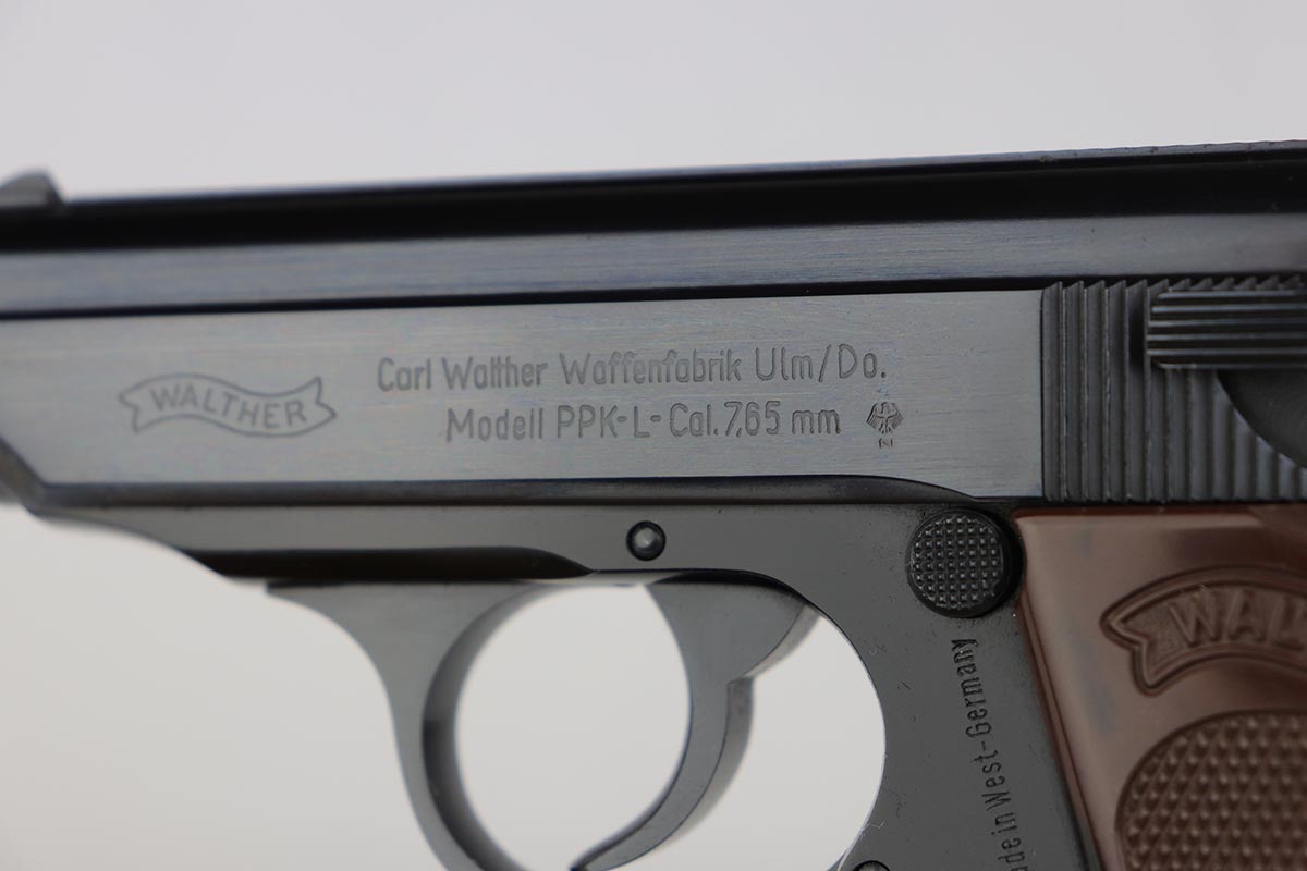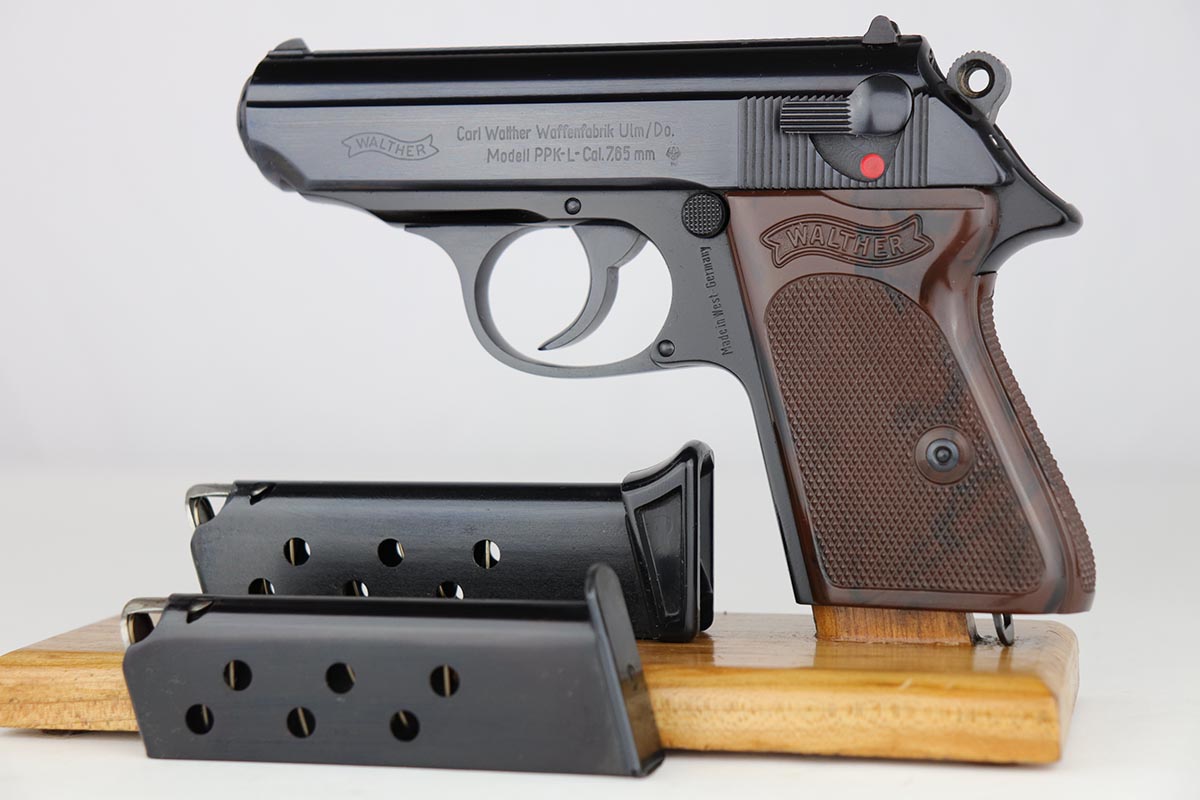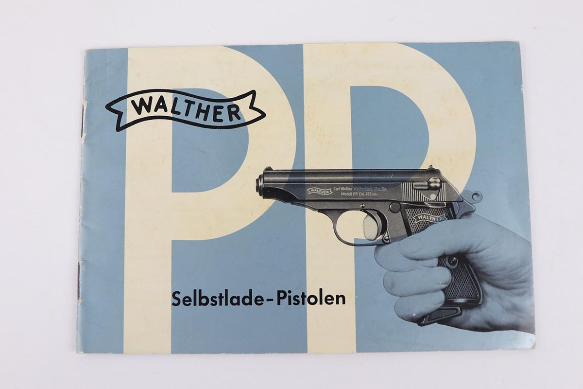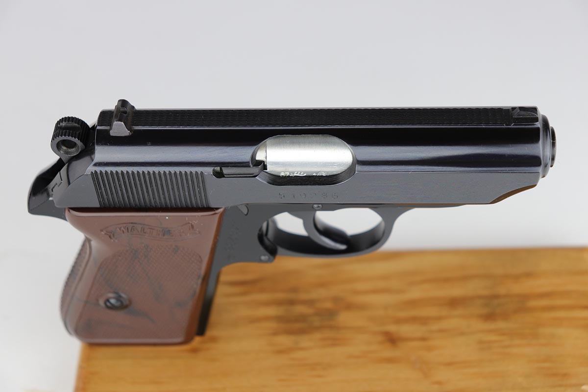 6/4/19 – Arguably the rarest variation of the post-war Walther PPK pistols, this Dural model was made in 1967 and chambered in 7.65mm(.32 ACP). It is ‘as new in the box’ and appears unfired. It is complete with a matching box and a matching test target, cleaning rod, manual, spare magazine and a small tool. The bluing is without defects and is considered by many to be the best blue that Walther produced over the last 100 years. The frame is light weight aluminum, as evidenced by PPK-L designation on the left side of the slide. Mint, impossible to upgrade example with no import or “Interarms” markings.