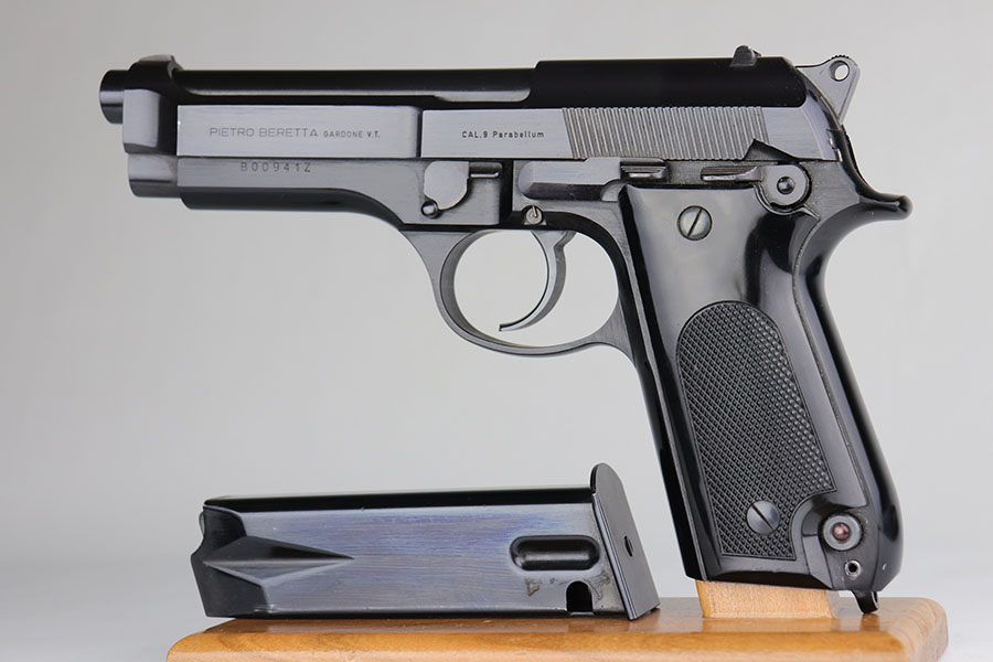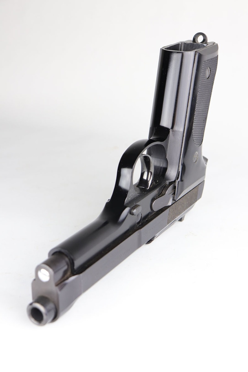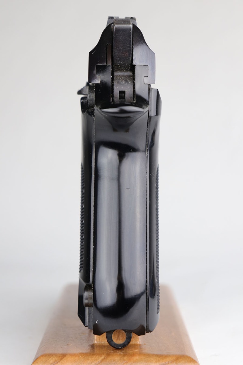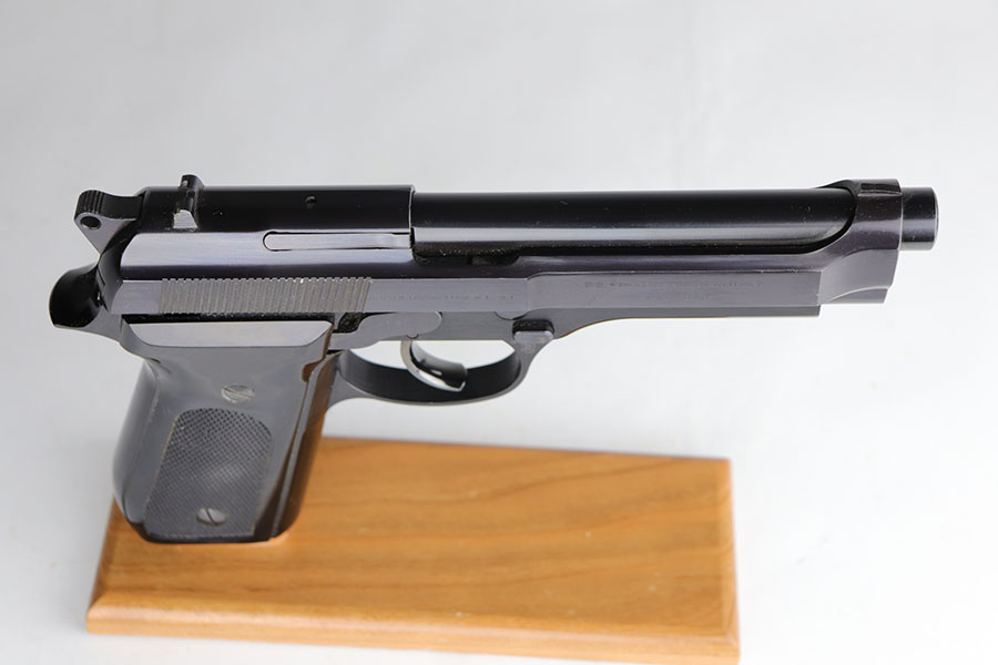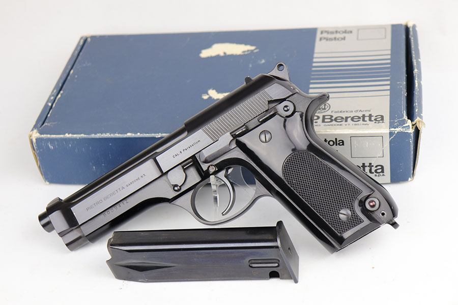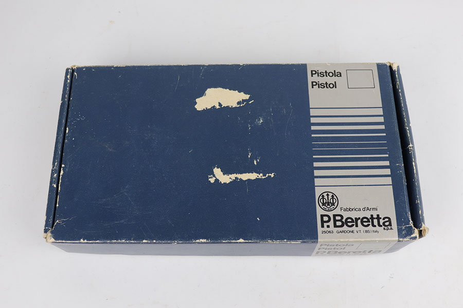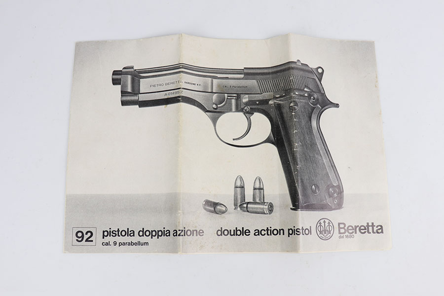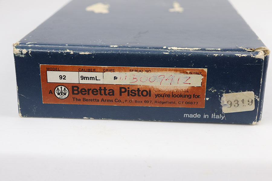 5/1/20 – By far the rarest variation of all Beretta 92 series guns, this is an early “step slide” Beretta 92, with date code AC(1977) on the right trigger guard. This spectacular gun appears near new and is a complete set, that comes with its original early manual, a warranty card, a cleaning brush and a serial numbered original box. Different from the subsequent variations, the first issue Beretta 92 had a “stepped slide’, a frame mounted safety and a mag release on the bottom of the grip frame. Only about 5,000 of these collectible guns were made from 1975-1977, with only a fraction being imported into the US by the Berben corporation – a Beretta subsidiary. This particular gun is in incredible shape with just a hint of wear on the forward edges of the slide, with a dural high gloss frame and a high polished steel slide. Impossible to upgrade!
