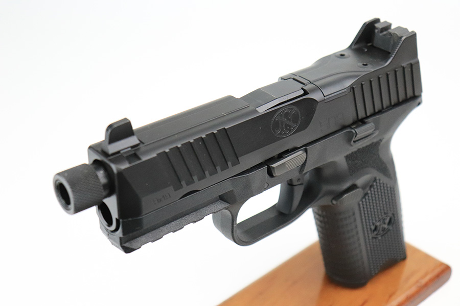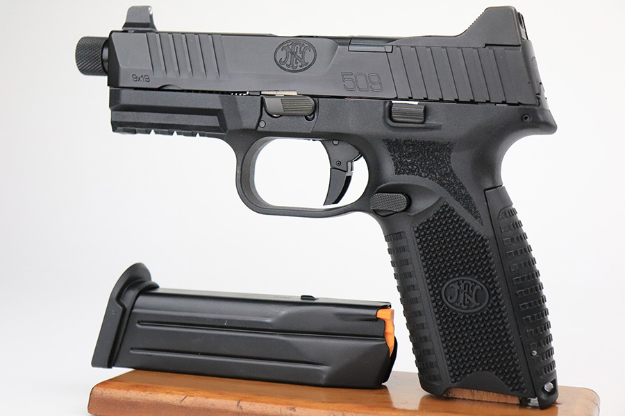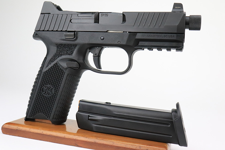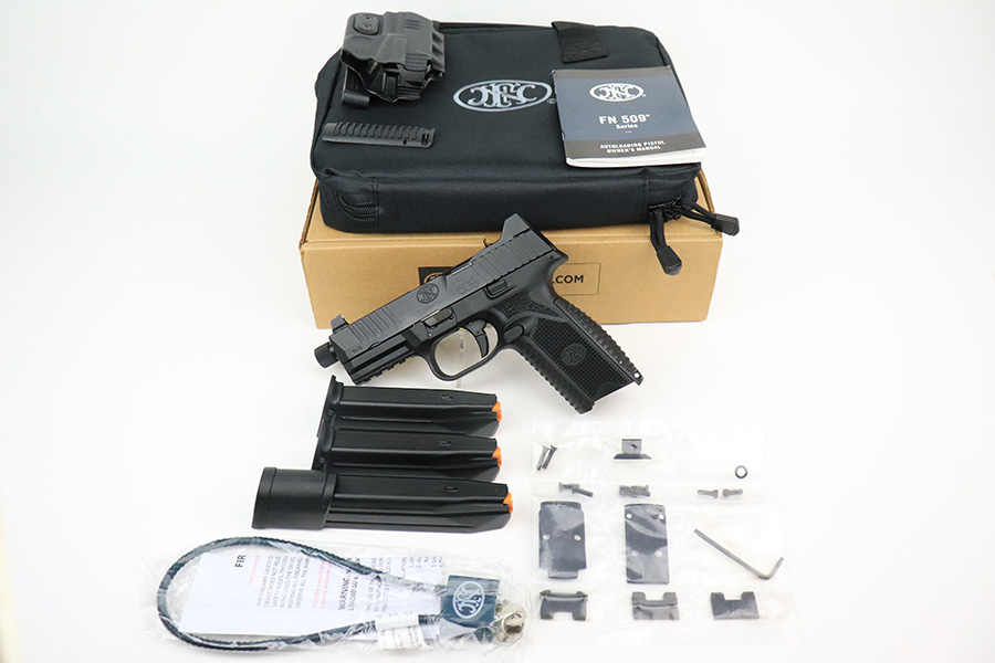 9/2/22 – This is an ANIB FN 509 Tactical in unfired condition. Comes with the original shipping box, as well as the case with two spare mags and all the extras. Black frame and slide finish with threaded muzzle. From FN’s site: The FN 509® Tactical, an extension of the FN 509 family, is based on FN’s submission pistol that the U.S. Army tested for its Modular Handgun Trials, but includes the significant improvements to the design that were implemented in the FN 509. The pistol features the company’s U.S Patent No. 10/352,654 Low-Profile Optics Mounting System™ that enables the platform to accept more than ten commercially-available miniature red dot (MRD) optics that co-witness with the suppressor-height night sights and remain adaptable to future optics releases with no requirement of direct milling of the slide. The slide cap, for use when not shooting with an optic, has raised sight wings that protect iron sight alignment if the pistol is dropped or jostled, and provides a textured ramp for racking the slide against a belt loop, pant pocket or boot. An FN-signature 4.5-inch, cold hammer-forged, stainless-steel barrel with target crown, ½” x 28 threads that accept the bulk of 9mm suppressors available and thread cap with integrated O-ring to prevent loosening during use complete the top end. Lastly, the 24-round magazines, nearly identical in length to the pistol’s slide, maximize ammunition capacity without impacting carry convenience.