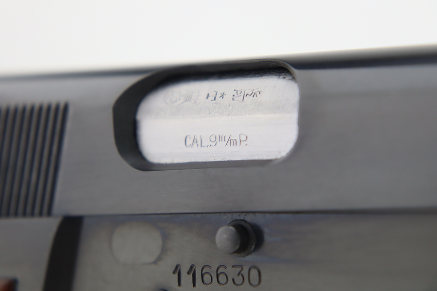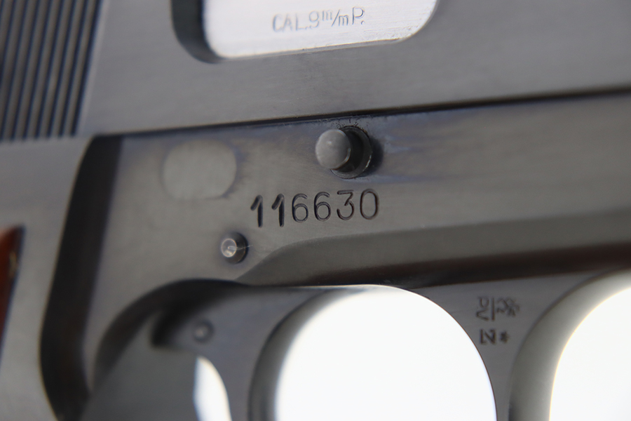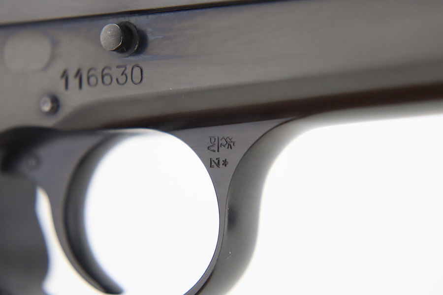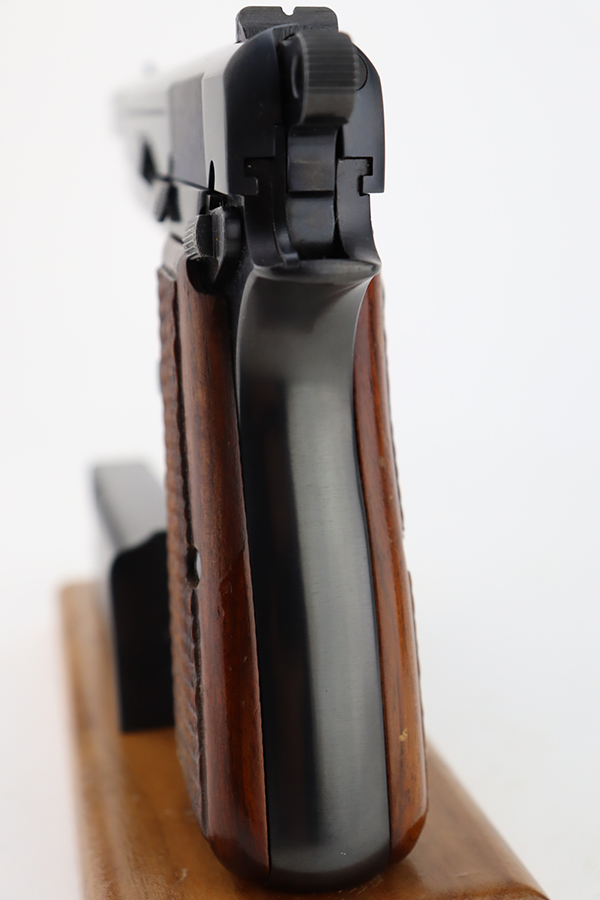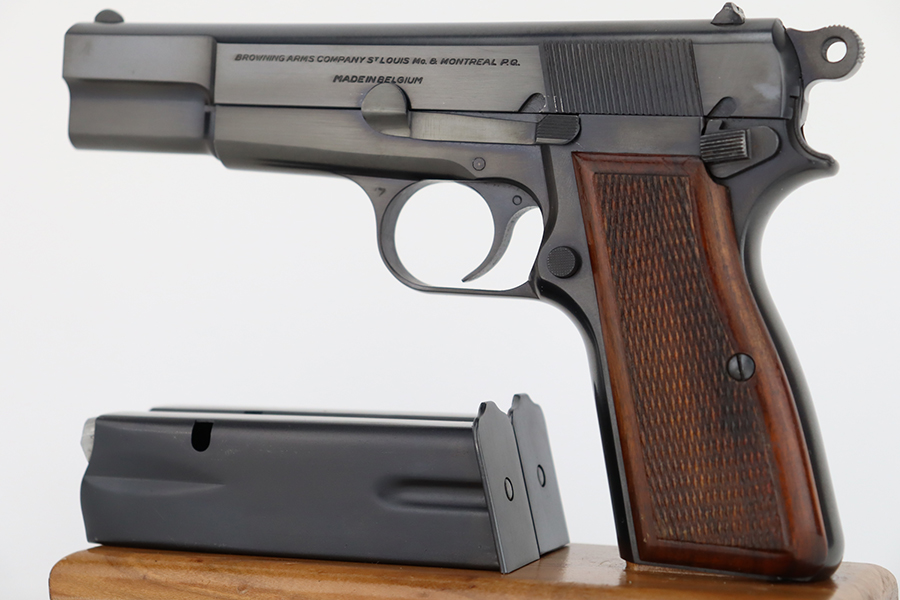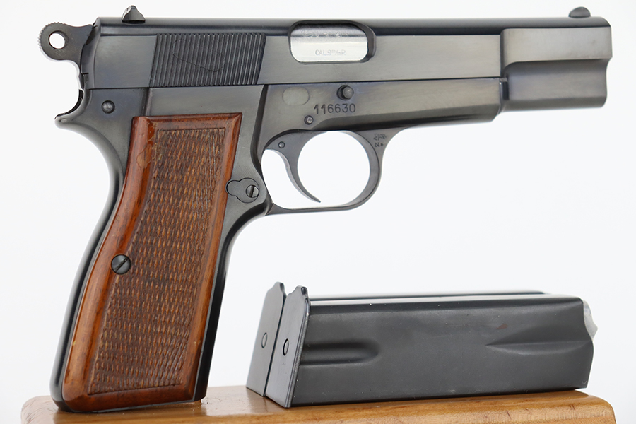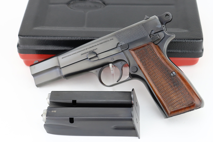 1/31/24 – This is a stunning example of an FN Browning Hi Power manufactured in Belgium in 1964. All matching with the proper Belgian proofs. It comes with two magazines and a Browning plastic box (not numbered). The gun itself is in like-new condition with no signs of wear to speak of. Fitted with beautiful wood grips. Factory-new bore.