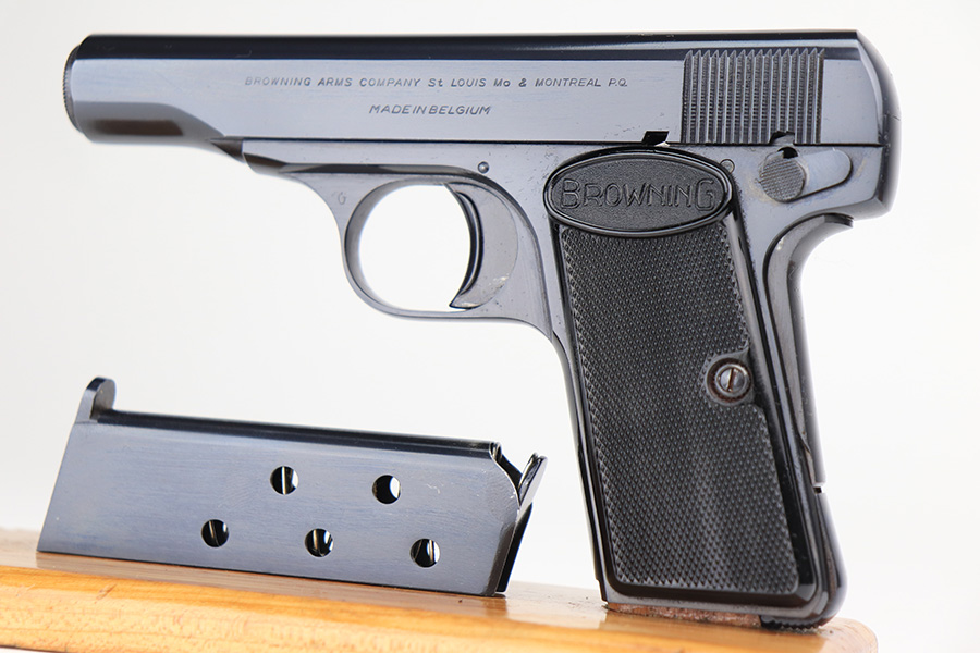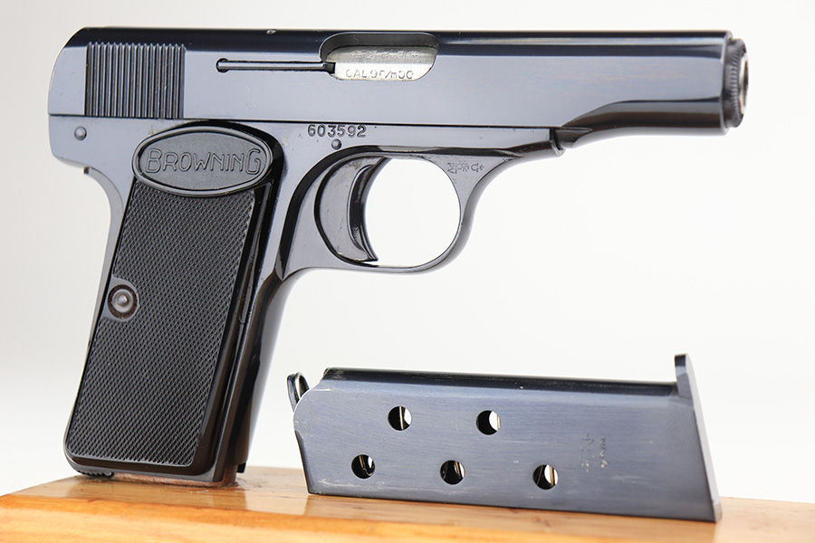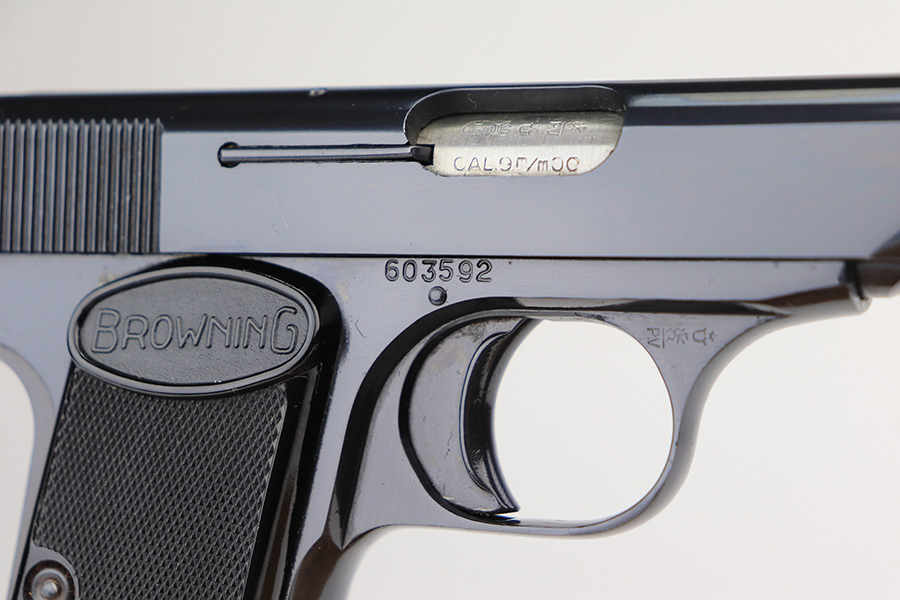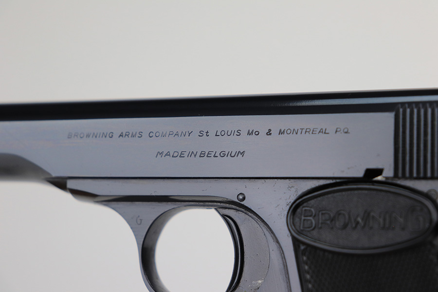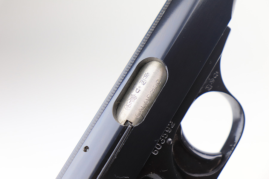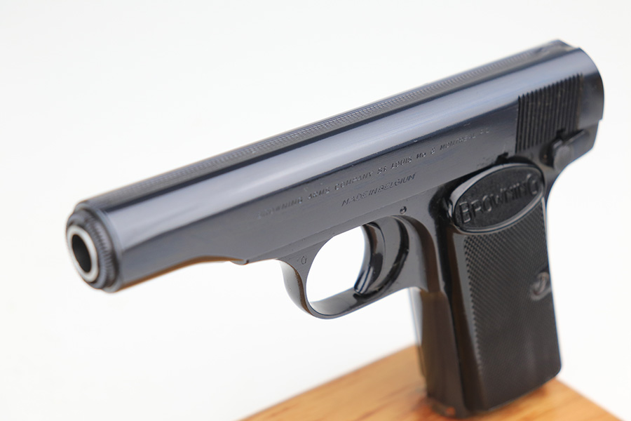 3/4/22 – This is a like-new example of an FN Browning Model 1955 manufactured in 1967. It comes with an original cardboard Browning presentation box (noticeable tears along the edges), owners manual, and an original sticker from the box. The gun has retained all of its original bright bluing with one very light scratch on the left side of the slide. Comes with excellent black plastic grips and one proper magazine. Mint bore.