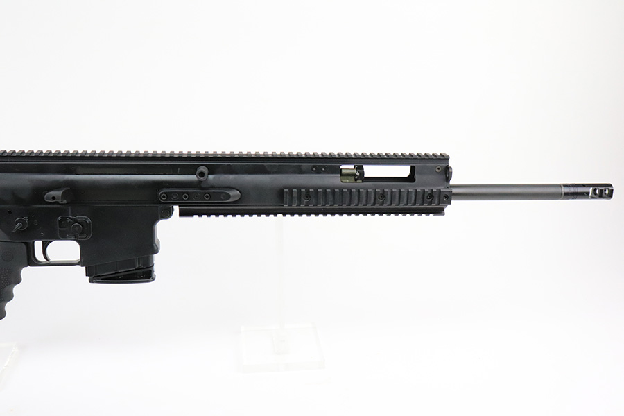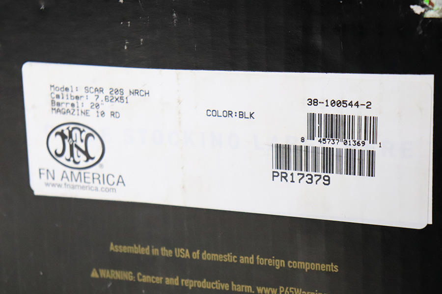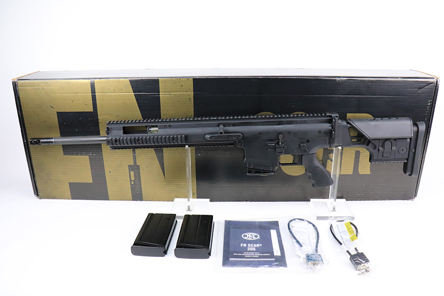 7/15/22 – This is an unfired FN SCAR 20S in its original box. It has a 20in free floating barrel that is cold hammer forged, chrome lined with a 1:12in twist, and PROCOMP compensator. Ambidextrous safety lever and magazine release, and charging handle can also be mounted on either side. Also included with the gun are 2 FN 20rd steel magazines, and one 10rd steel magazine. No sights installed so the buyer can choose for themselves. Burris AR-P.E.P.R. mount, FN gun lock, and owners manual also included. The box includes the original sealed manuals and two FN locks. The Styrofoam inserts are intact and the box is original and matching numbered to the rifle.