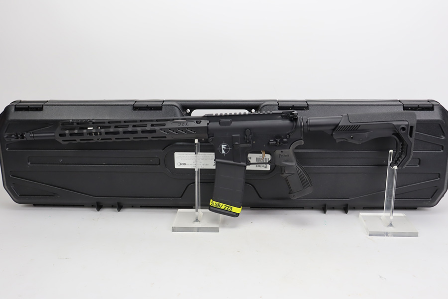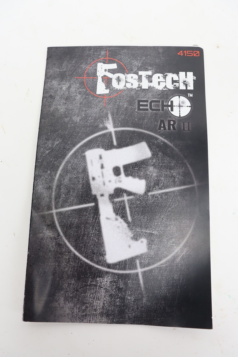 11/9/23 – This is an ANIB FosTech Tech-15 Stryker AR15 Rifle chambered in 5.56 NATO, sporting a 16″ barrel, and featuring the groundbreaking Echo AR-II Trigger. The Echo AR-II, which retails for $500 if purchased separately, adds a selectable mode (it can still be shot in semi-auto) in which the rifle fires when the trigger is pulled and also when the trigger is released. This one is in spectacular unfired condition, with zero wear to note, and the bore is pristine. Comes with one original 30 round magazine. Also includes original serialized hard-shelled carrying case, owners manual, and warranty information.