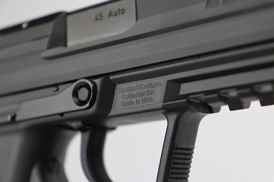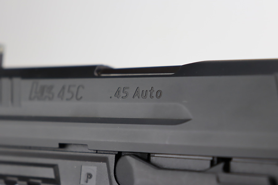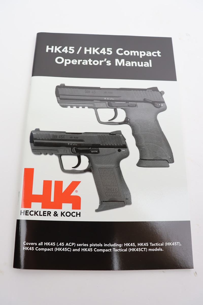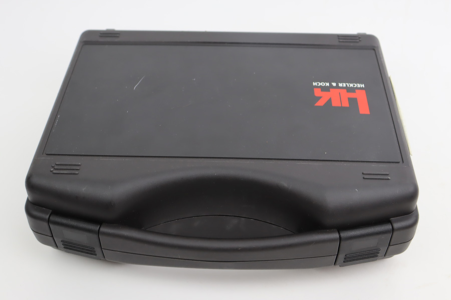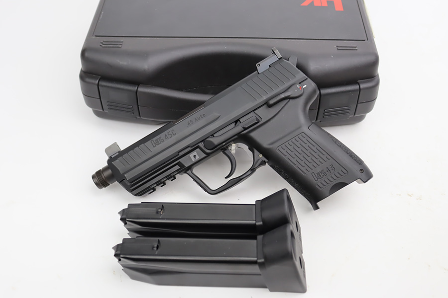 11/7/23 – This is a like-new H&K 45C semi auto pistol, chambered in .45 ACP with a threaded barrel. It comes with its original matching-numbered hard case, owners manual, two magazines, and a spare grip. No signs of wear or use. Mint bore.