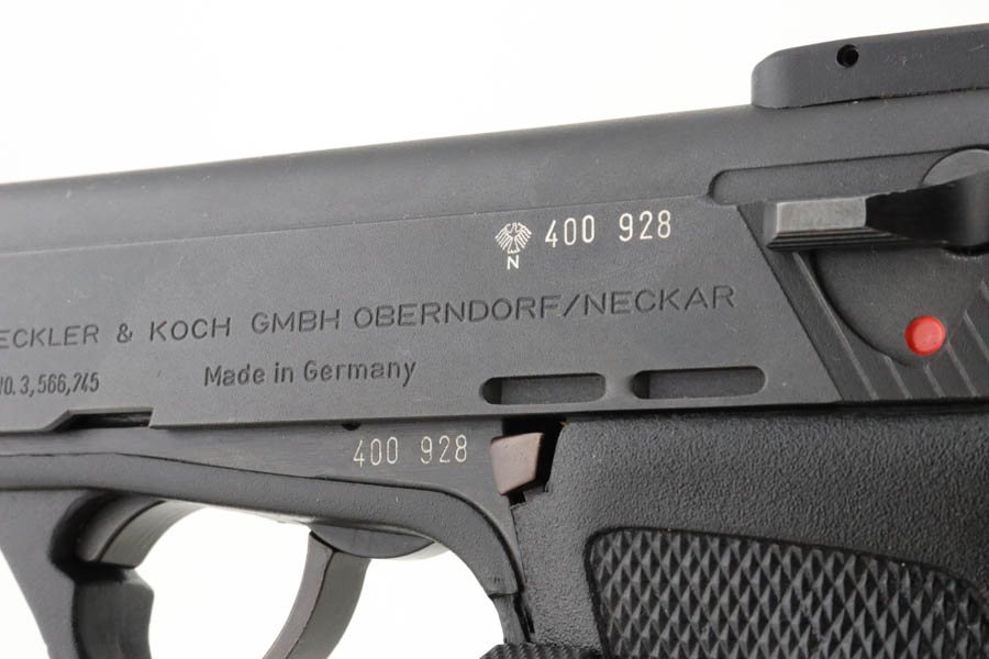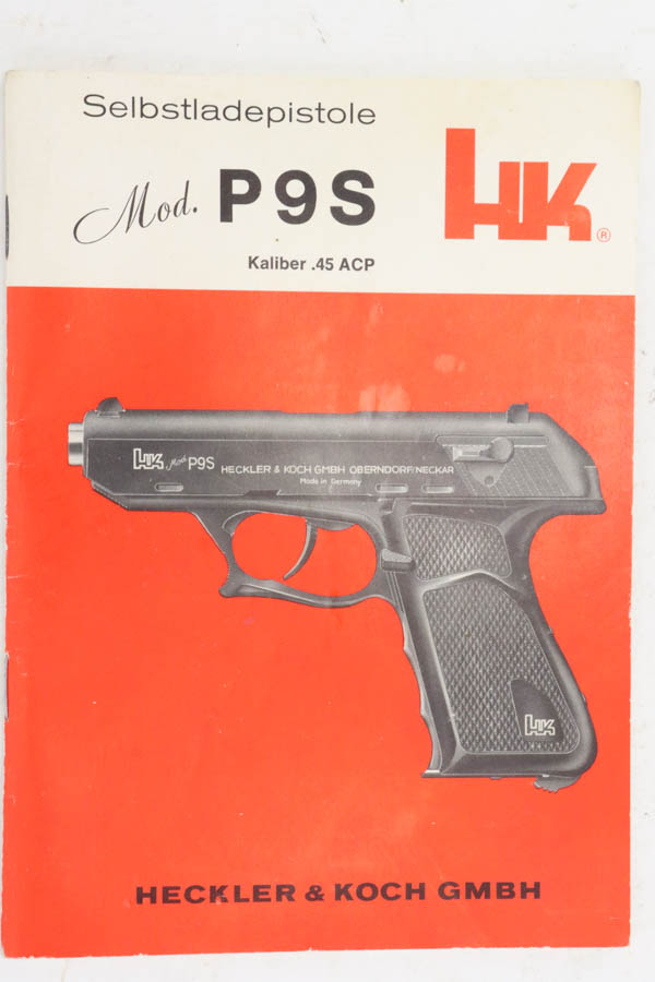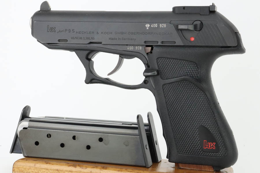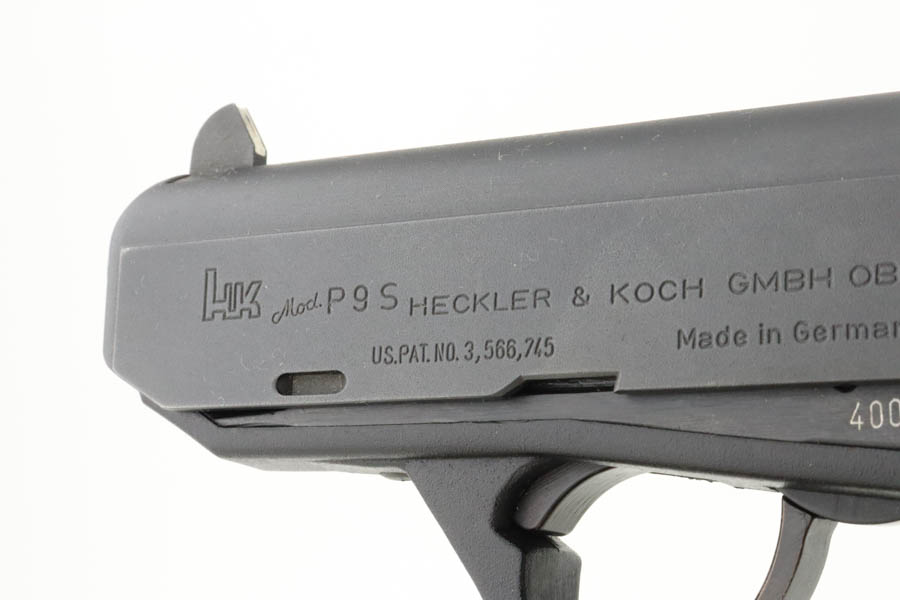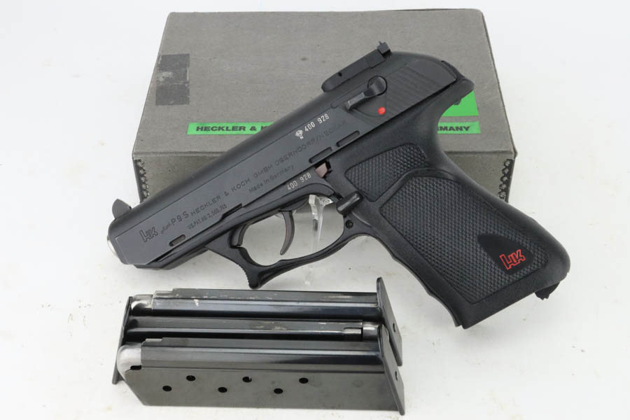 7/17/24 – This is a mint example of an HK Model P9S Target pistol, manufactured in 1977 and chambered in .45 ACP. All matching with the proper West German proofs. Import mark on the right side of the slide. It comes with a proper box (not numbered), owners manual, tool, and three magazines. The gun is like-new with no signs of wear or use. Mint bore.