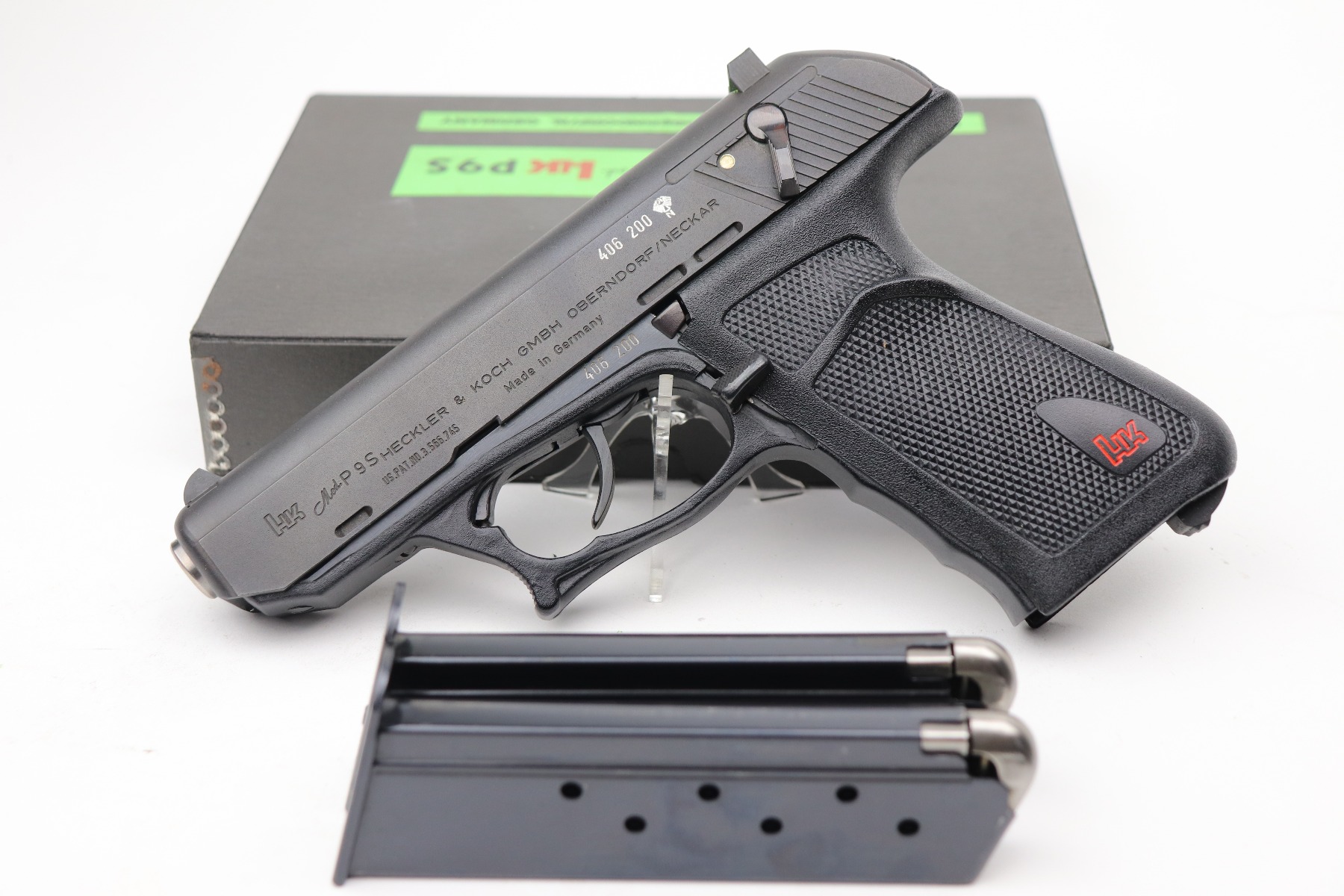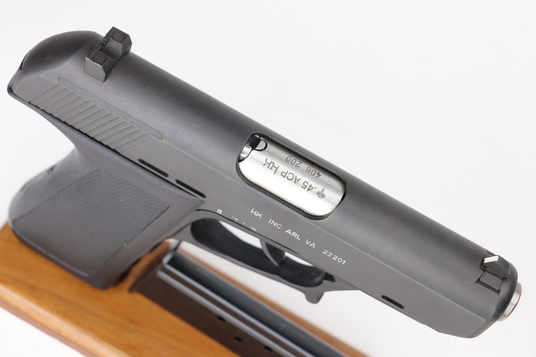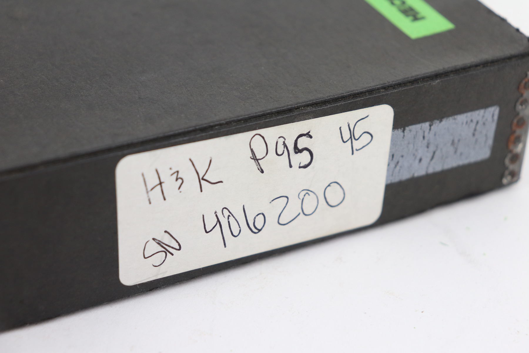 3/26/21 – This is a like-new example of an HK P9S semi auto pistol, chambered in .45. The .45acp examples are significantly less common than their 9mm production. It comes with an original box (hand-serialized to the gun), two magazines, an original owners manual, and original test target (serialized to the gun). The gun is all matching and is in like-new condition. The bore is stone-mint. Date code indicates this was made in 1982.