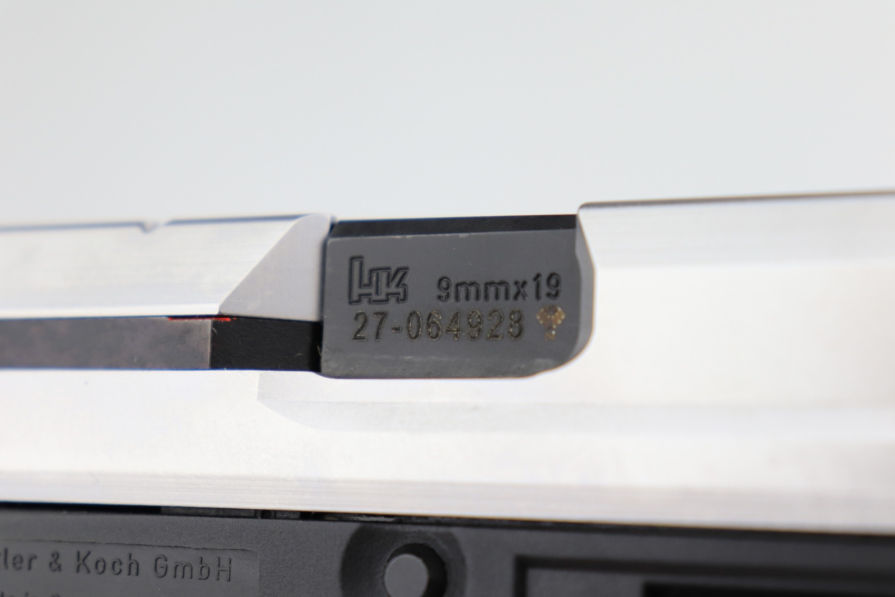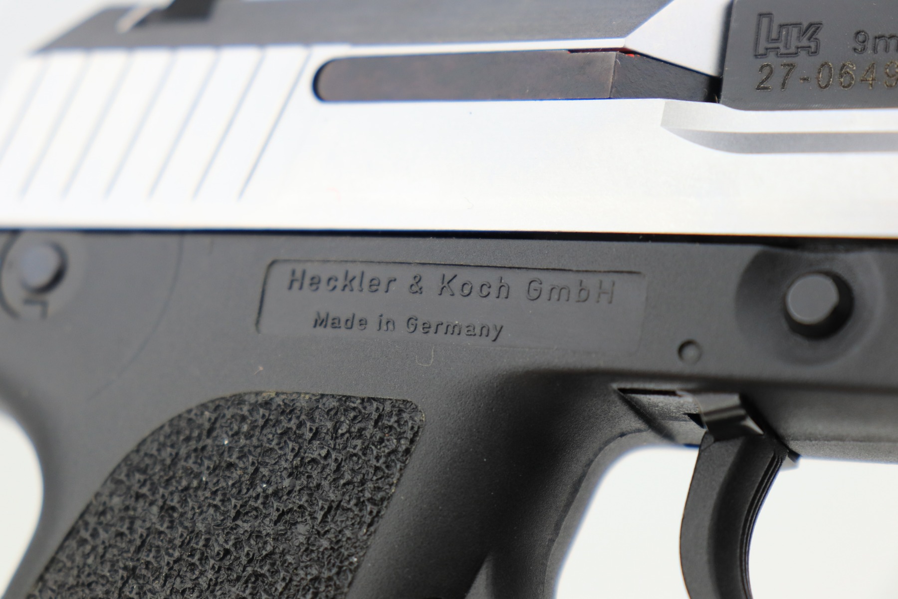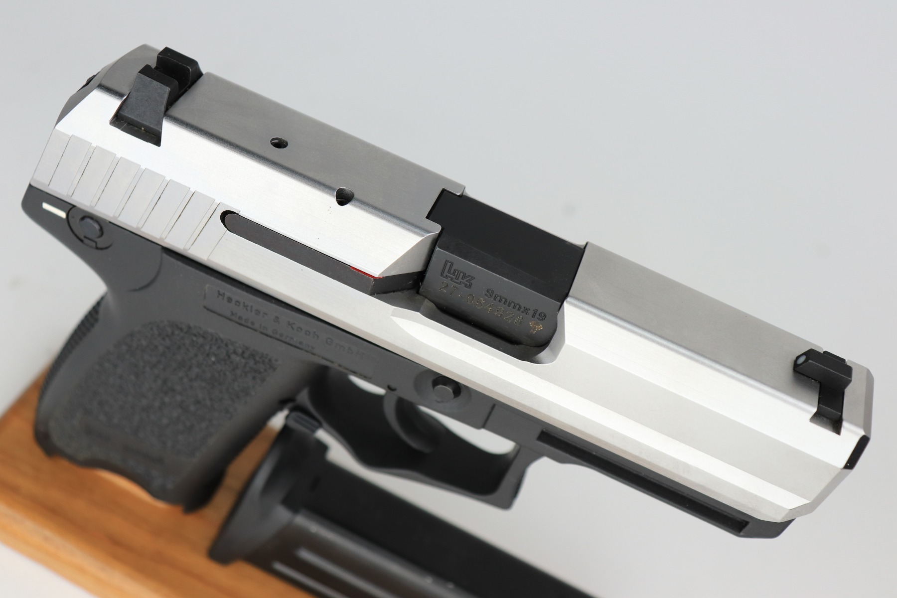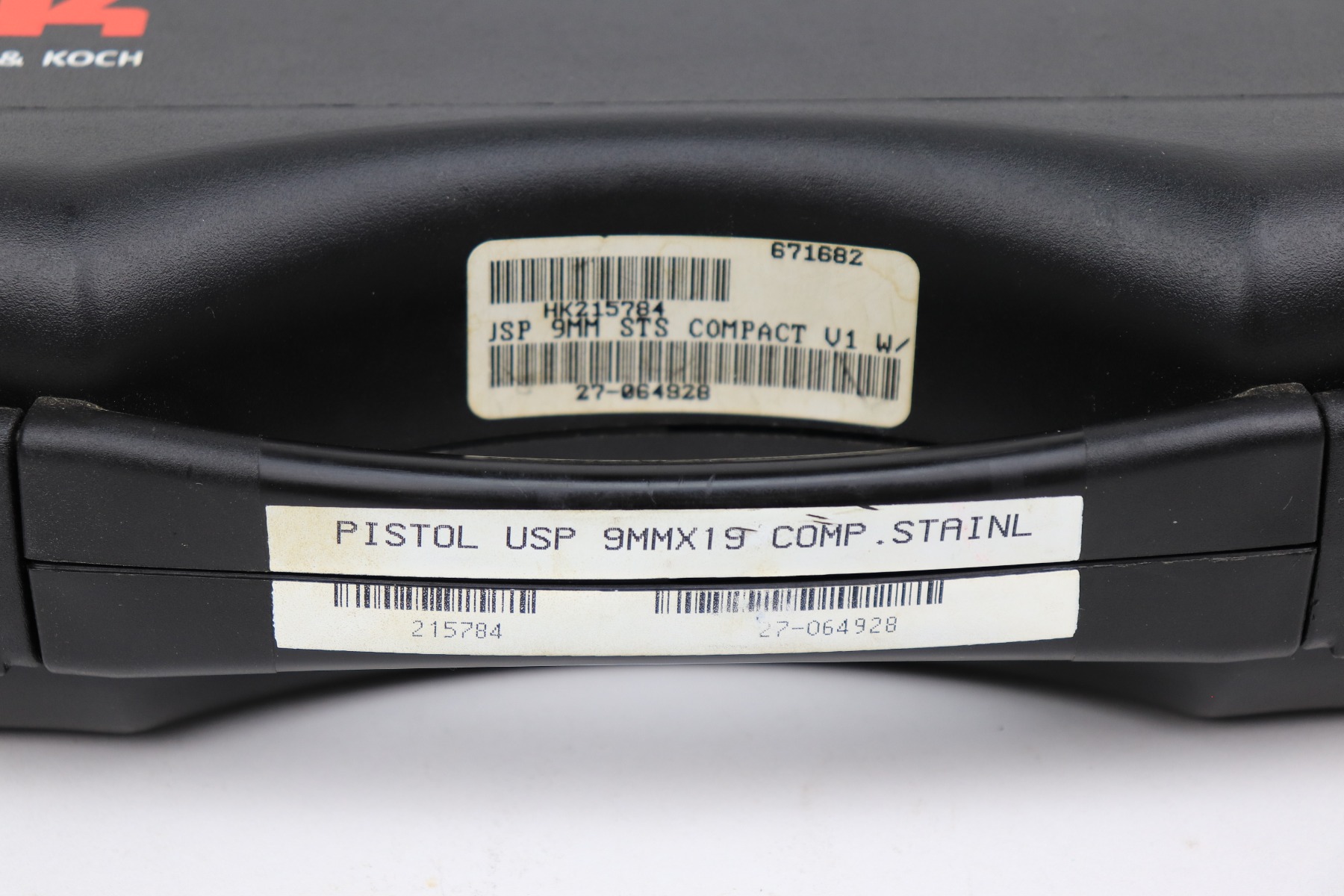 4/1/21 – This is a like-new example of an H&K USP Compact Semi Auto Pistol, chambered in 9mm. The gun comes with the original factory hard case (serialized to the gun), owners manual, original test fire casing, slide rail mount, gun lock, and 4 magazines. The gun is in like-new condition with no apparent signs of wear. The bore is stone-mint.