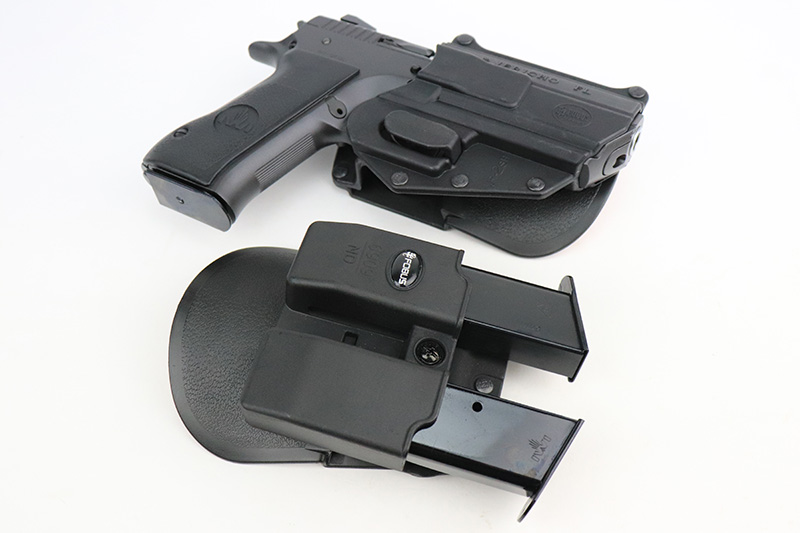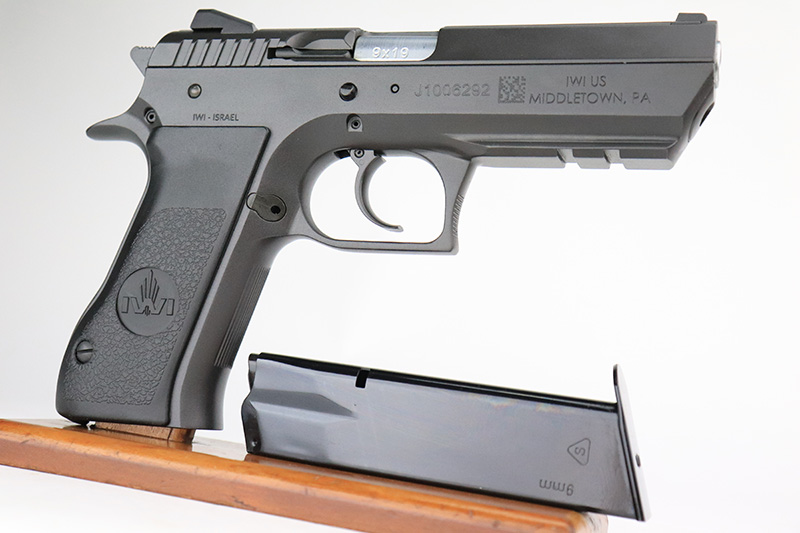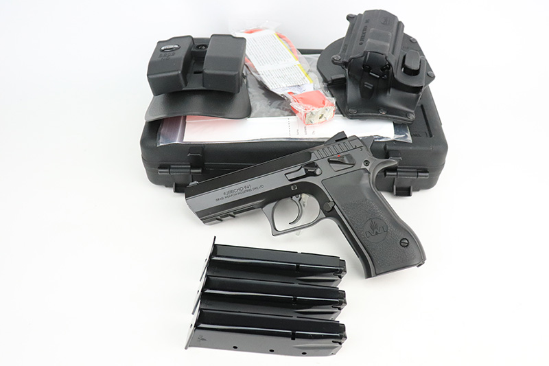 9/27/22 – This is a like-new example of an IWI Jericho 941 chambered in 9mm Luger. It comes with its original matching-numbered hard case, three IWI magazines, gun lock, and owners manual. It also comes with a composite gun holster and magazine holster. It is in like-new condition with very no signs of wear or use. The bore is like-new.