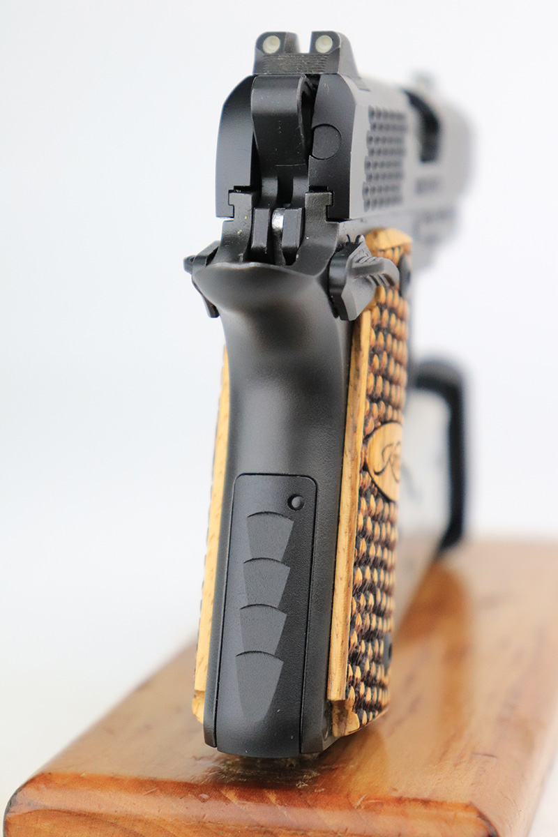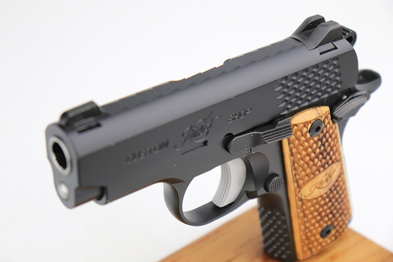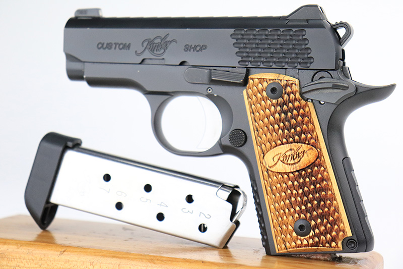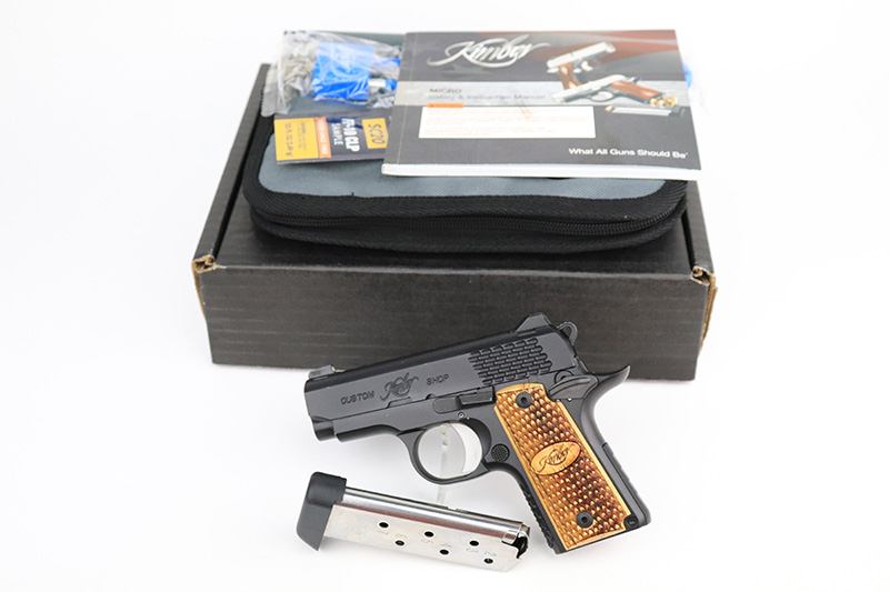 9/7/22 – This is a mint example of a Kimber Custom Shop Micro Raptor semi auto pistol chambered in .380 ACP. The gun has a really nice matte black finish and comes with a set of beautiful blonde wood grips. It is very compact and has a 3″ barrel, making it a perfect conceal carry piece. The gun comes with its original matching box, Kimber soft case, original sales papers, owners manual, gun oil, gun lock, and one magazine. It is in like-new condition with virtually no signs of wear or use. The bore is mint.