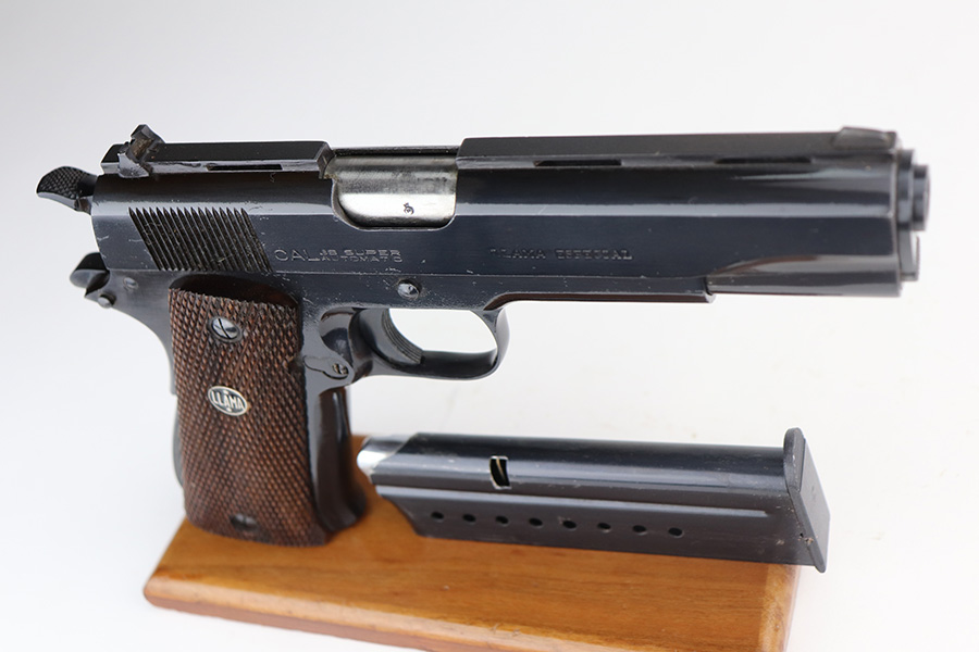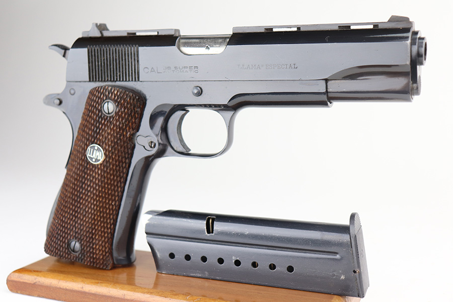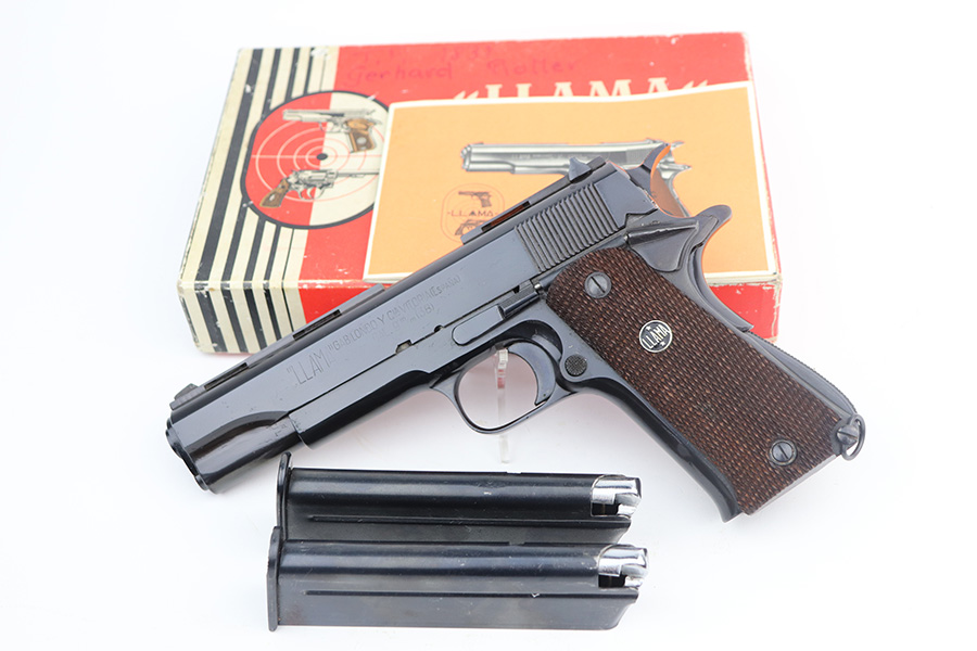 6/17/21 – This is an ANIB Llama Especial VII in .38 Super. It has 99% of the original blue, with just a hint of muzzle wear on the slide. Minty bore and grips. Comes with the original, matching numbered box. Also still has the original manual and spare magazine, as well as original warranty card. C&R eligible.