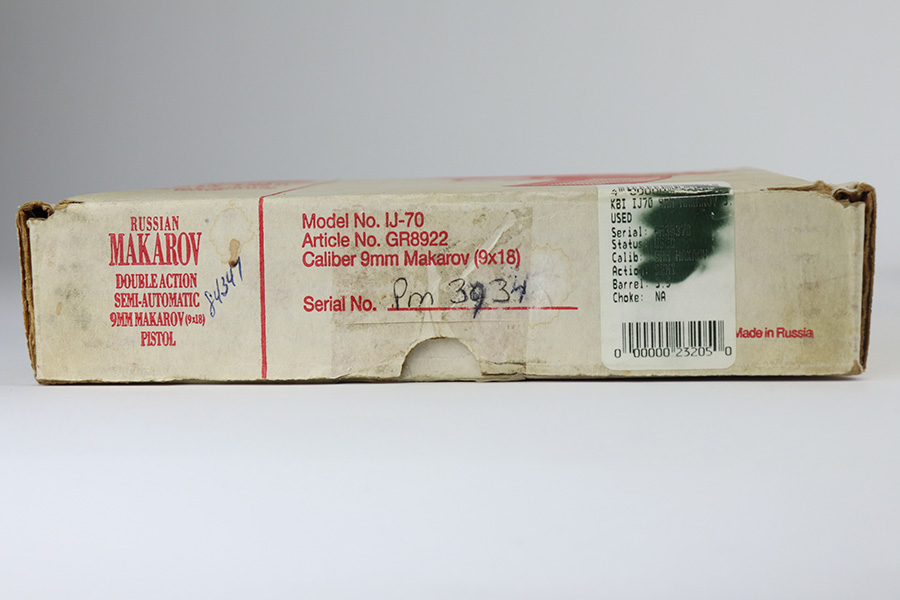 8/19/21 – This is a mint Imez Makarov PM in its original box, with model code of IJ70-18A on slide. It’s in minty condition with a mint bore. Box is numbered and matching to the gun. Comes with the original tool, manual, cleaning rod and a holster. Import mark on slide. FFL required.