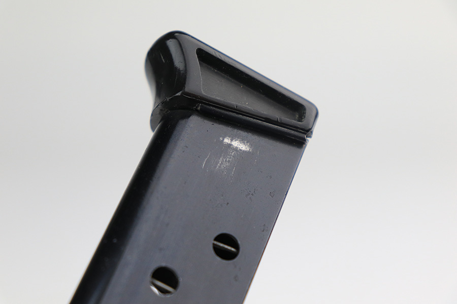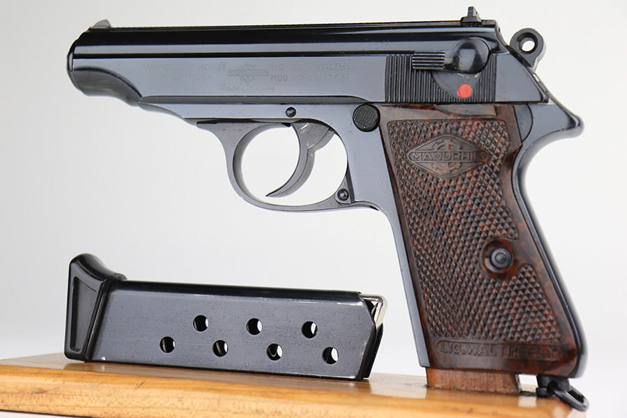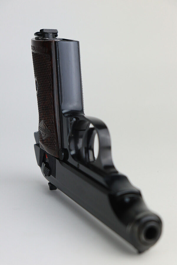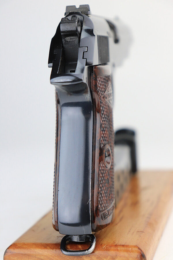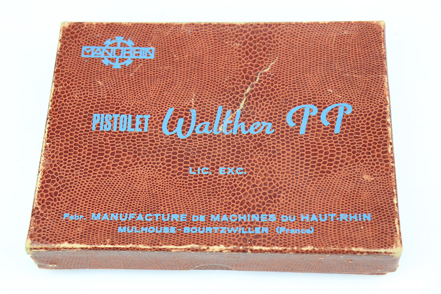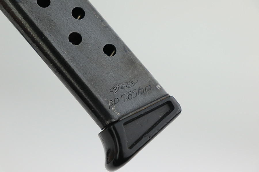 12/3/21 – This is a mint example of a French Manurhin Walther PP likely made in about the 1960’s. The gun is completely matching and has a rectangular lanyard loop on the base of the frame, indicating it was issued to the Danish police. Small import mark on the right side of the slide. It comes with a period-correct box (serial number is scratched off), an owners manual, cleaning rod, and two proper finger extension magazines. The gun has retained about 99% of its finish. There are a few tiny handling marks on the front strap, a light scratch on the right side of the frame, and very minor wear on the edges of the back strap. Comes with excellent reddish Manurhin grips. The bore is mint.
