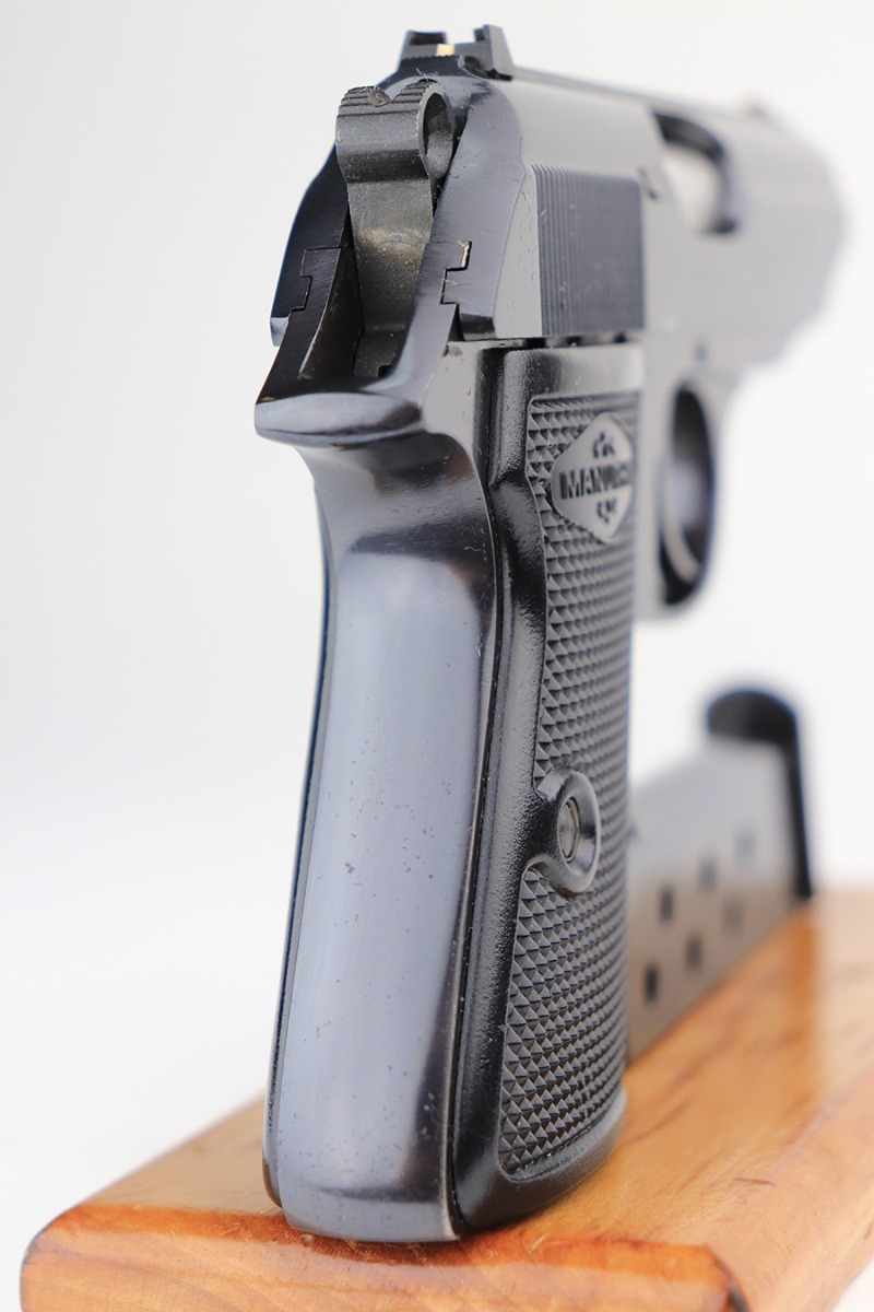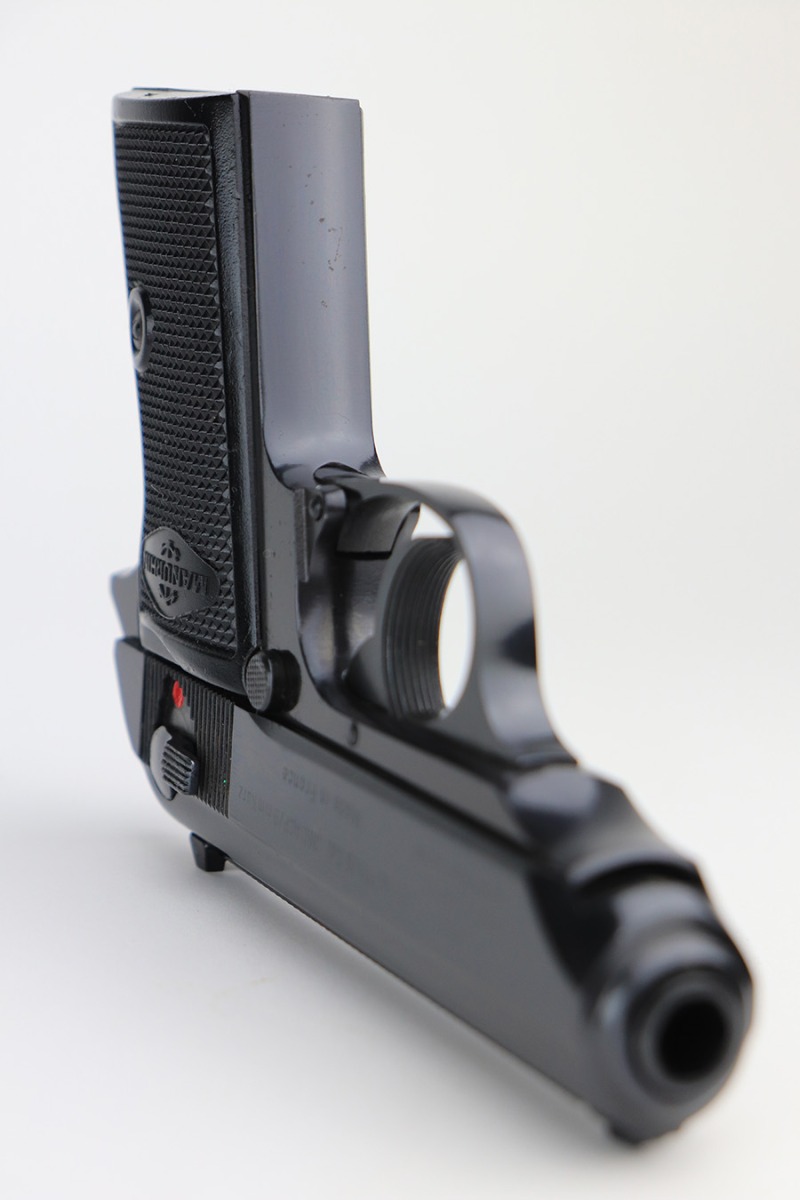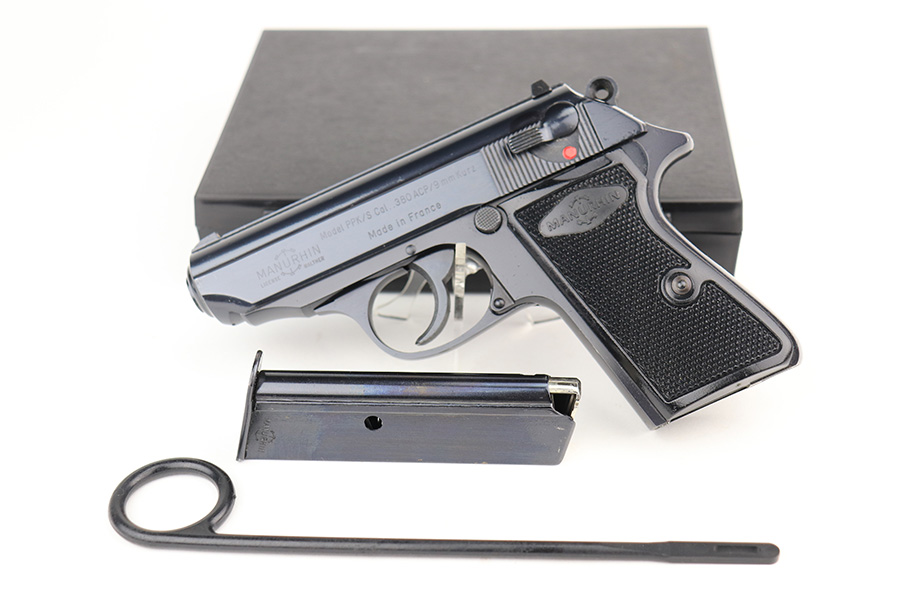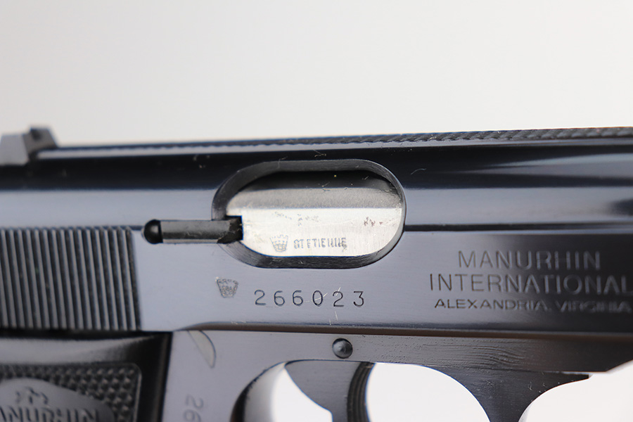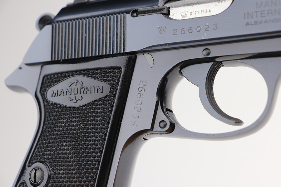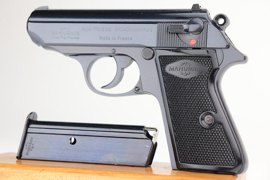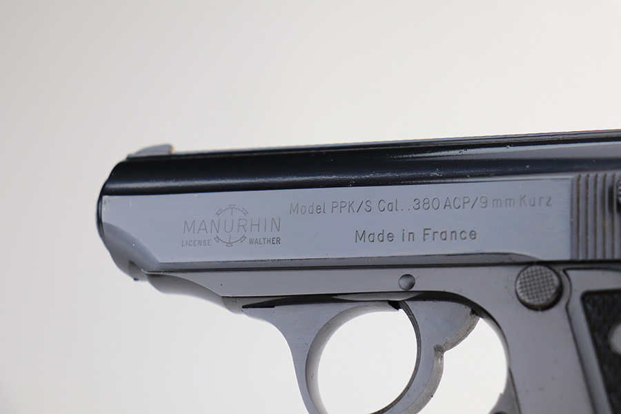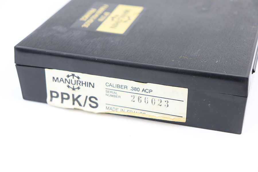 3/3/22 – This is a mint example of a Manurhin Walther PPK/S manufactured in France in the 1970’s. It is all matching and has the proper French proofs. It comes with the original matching-numbered hard case, one proper Manurhin-marked magazine, cleaning rod, and multitool. The gun has retained virtually all of its finish with very little sign of use. There is just one very light scratch on the right side of the slide and some tiny freckling on the grip straps. Comes with excellent Manurhin black plastic grips. The bore is very shiny with strong rifling and very minor frosting in some of the grooves.