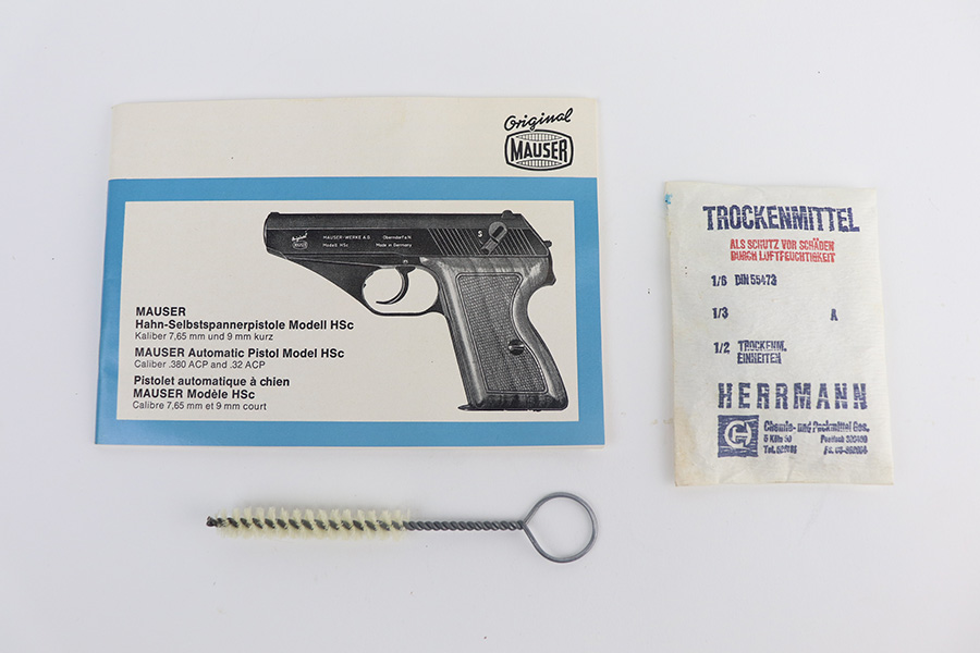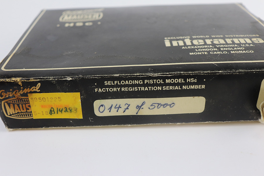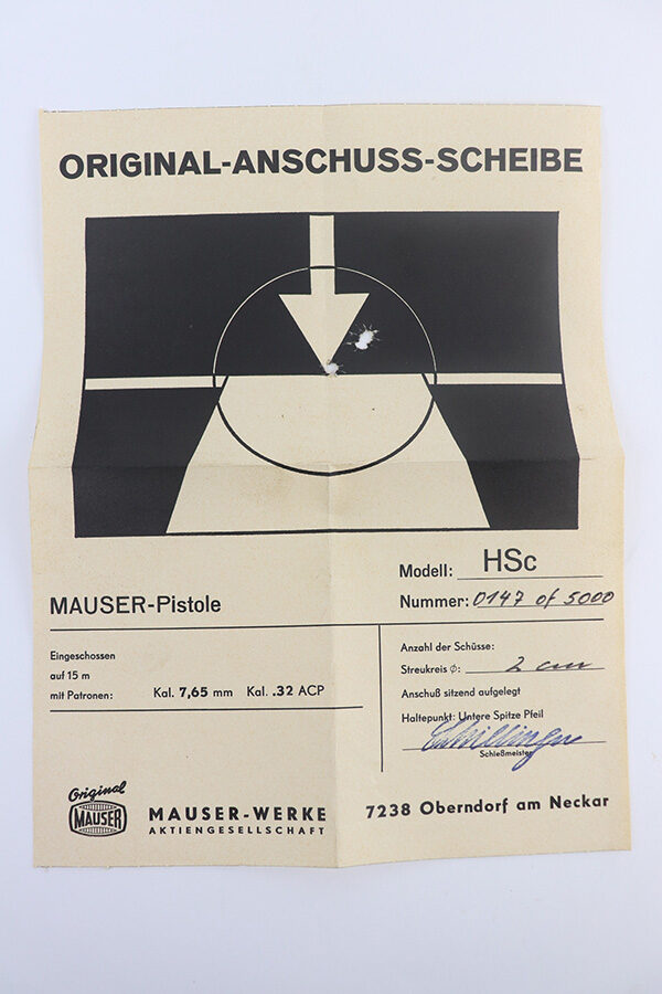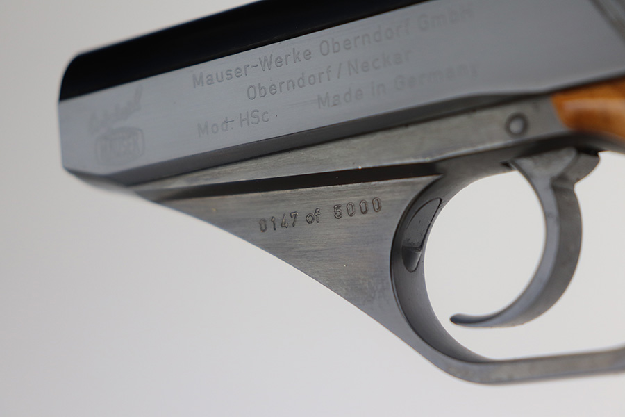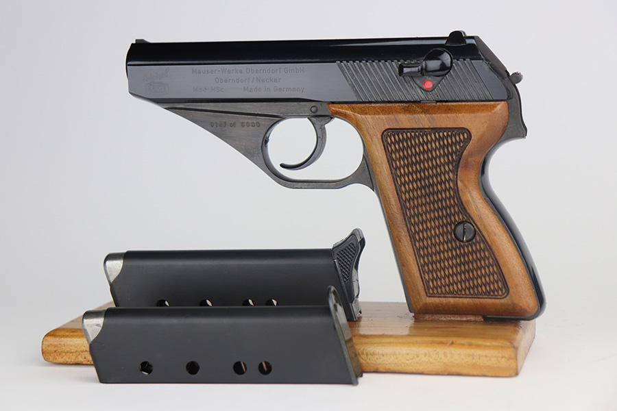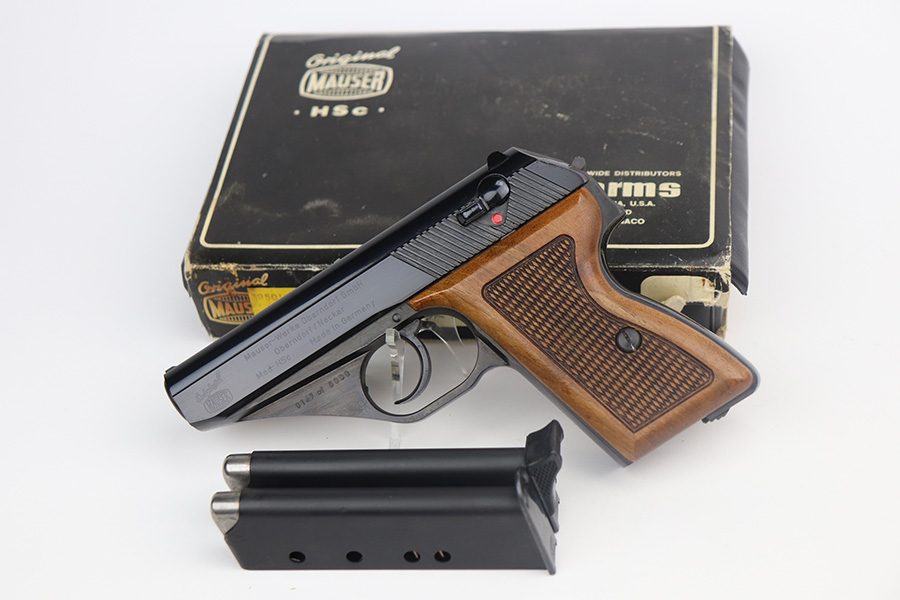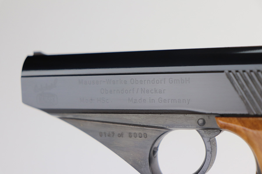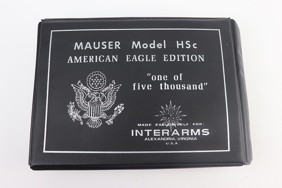5/26/21 – This is a mint example of a Limited Edition American Eagle Mauser HSC. They only made 5,000 of these guns. This one is very early, number 147. It comes with the original matching box, matching test target, owners manual, cleaning rod, and two magazines. The gun is like-new with no obvious signs of wear. Mint bore.