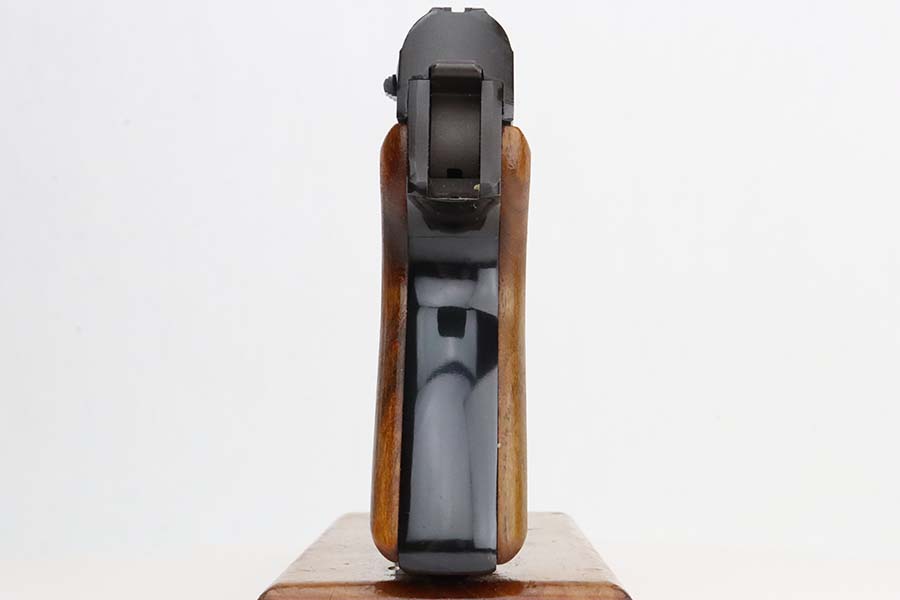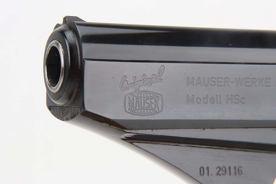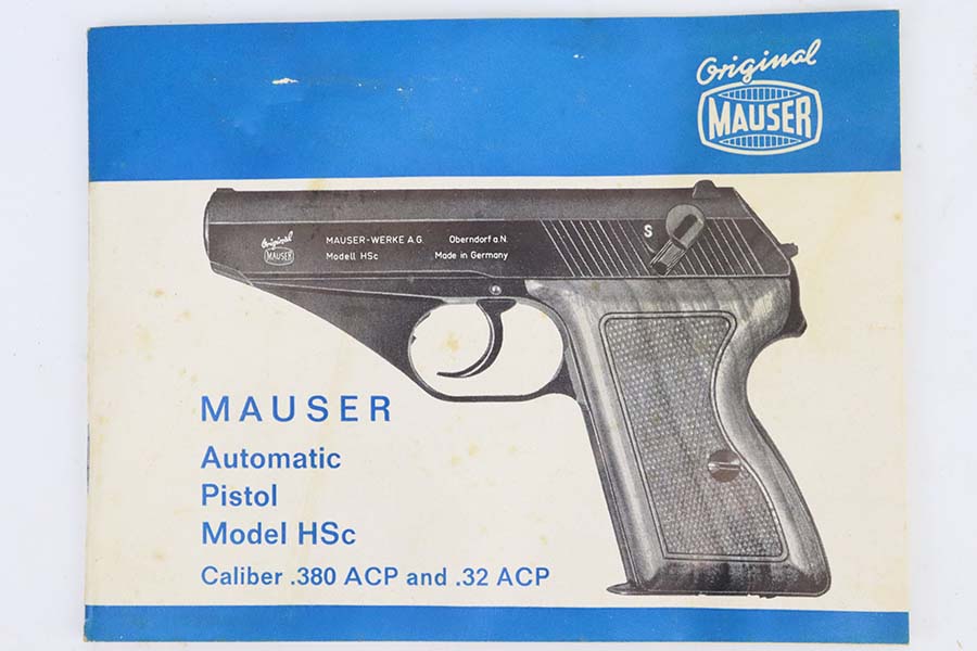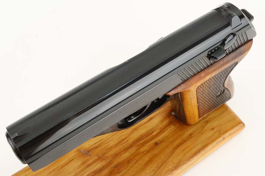 3/1/24 – This is a mint example of a Mauser / Interarms HSC, manufactured in the 1970’s and chambered in 9mm Kurz or .380 ACP. It is all matching and comes with its original box (not numbered, no sleeve), matching test target, one magazine, and owners manual. It has retained essentially all of its original high polish finish with no signs of wear. Fitted with minty blonde wood grips. Mint bore.