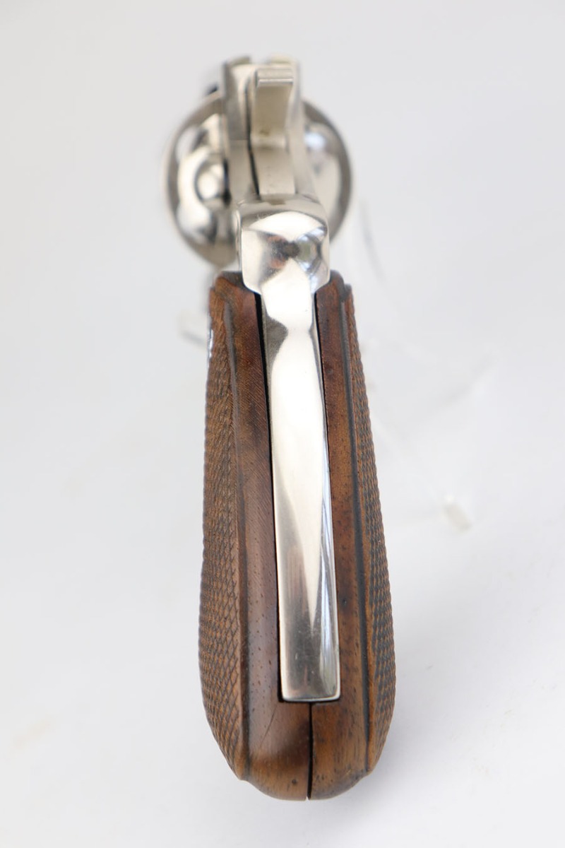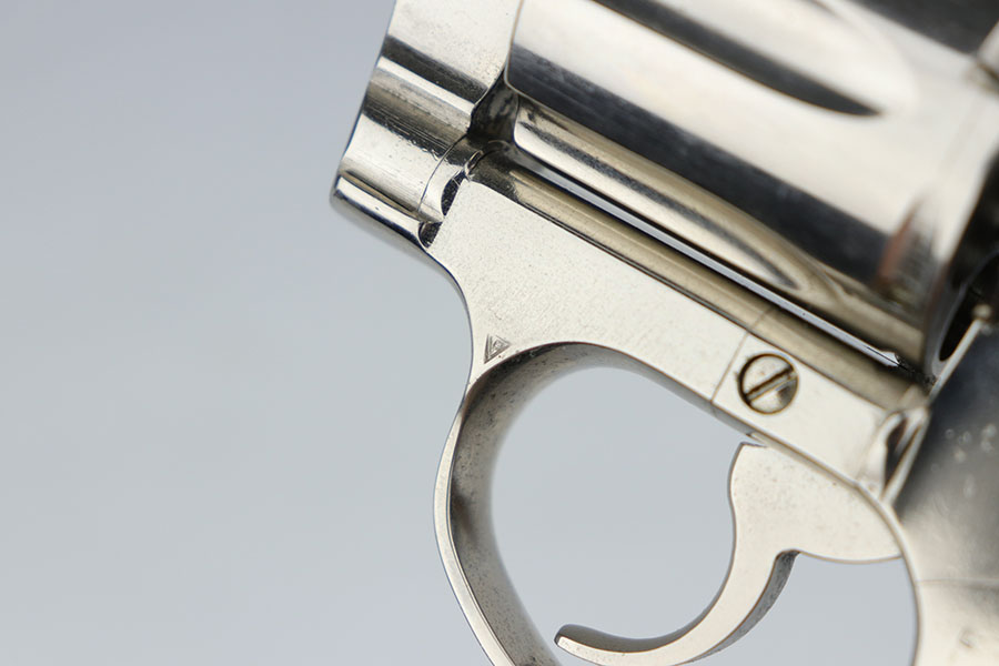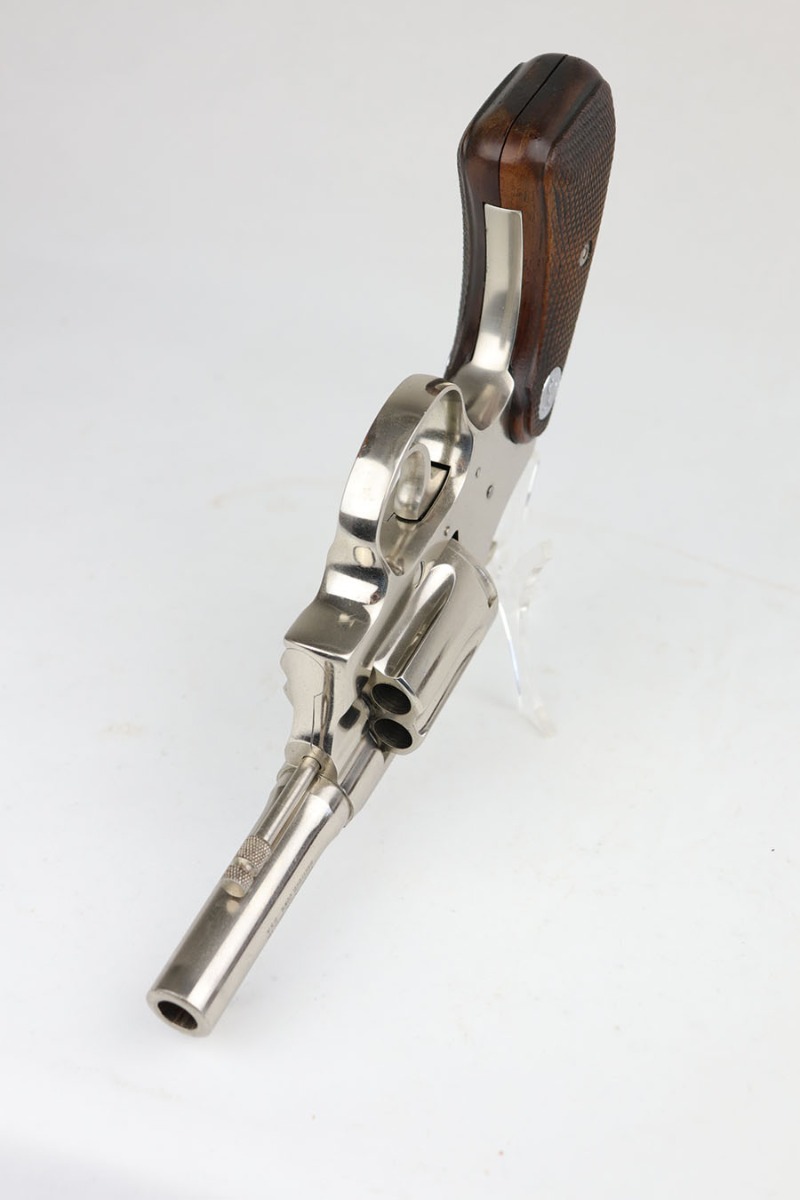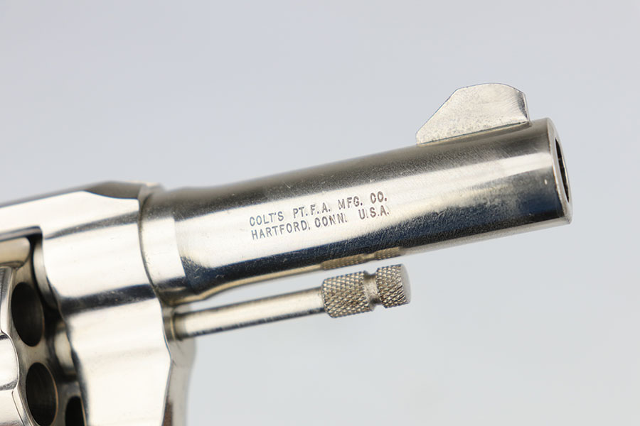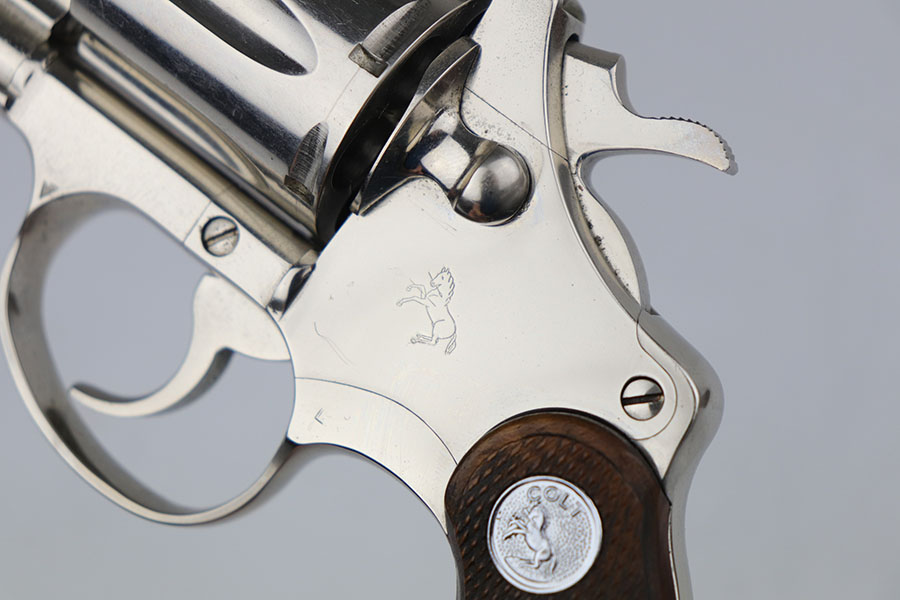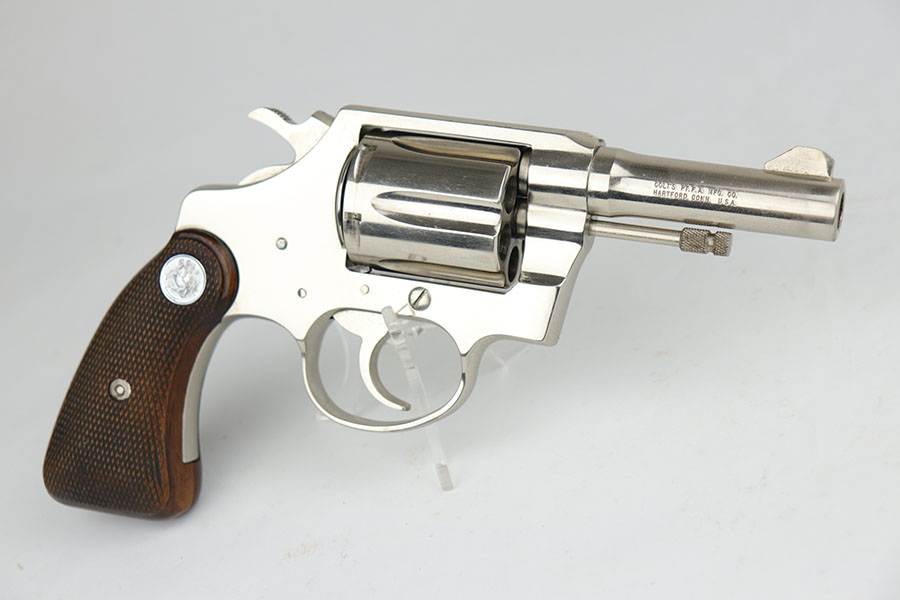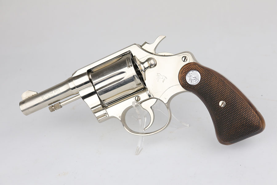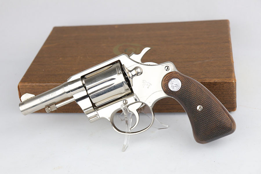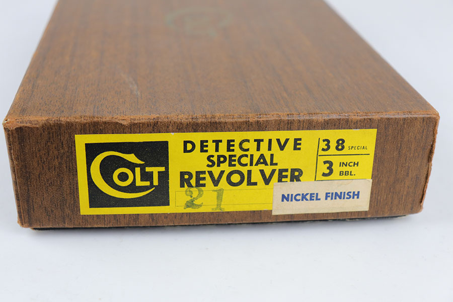 6/9/20 – This is a near-mint Colt Detective Special in the original, matching numbered box. It has factory nickel finish and far less common 3 inch barrel. The nickel finish shows maybe a few minor scuffs and a little bit of dulling of the brightness but no notable wear. The box is in terrific shape and numbered to the revolver on the underside. The original grips are numbered by hand and matching to the gun. They show a little bit of smoothing to the checkering but in excellent condition overall.