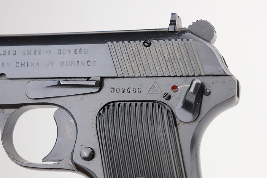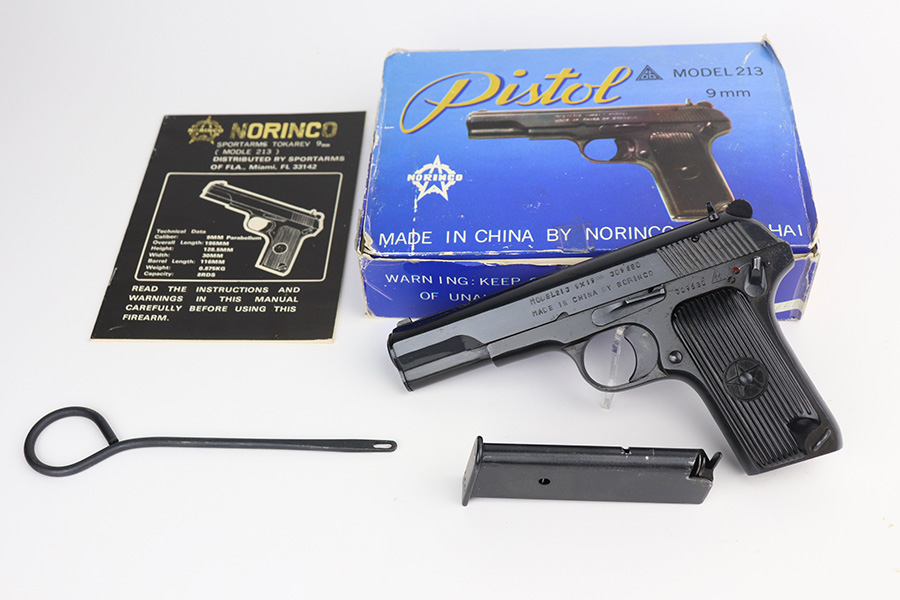 8/20/21 – This is a minty Norinco 213 in the original, matching box. It’s a Chinese copy of the Tokarev TT-33 and has no bluing loss to note, though there is a little oxidation on the straps. The original box is included, with its Styrofoam insert, and has a manual and cleaning rod inside. Just one magazine included. Minty bore. FFL required.