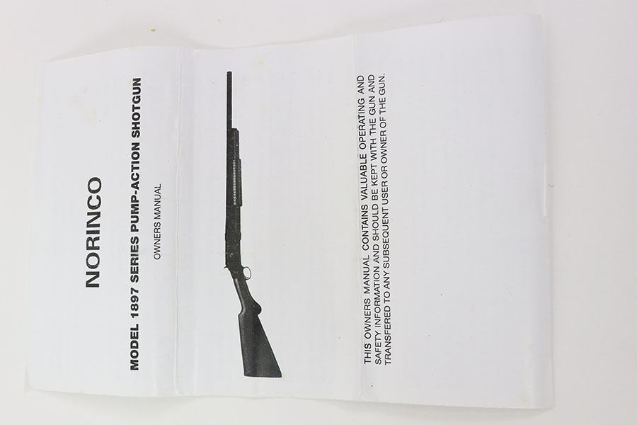7/22/22 – This is an ANIB Norinco M97W, a Chinese copy of the Winchester 97 trench shotgun. It comes in the original, serialized box. It shows only very minor signs of use, with a little thinning on the magazine tube from the pump action. Excellent bore and wood. Will slam fire like the original Winchesters. Comes with manual. FFL required.