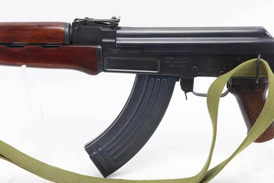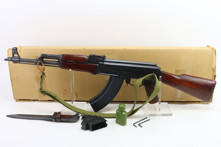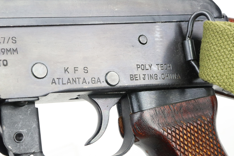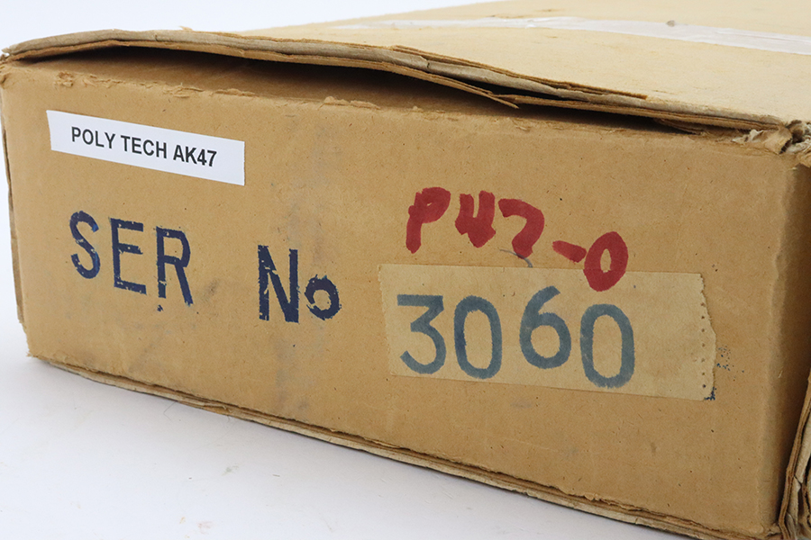 4/4/24 – This is a mint Poly Tech AK-47/S Legend Series rifle, chambered in 7.62x39mm. It comes with its original matching-numbered box, owners manual, one magazine, oiler, and bayonet with scabbard. The gun itself has retained essentially all of its original finish with just a few very light handling marks here and there. Excellent wood furniture. Mint bore.